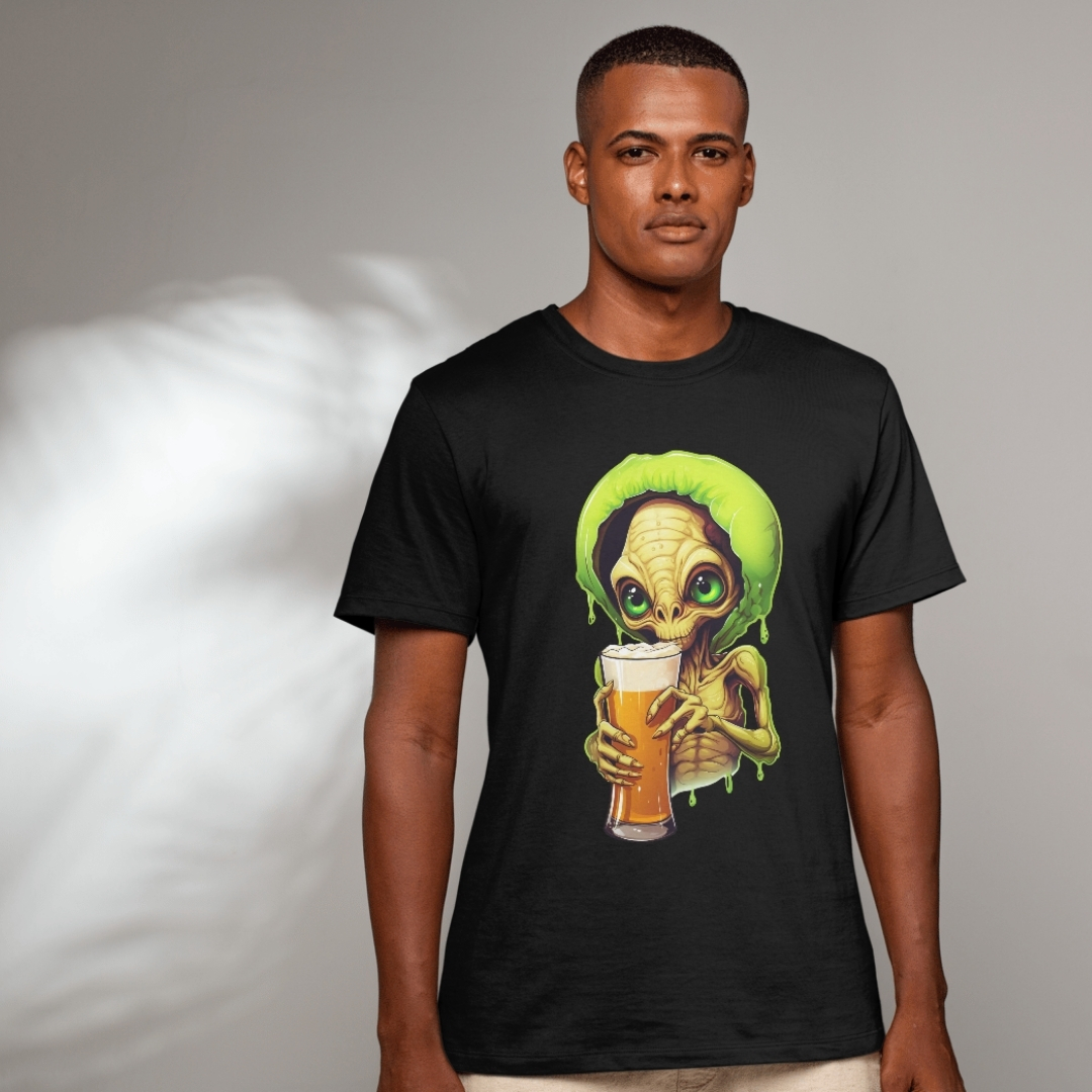 Adicione um toque de diversão e personalidade ao seu visual com a Camiseta Black. ET Cervejariano e mostre seu lado descontraído e cervejariano.