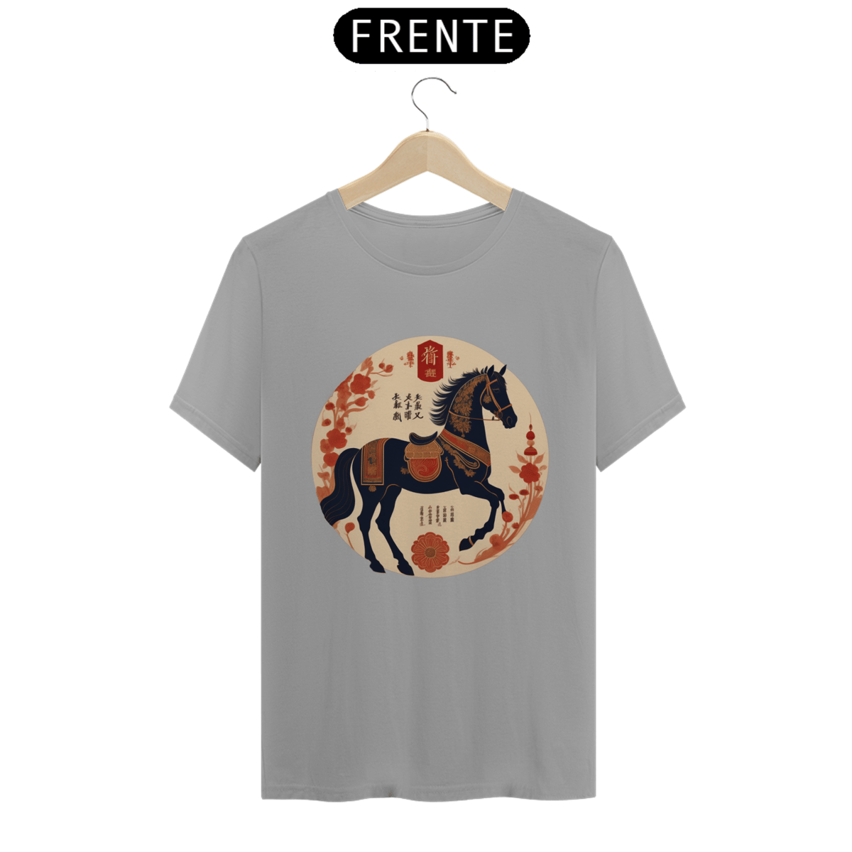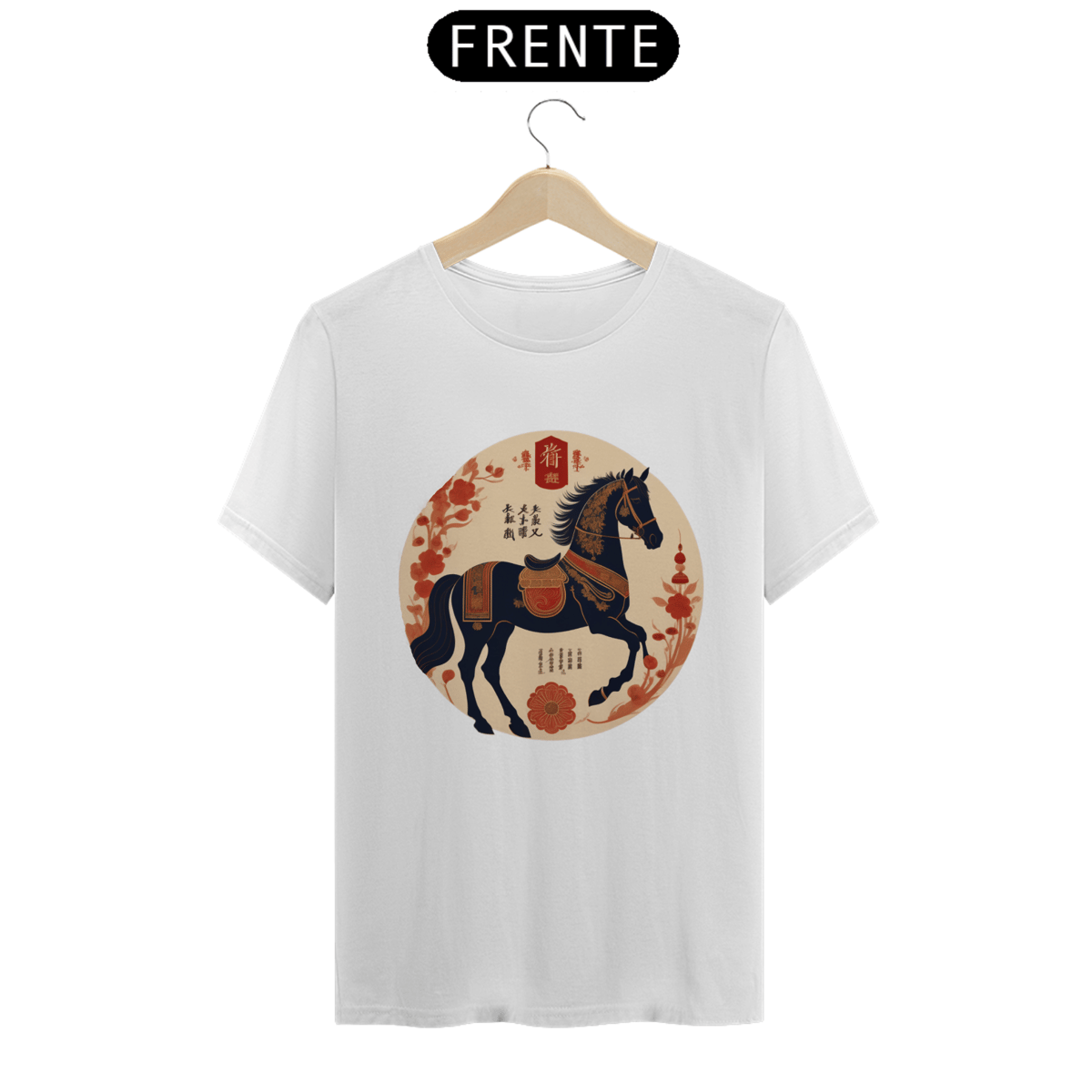 Eleve seu estilo com esta camisa inspirada no Horóscopo Chinês, destacando um majestoso Cavalo Negro. Uma fusão de elegância e simbolismo, esta peça cativa os amantes da astrologia e da cultura asiática. Adicione uma dose de mistério e sofisticação ao seu visual com esta camisa única.