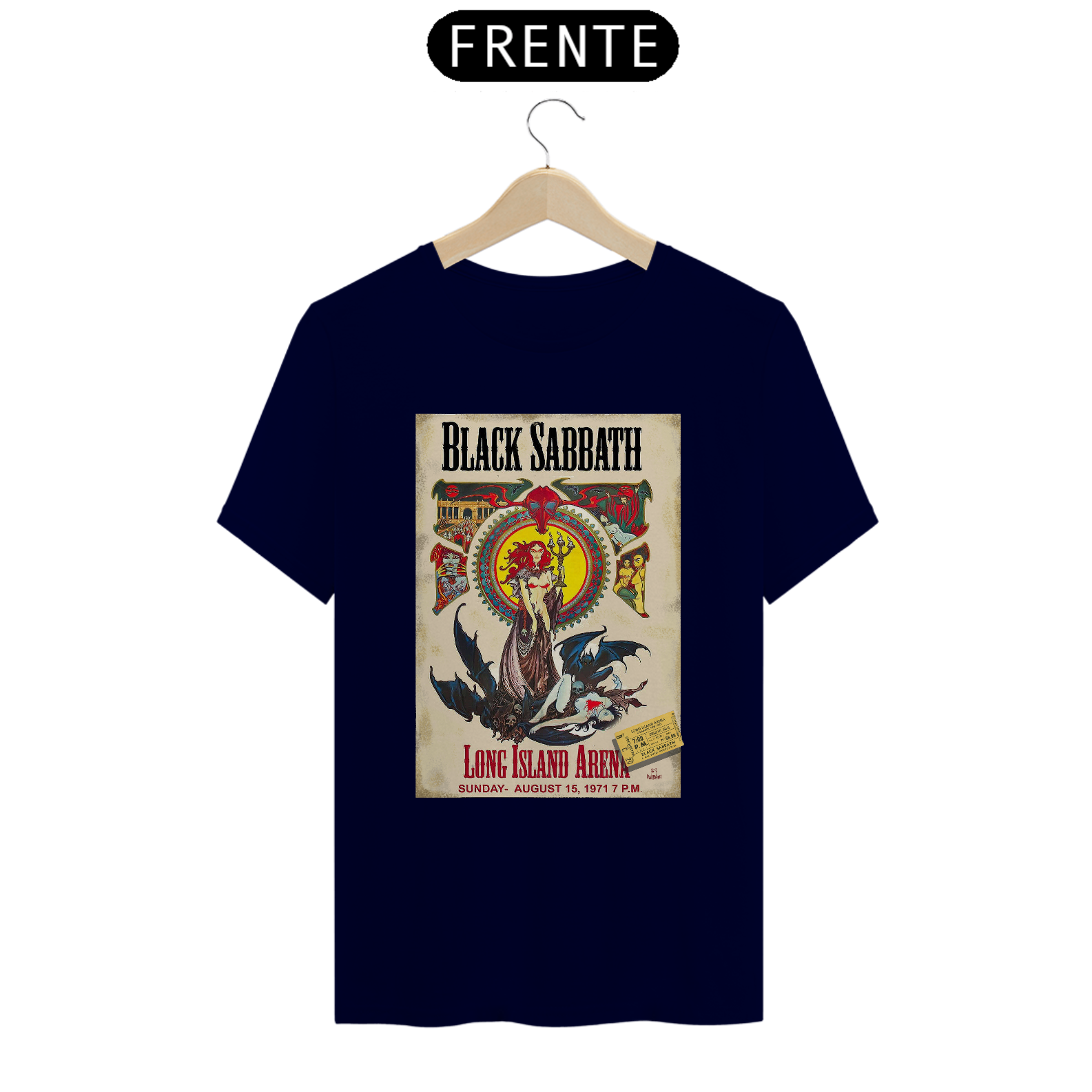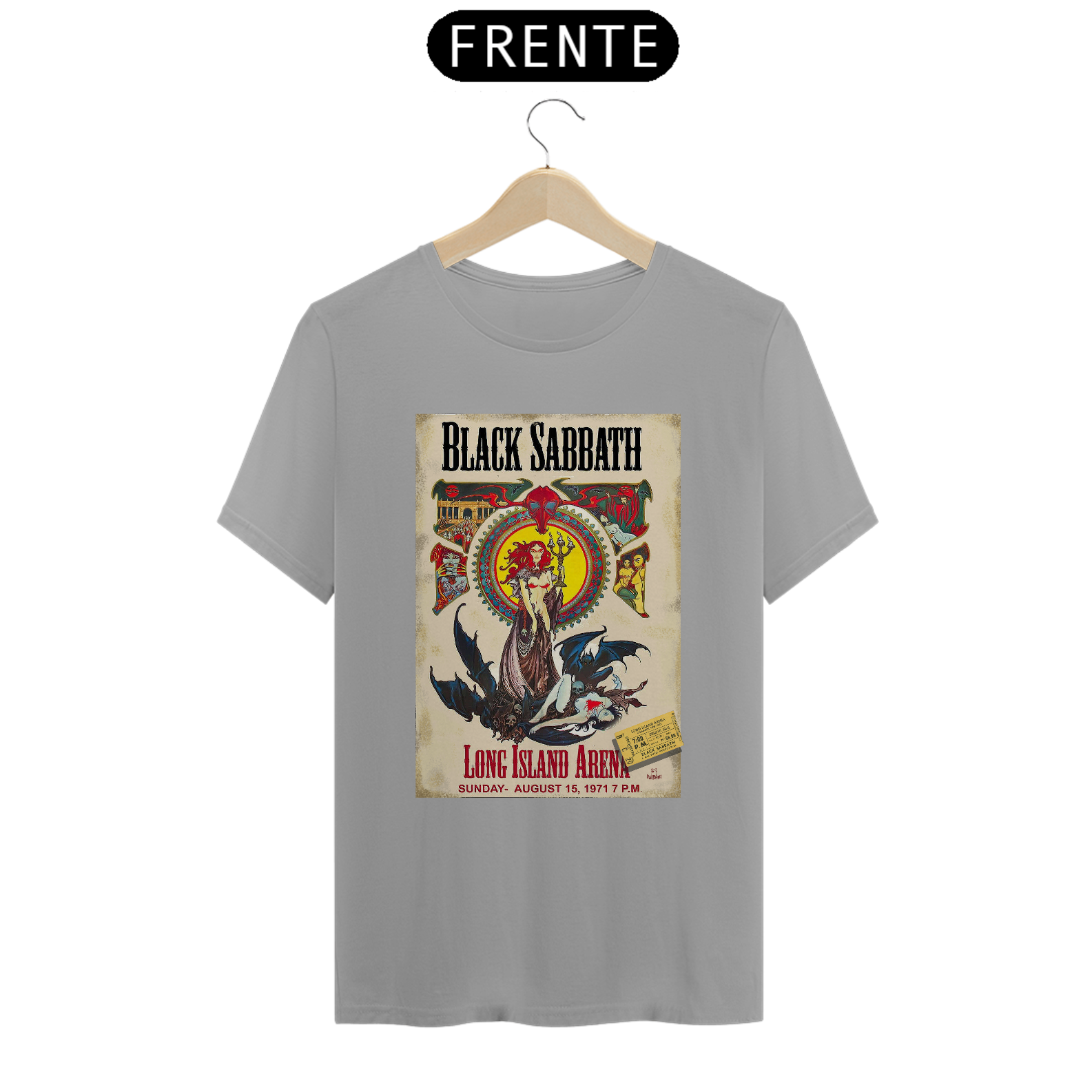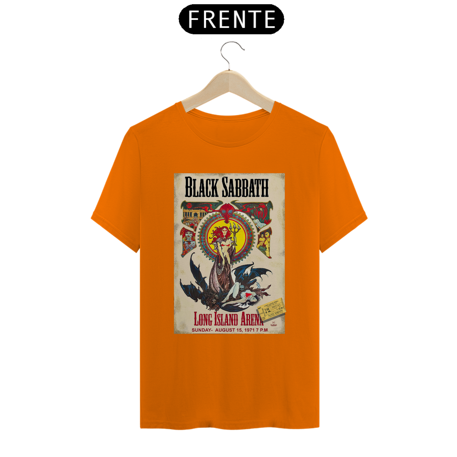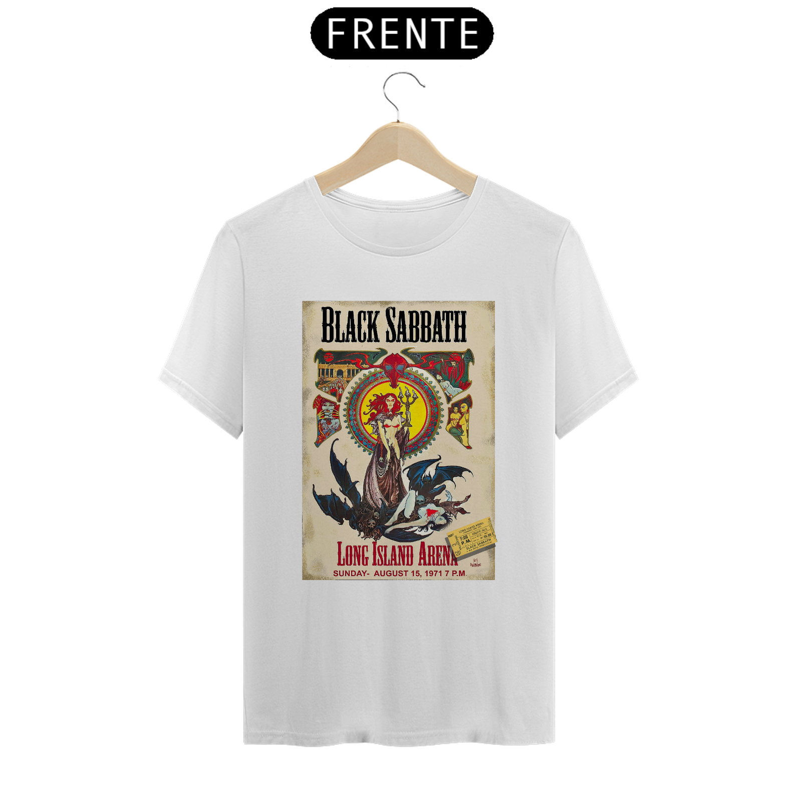 Poster de divulgação do show de Black Sabbath no Long Island Arena NY em 1971 com seu ingresso original incluso na estampa.