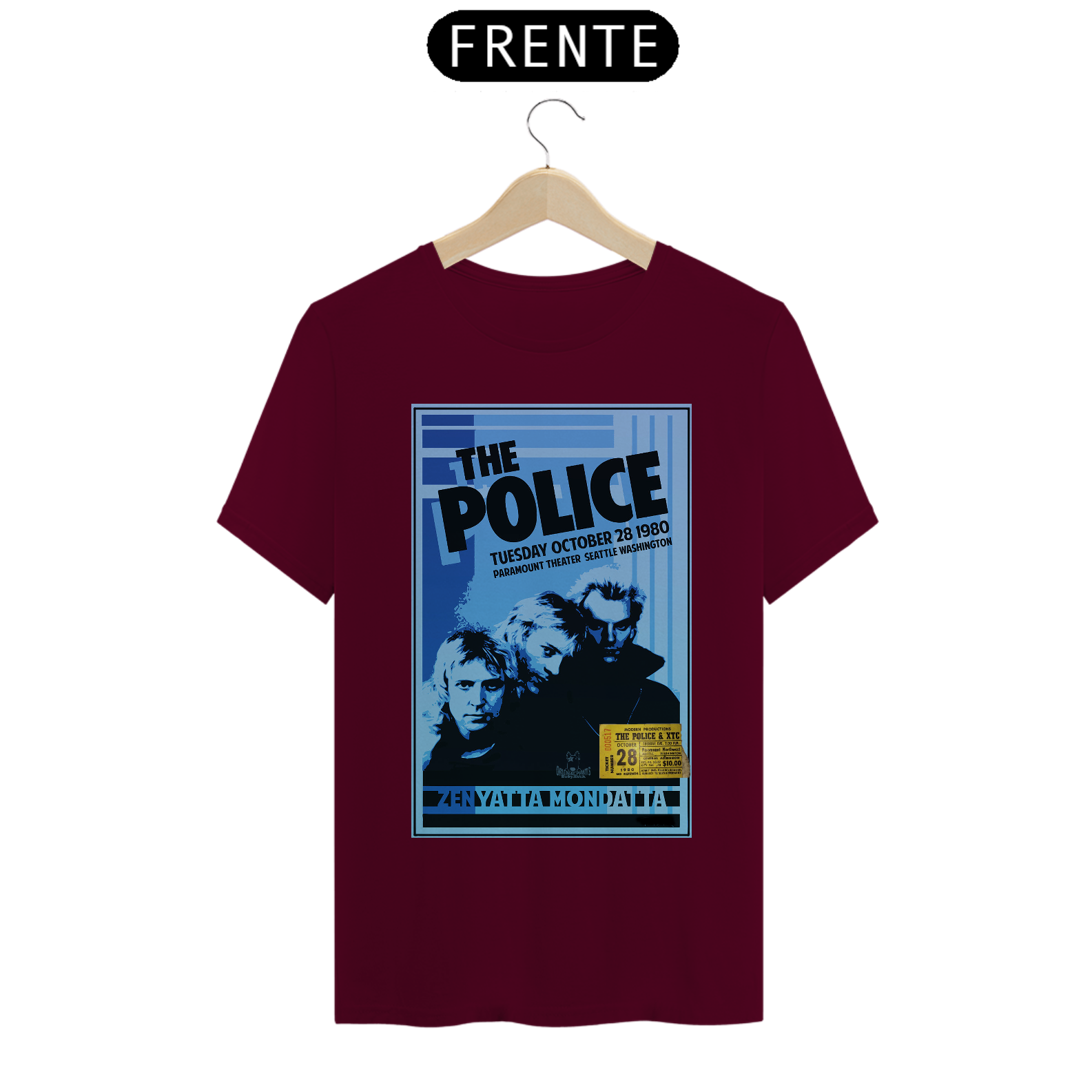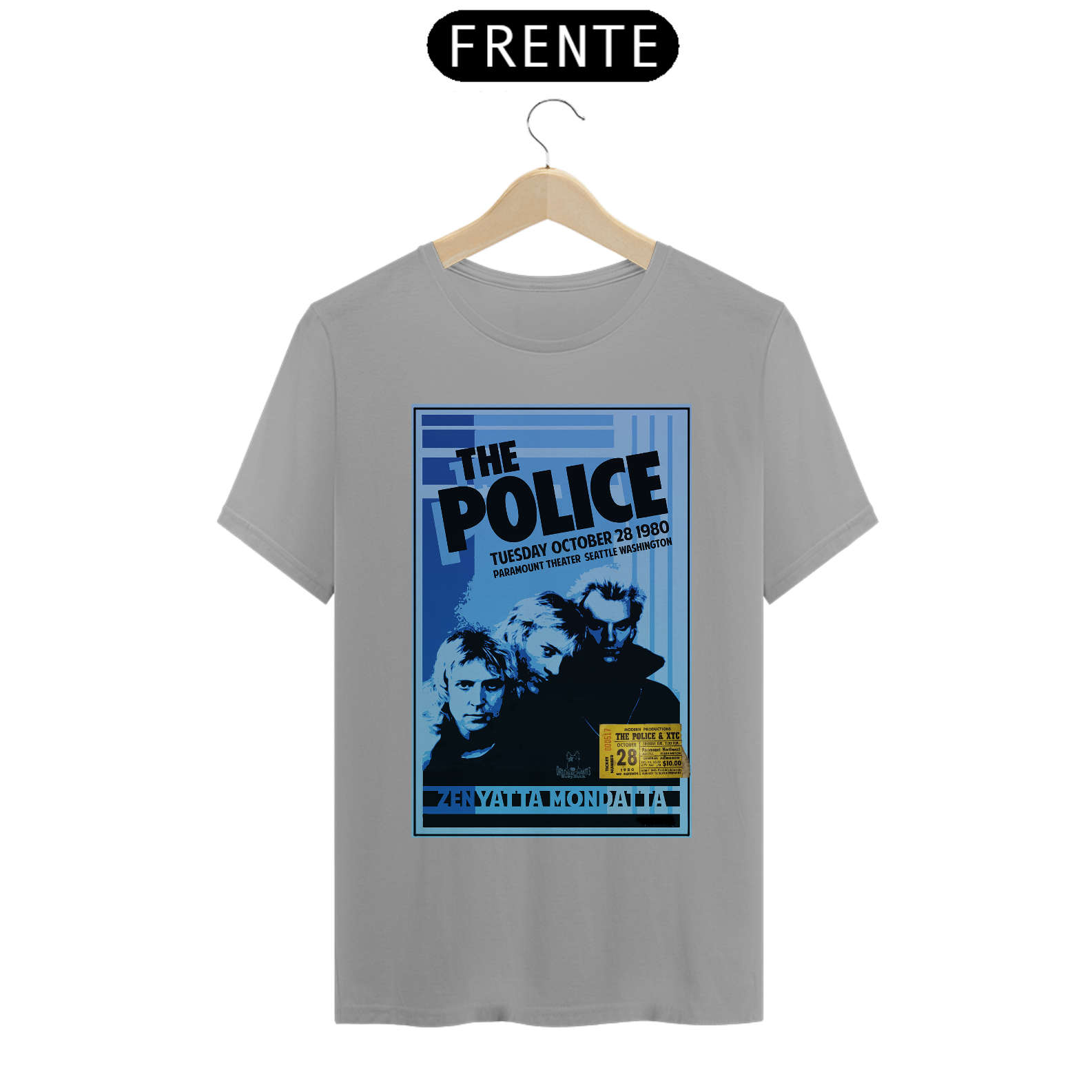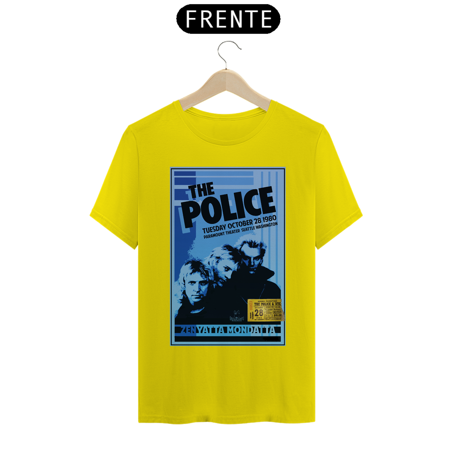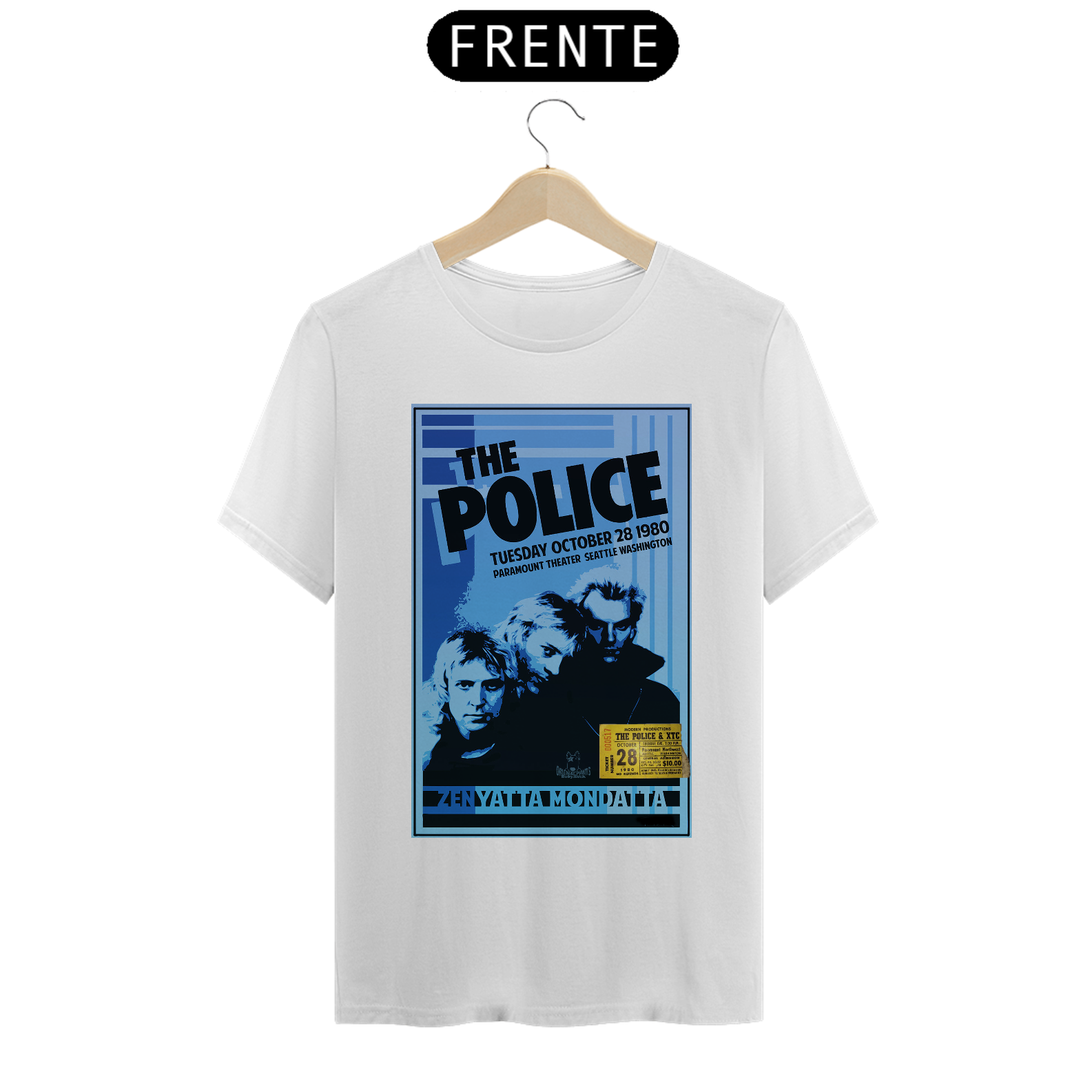 Poster do show do The Police em Seatle de 1980 da turnê Zenyatta Mondata com ingresso original