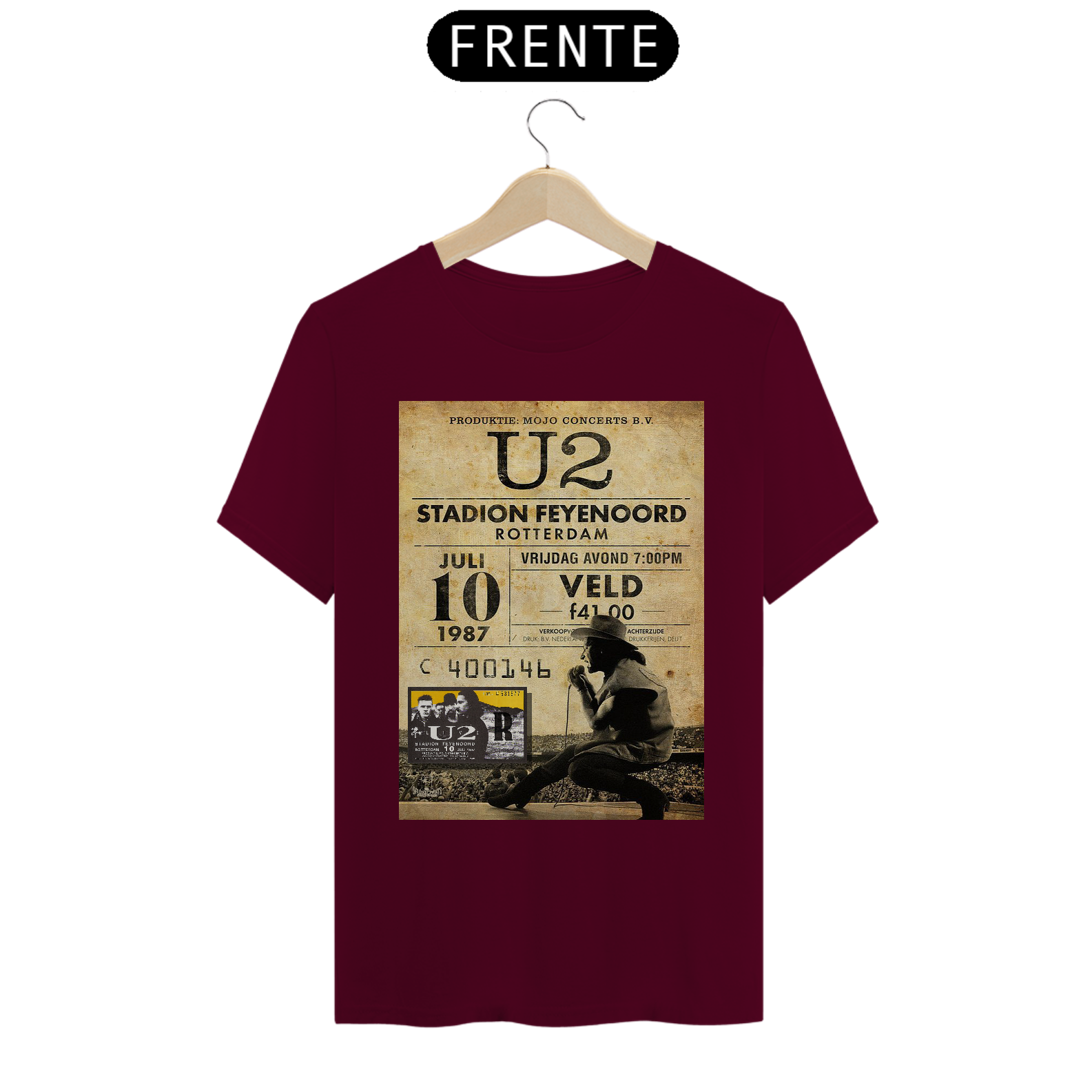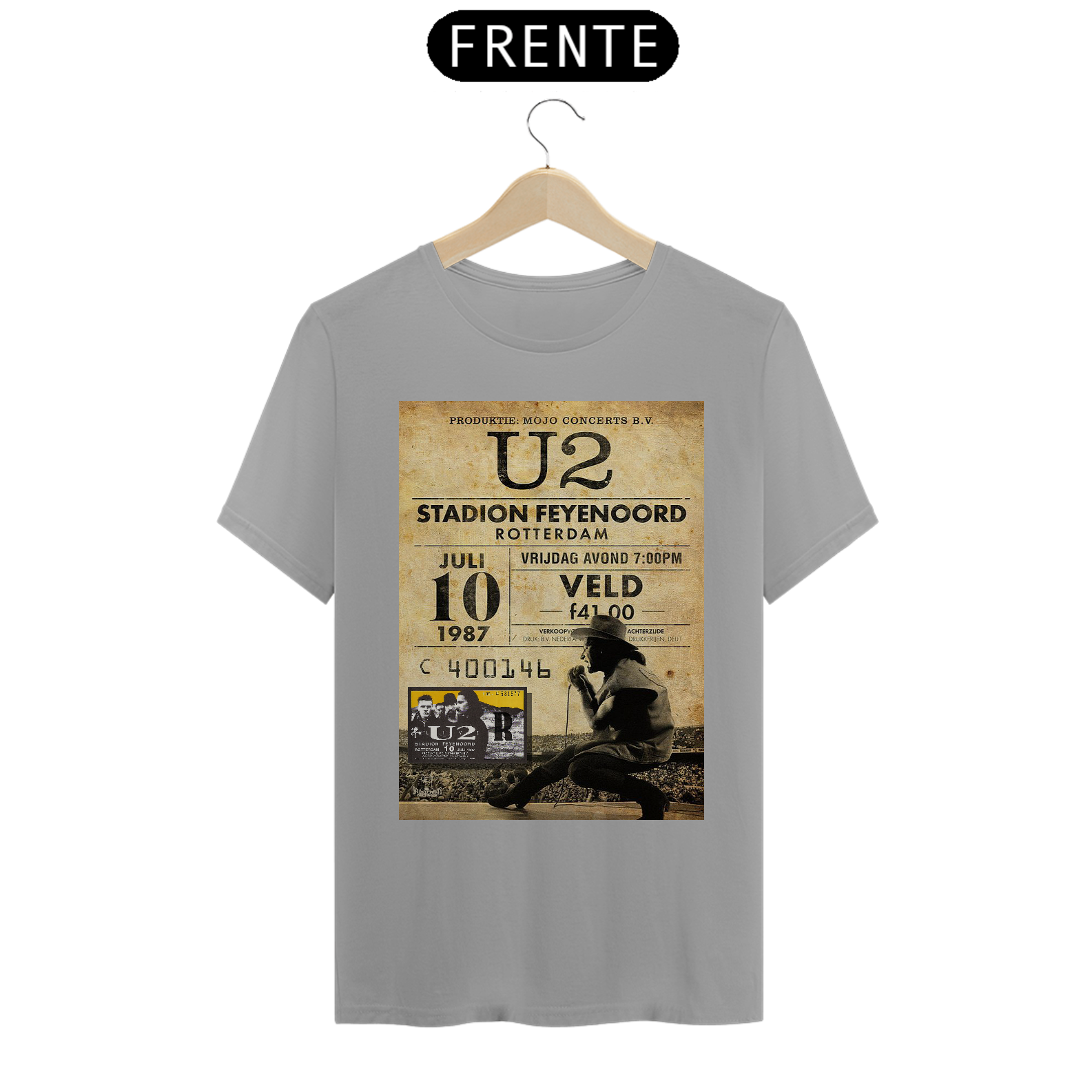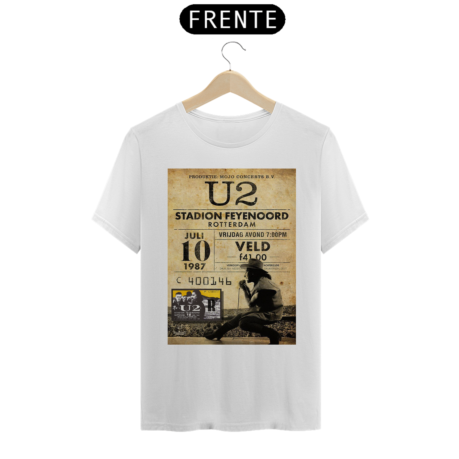 Poster divulgação do show do U2 na Holanda em Roterdam, 1987 com seu ingresso originakl