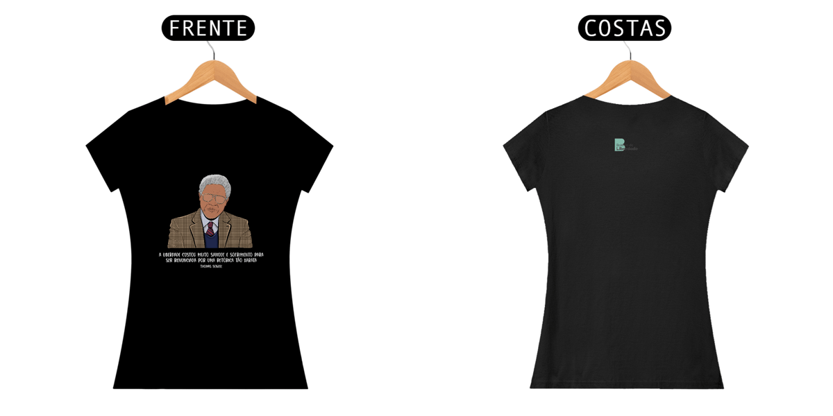 Nascido em 1930, Thomas Sowell é uma das maiores referências vivas do liberalismo. Economista e fruto da Escola de Chicago, Sowell publicou em seu livro "Knowledge and Decisions" (1980) a frase que inspirou essa camiseta: "A liberdade custou muito sangue e sofrimento para ser renunciada por uma retórica tão barata".