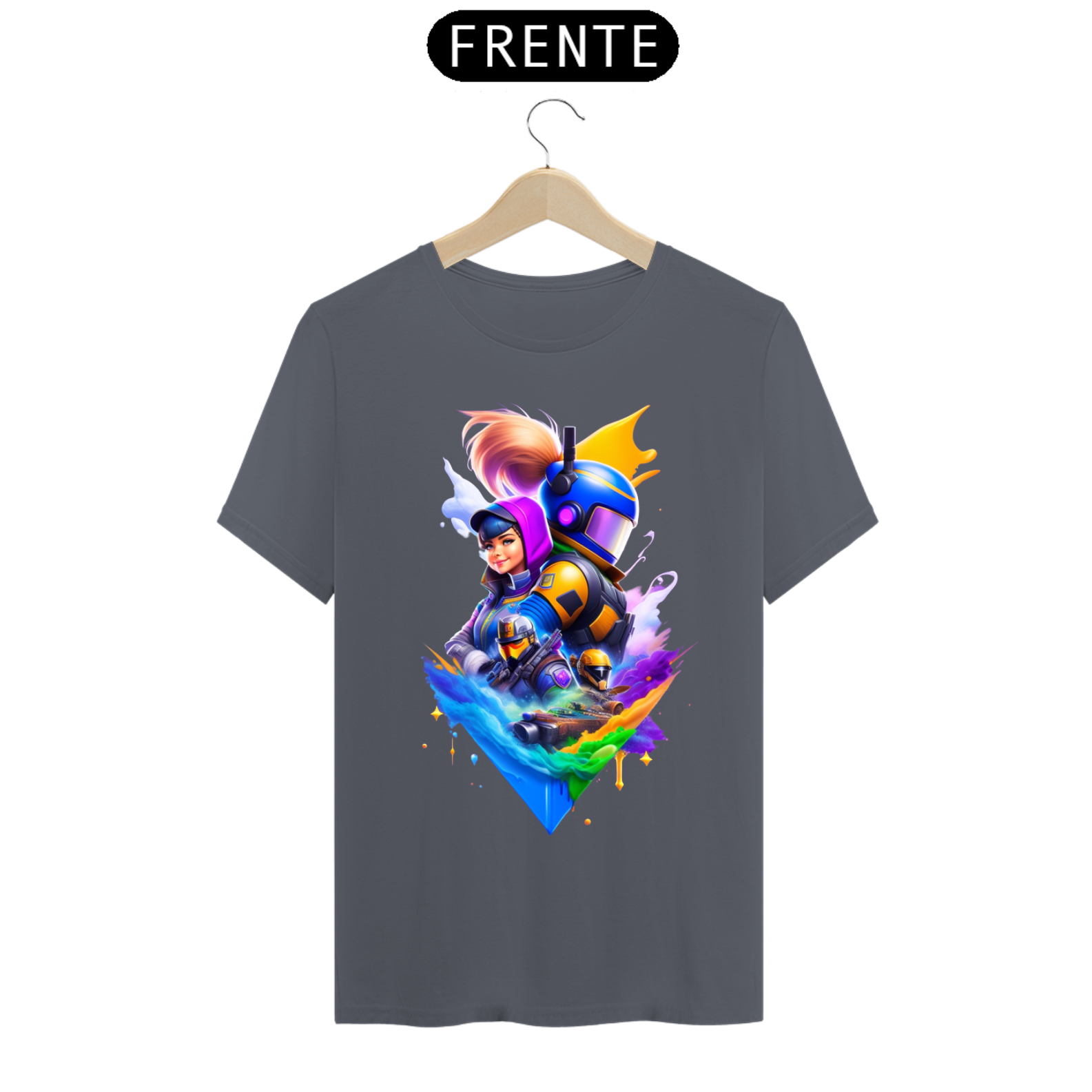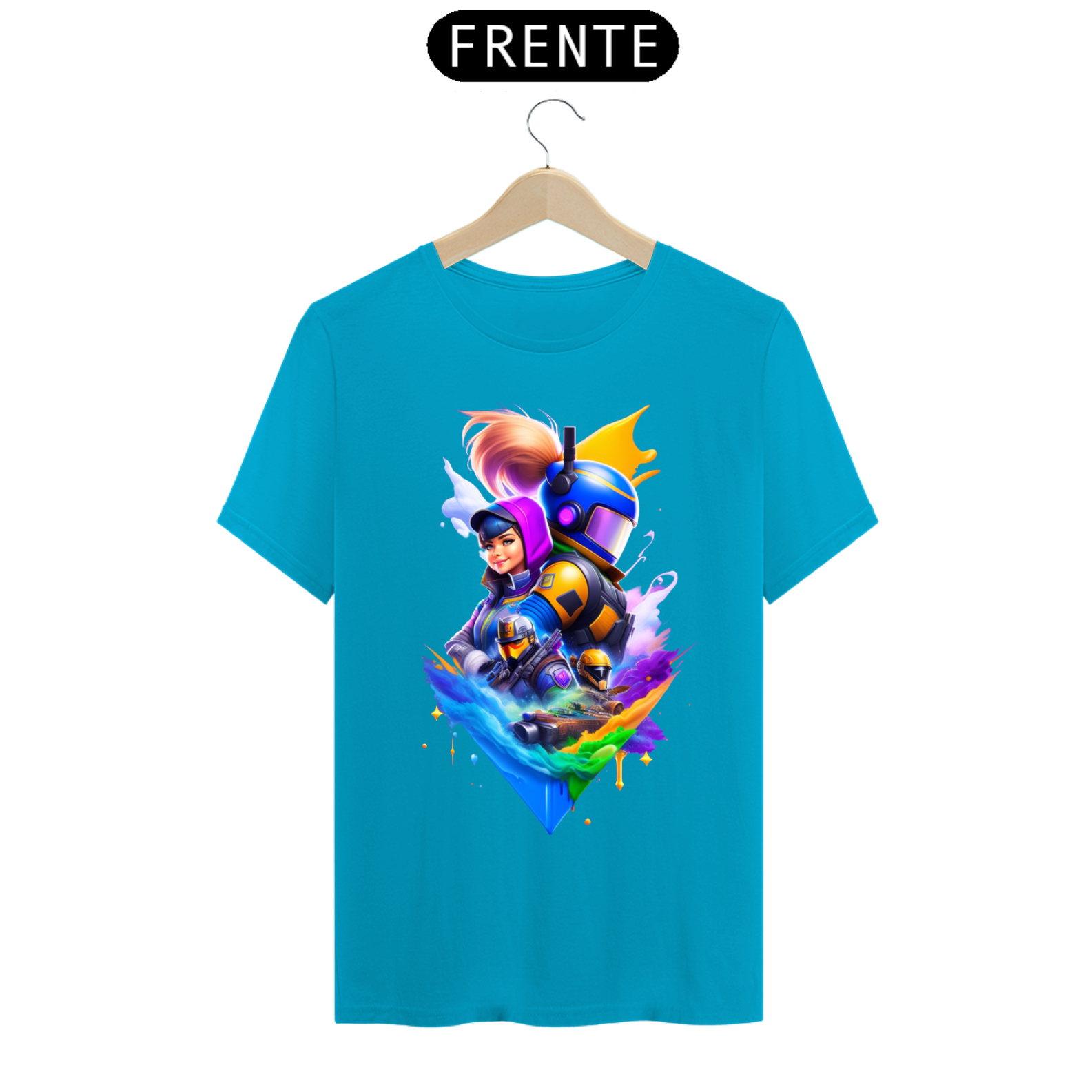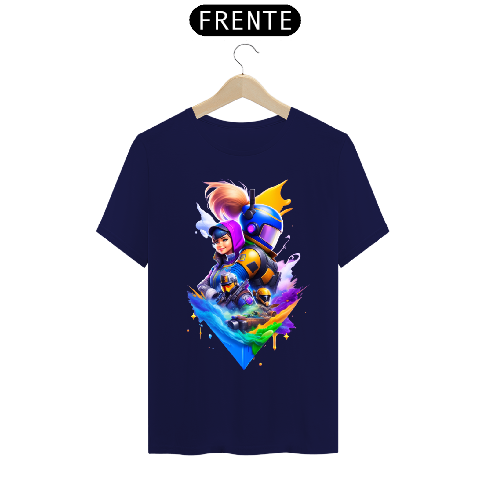Cores do produto: Como cada tela de computador ou celular tem seu próprio jeito de mostrar cores, então a cor da sua camiseta e da estampa pode ser um pouco diferente do que você viu online.