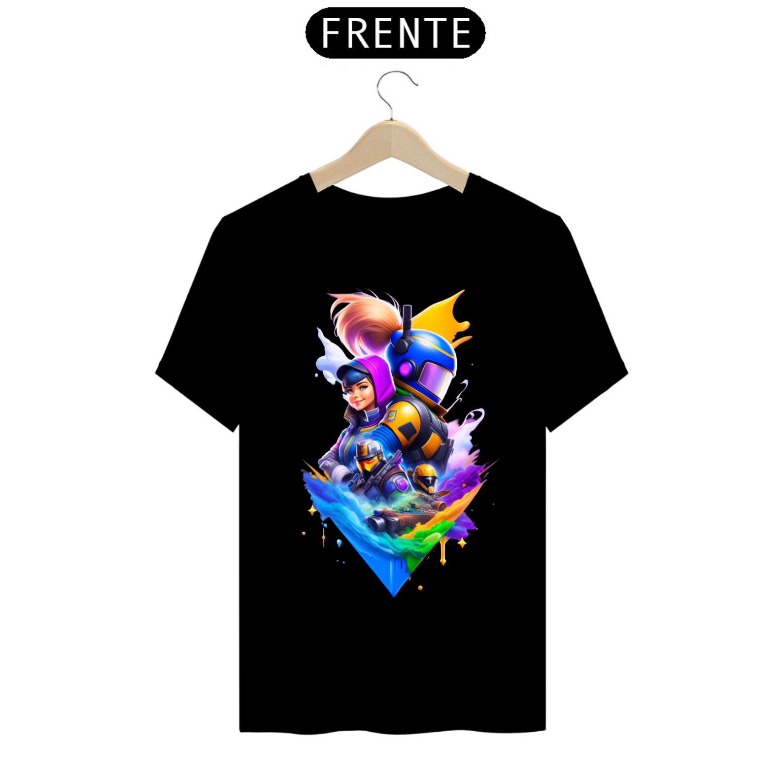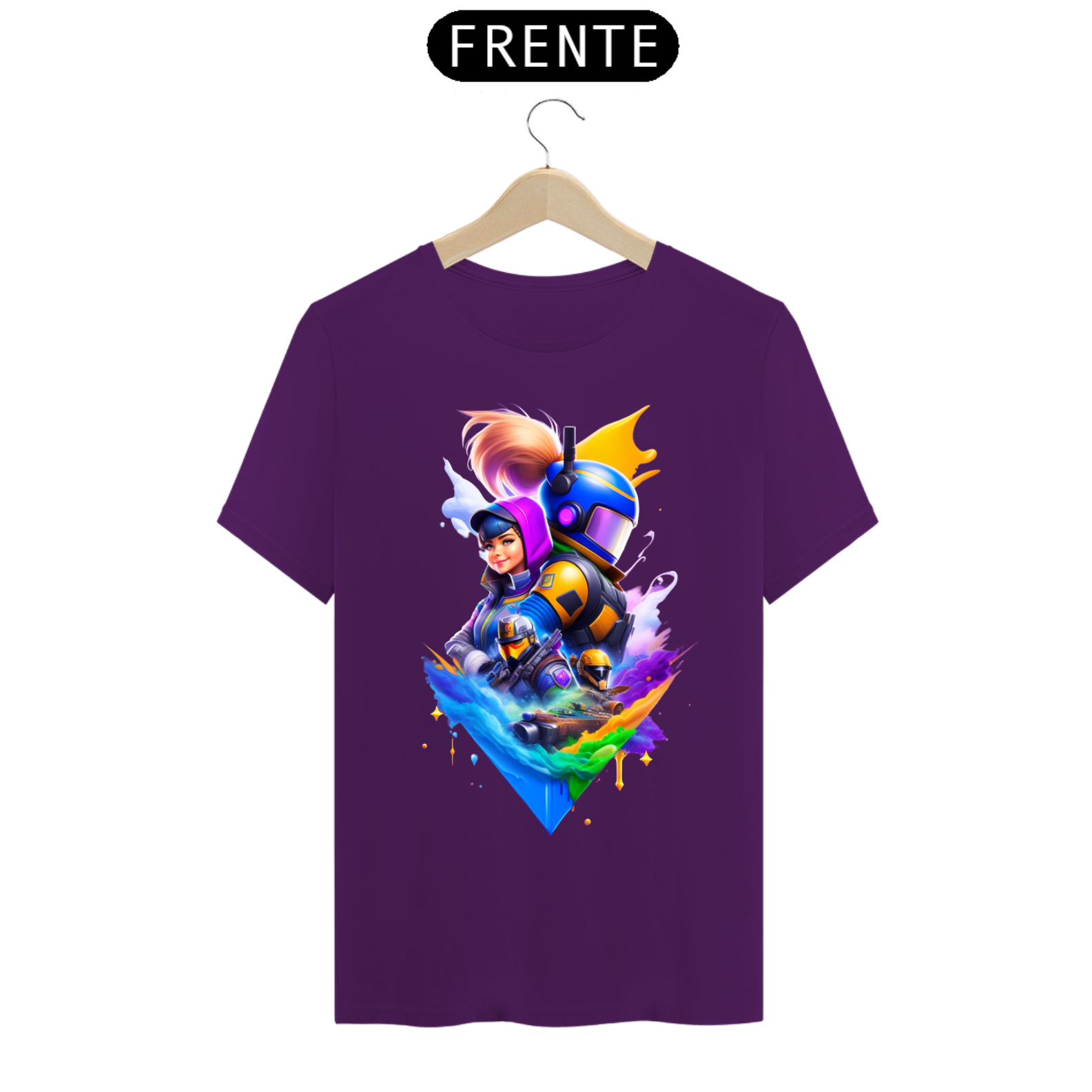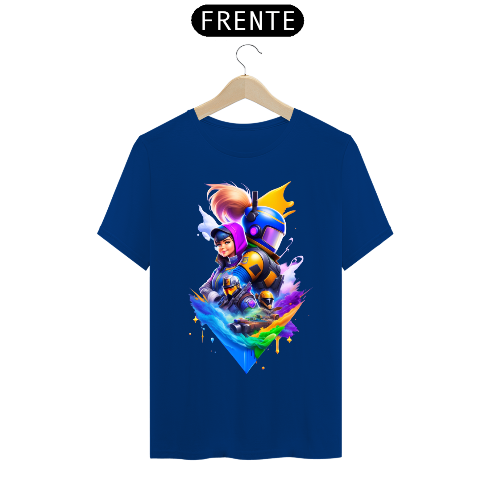 Cores do produto: Como cada tela de computador ou celular tem seu próprio jeito de mostrar cores, então a cor da sua camiseta e da estampa pode ser um pouco diferente do que você viu online.