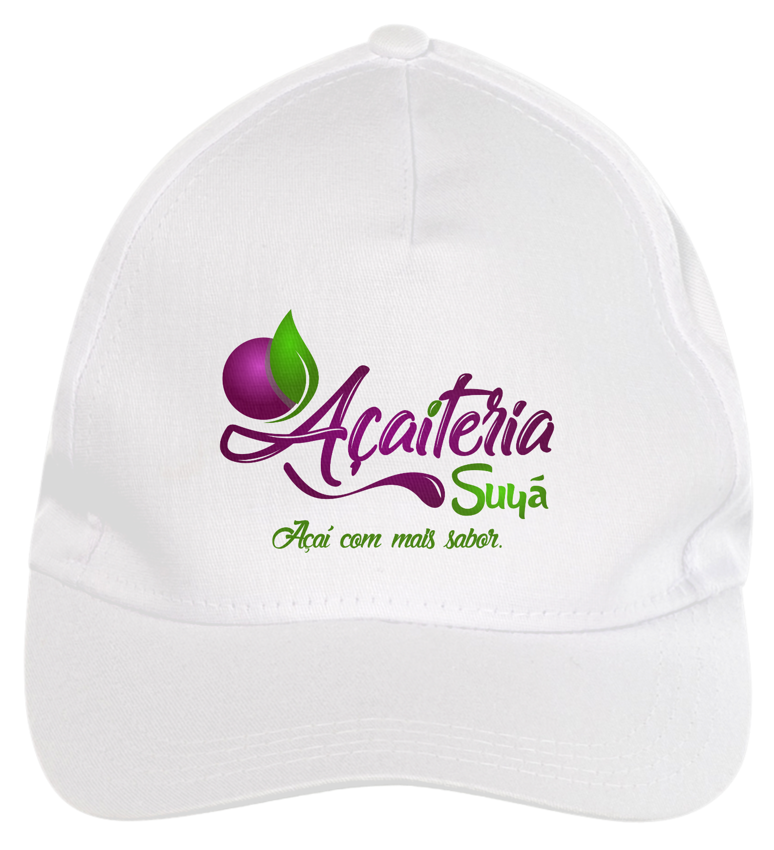 Boné americano com transfer frontal em alta qualidade, aba curva e fecho em tira totalmente regulável com pinos. O modelo veste tamanho "único".