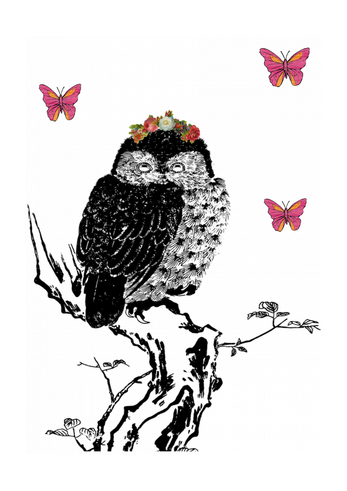coruja, flores, natureza, animal, nerd, borboleta, preto e branco