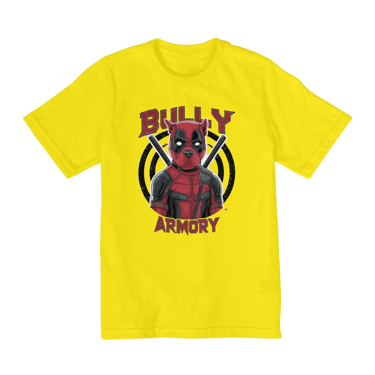 A estampa exclusiva apresenta um cão American Bully vestido com o icônico traje do Deadpool, combinando a atitude do anti-herói com a fofura do cachorro. Ideal para crianças de 10 a 14 anos, essa T-shirt é perfeita para quem adora um estilo descolado e uma dose de humor.