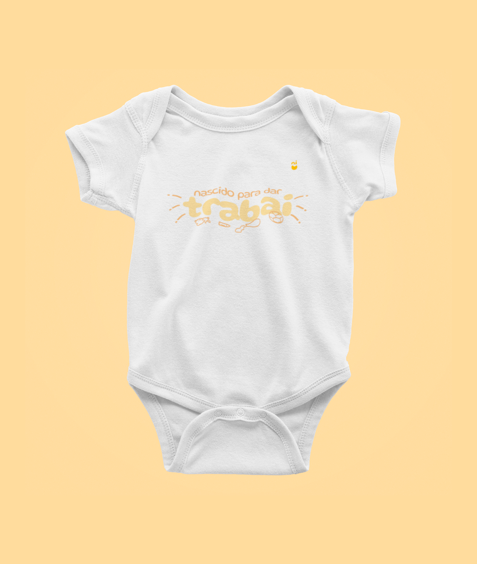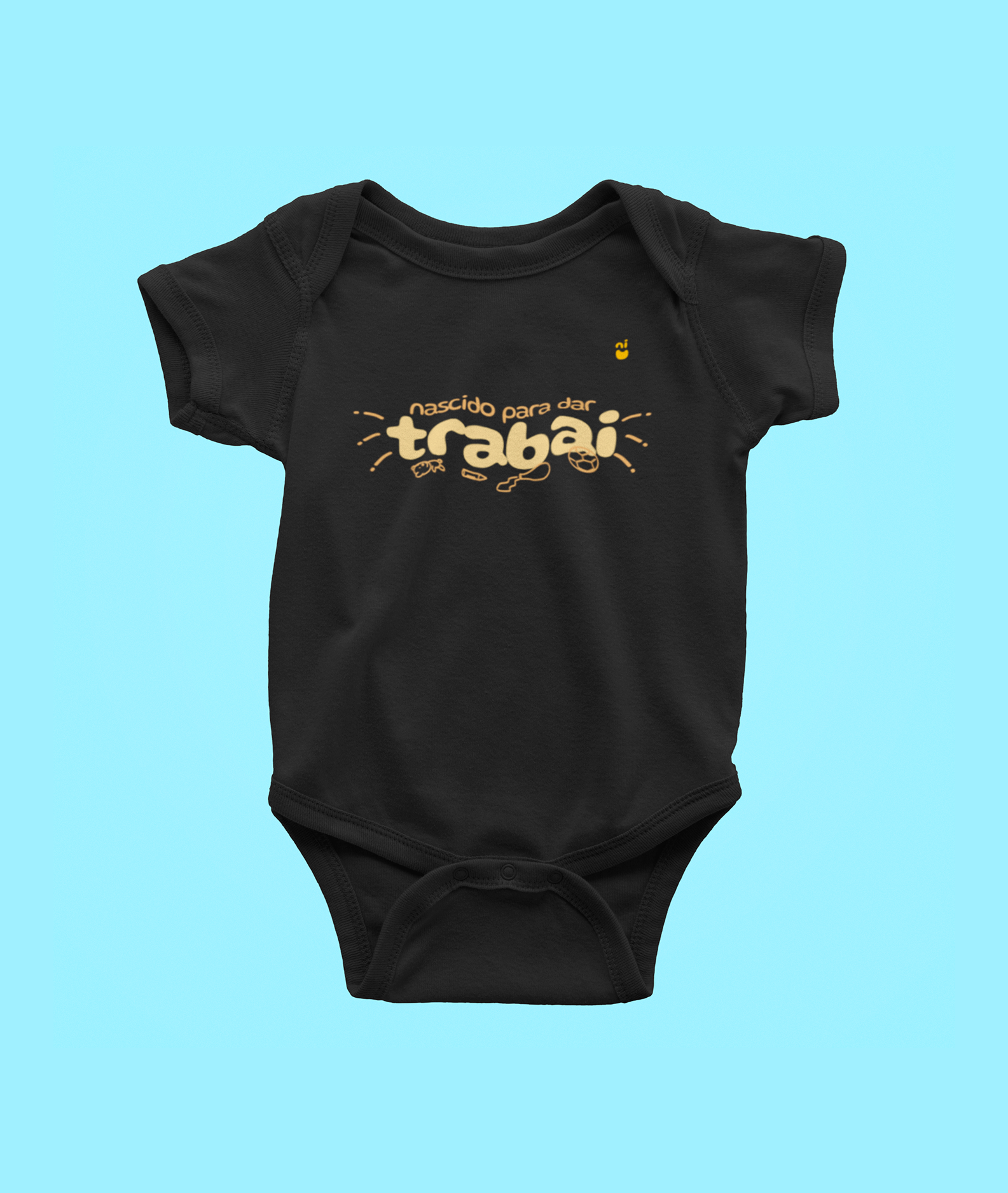 Esse body é puro suco de Nordeste, com a frase personalizada "nascido para dar trabai" - que é a mais pura verdade! Esse piquenu é dengoso, mas é trabaioso, desde o berço já demonstra que tem personalidade forte e muita energia para gastar. É só botar no chão que o desmantelo e a diversão começam! Com esse body seu piquenu vai dar um trabalhão para a família toda, mas também vai ser uma alegria só. É ou não é um orgulho ver nosso piquenu forte crescendo e saudável como um legítimo nordestino? Oxente, pode ter certeza que essa roupinha vai ser um sucesso por onde passar!