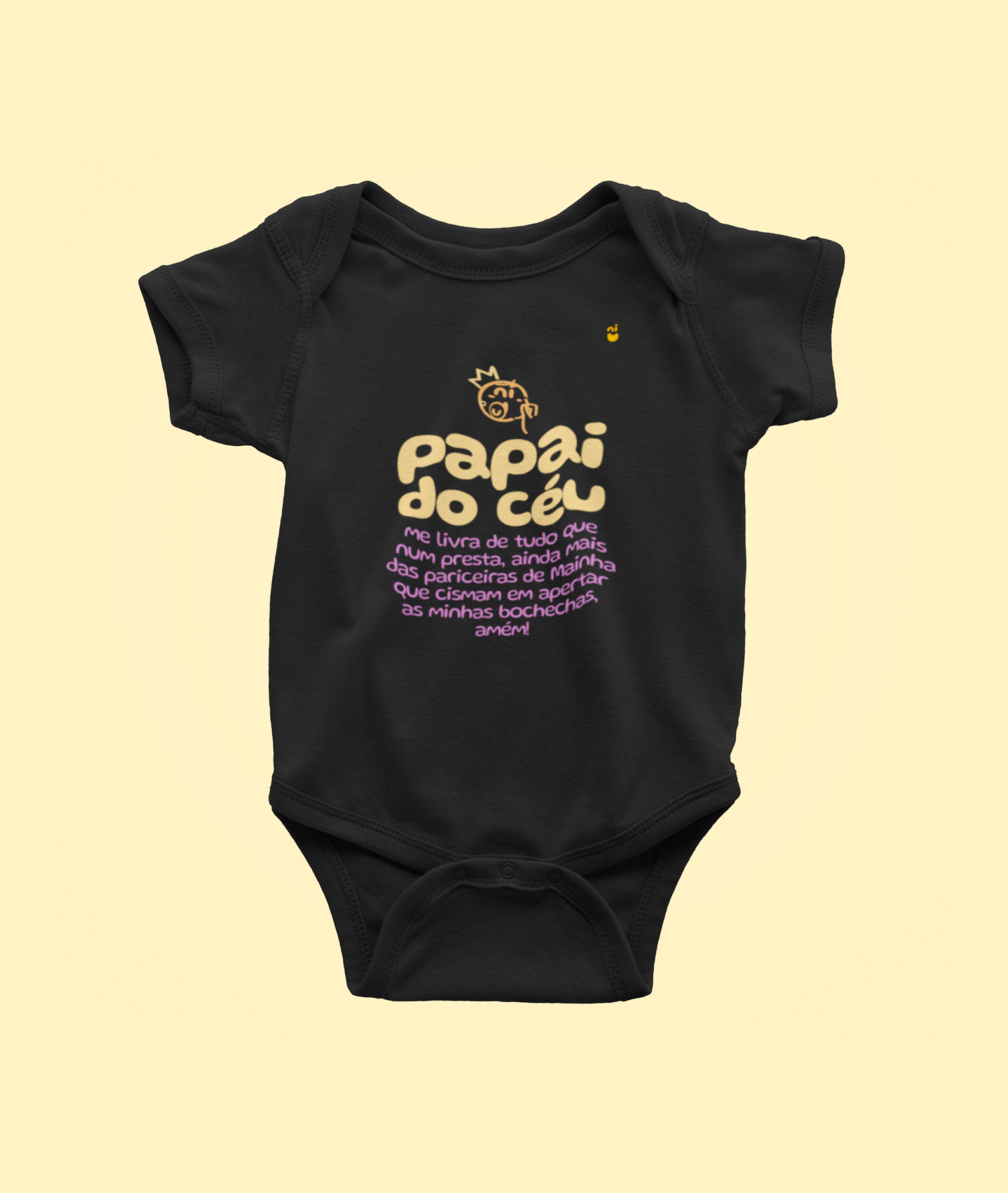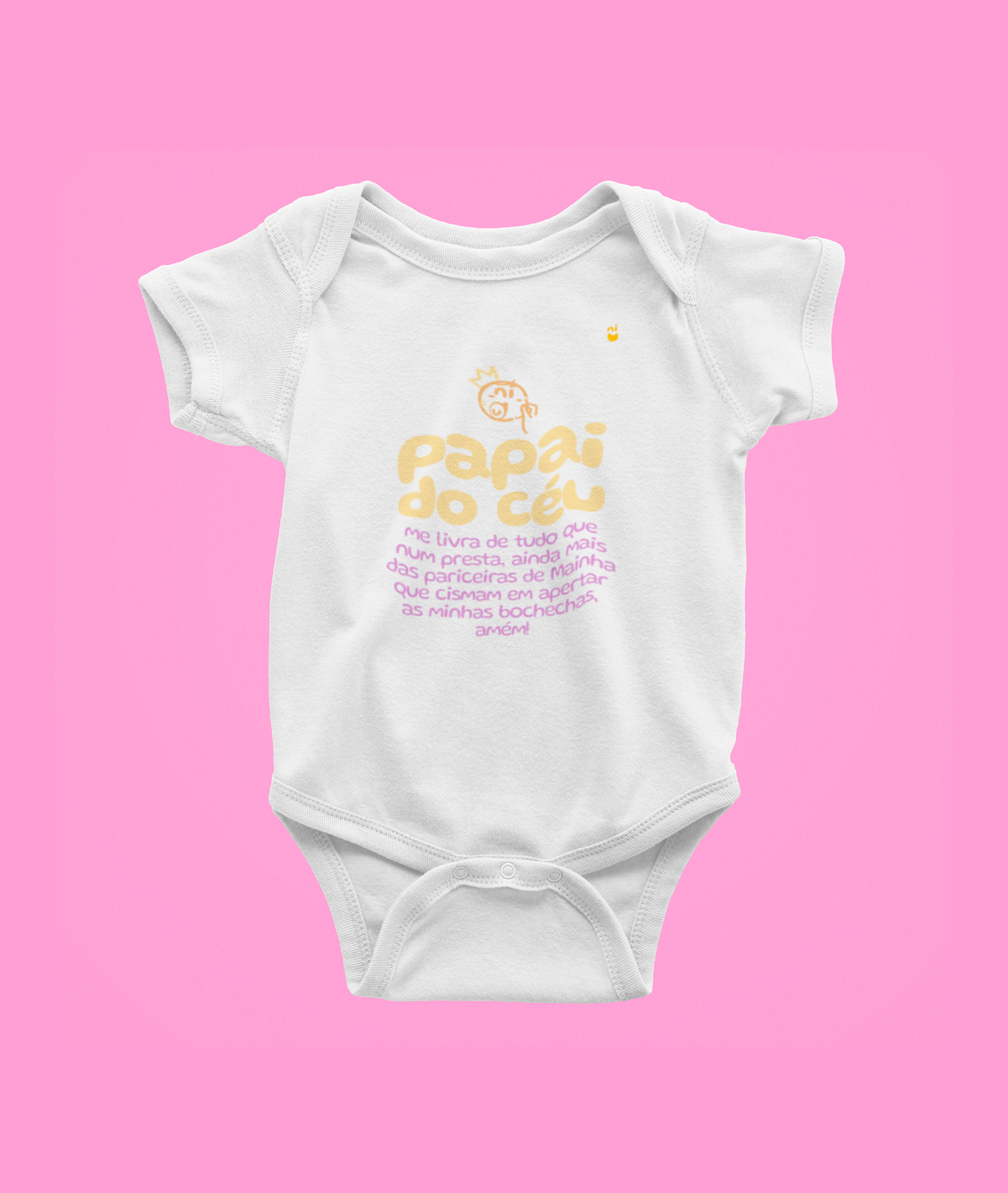 Esse body é para as piquenas nordestinas arretadas, que já sabem que tem que pedir ajuda ao papai do céu pra escapar das pariceiras de mainha que não sossegam enquanto não apertam nossas buchehcas, viu! Com a frase personalizada "papai do céu, me livra de tudo que num presta, ainda mais das pariceiras de mainha que cismam em aperto as minhas preces, amém!", esse vai vai fazer a alegria dos piquenus e arrancar risadas dos mais velhos, num é mesmo? Vamos garantir o conforto do seu xodó com esse tecido macio e resistente, que aguenta até os mais danados, viu? É tudo feito com muito capricho, sem esquecer do nosso jeitinho nordestino de falar.