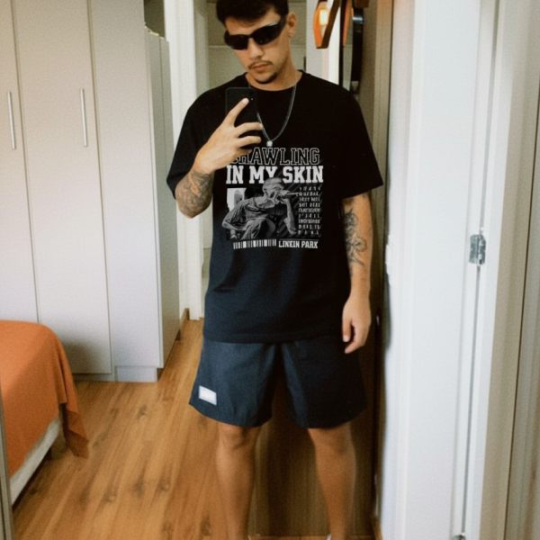 T-shirt Crawling in my skin  – Linkin Park é mais do que uma simples camiseta: é um tributo à música que marcou uma geração e segue inspirando corações. Feita com tecido premium de toque macio, modelagem moderna e caimento perfeito, ela une conforto, estilo e autenticidade em cada detalhe. A estampa exclusiva em Silk Digital HD garante cores vibrantes e definição impressionante, refletindo a intensidade e a emoção que tornaram o Linkin Park uma das maiores bandas do rock. Seu acabamento reforçado, com gola em ribana e viés ombro a ombro, oferece resistência superior e evita deformações, mantendo a peça impecável mesmo após muitas lavagens. Durável, versátil e com design atemporal, essa camiseta é ideal para quem quer expressar personalidade — seja em um show, no dia a dia ou naquele look casual cheio de atitude. Com excelente custo-benefício, é a escolha certa para quem busca qualidade, conforto e significado em uma só peça. Vista a música, sinta a energia e carregue o legado do rock no peito.
