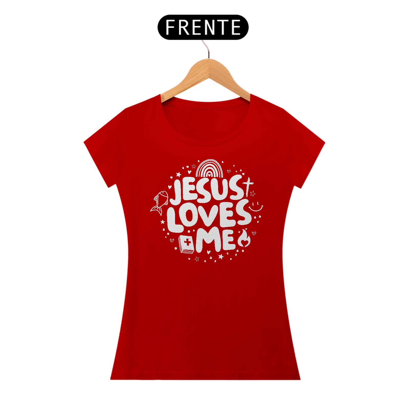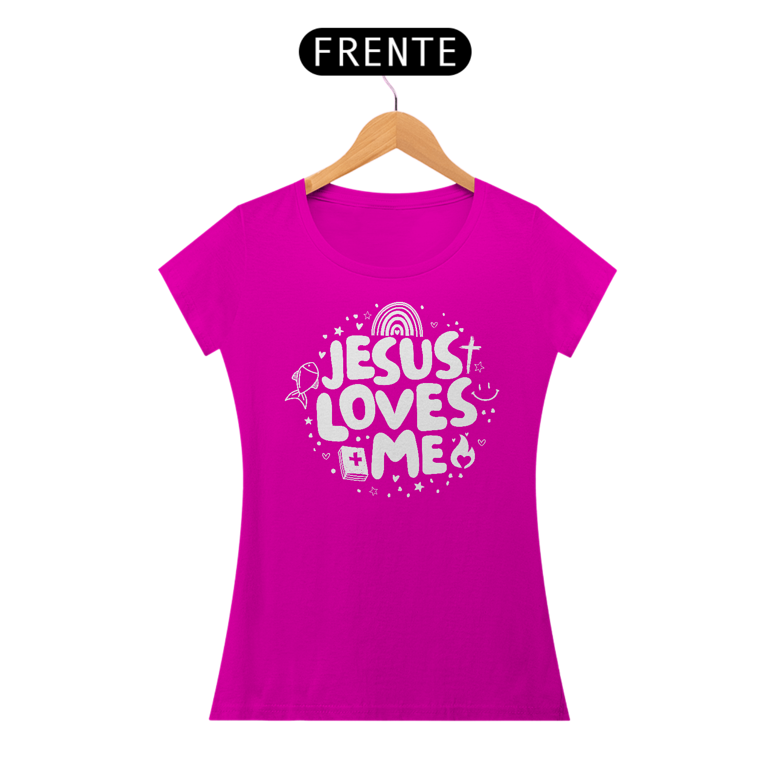 T-Shirt confortável e feito com materias de alta qualidade que trazem conforto e uma pegada mais comteporânea. Possui uma estampa linda com a mensagem de que Jesus me ama!