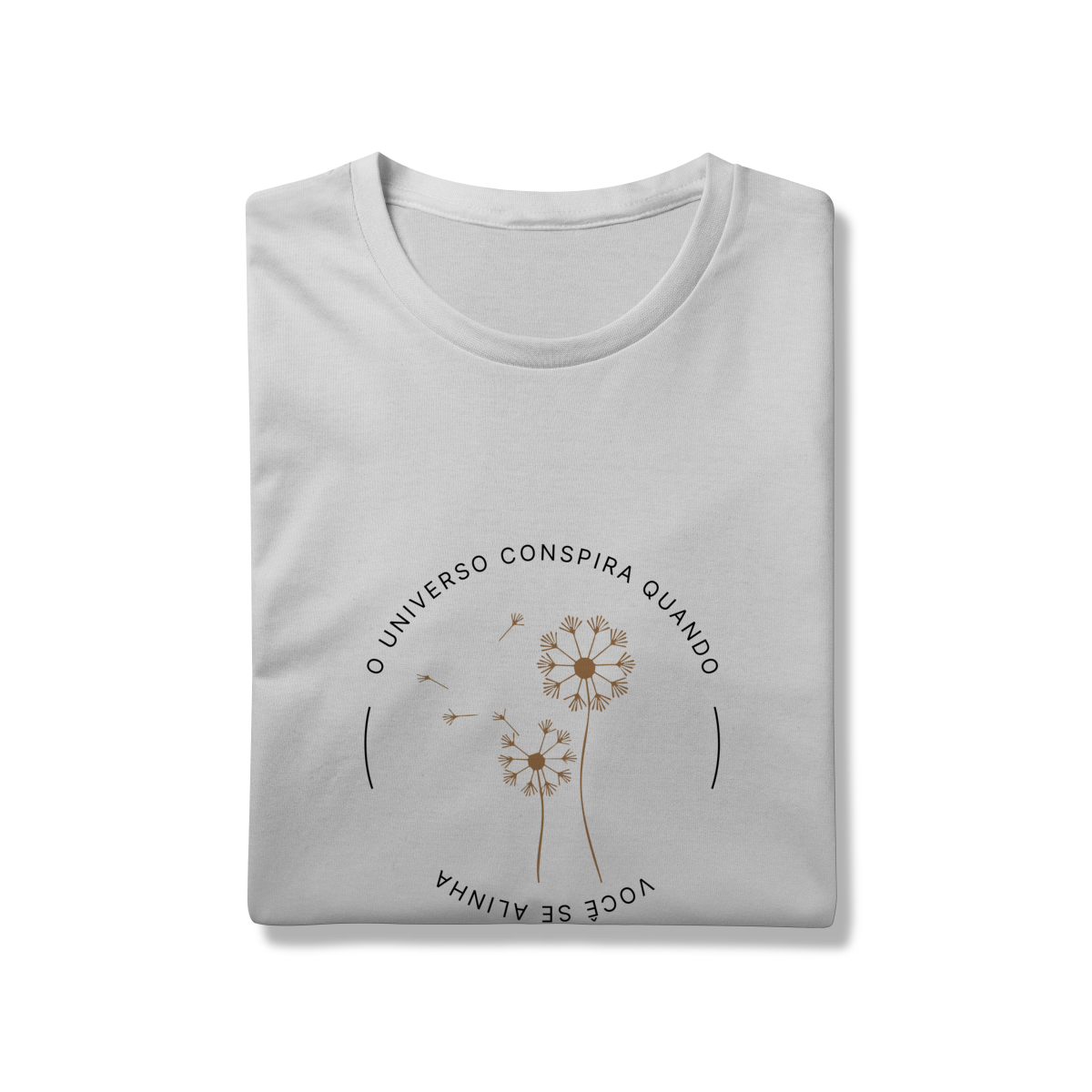 Esta t-shirt traz um lembrete sutil e poderoso: “O universo conspira quando você se alinha”.