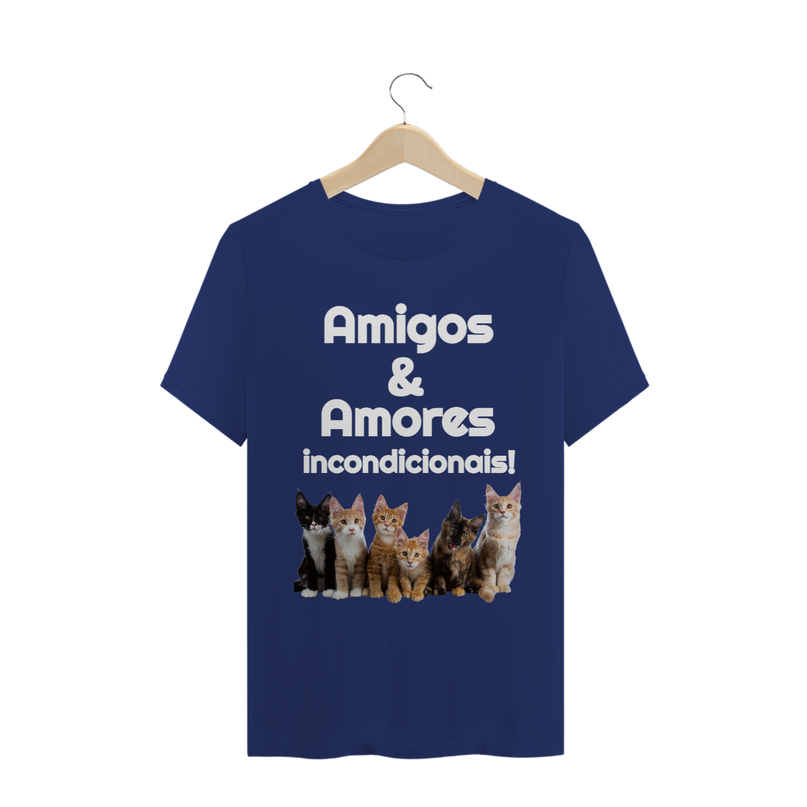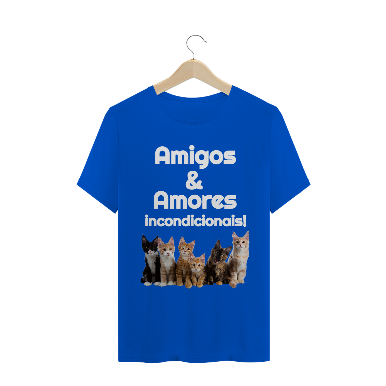 Camiseta com a frase "Amigos & Amores incondicionais!" com gatos para os apaixonados e apaixonadas por esses pets!