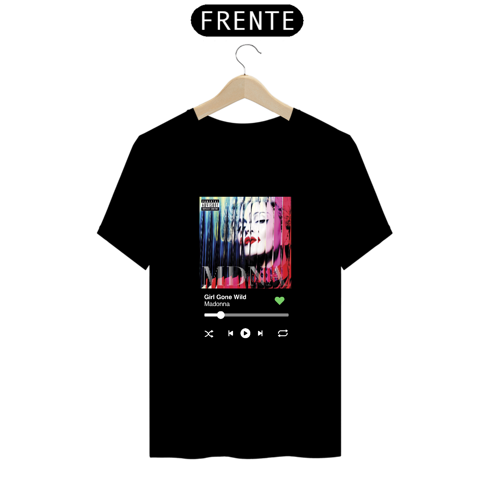 Camiseta com estampa do disco "MDNA" (2012) de Madonna.