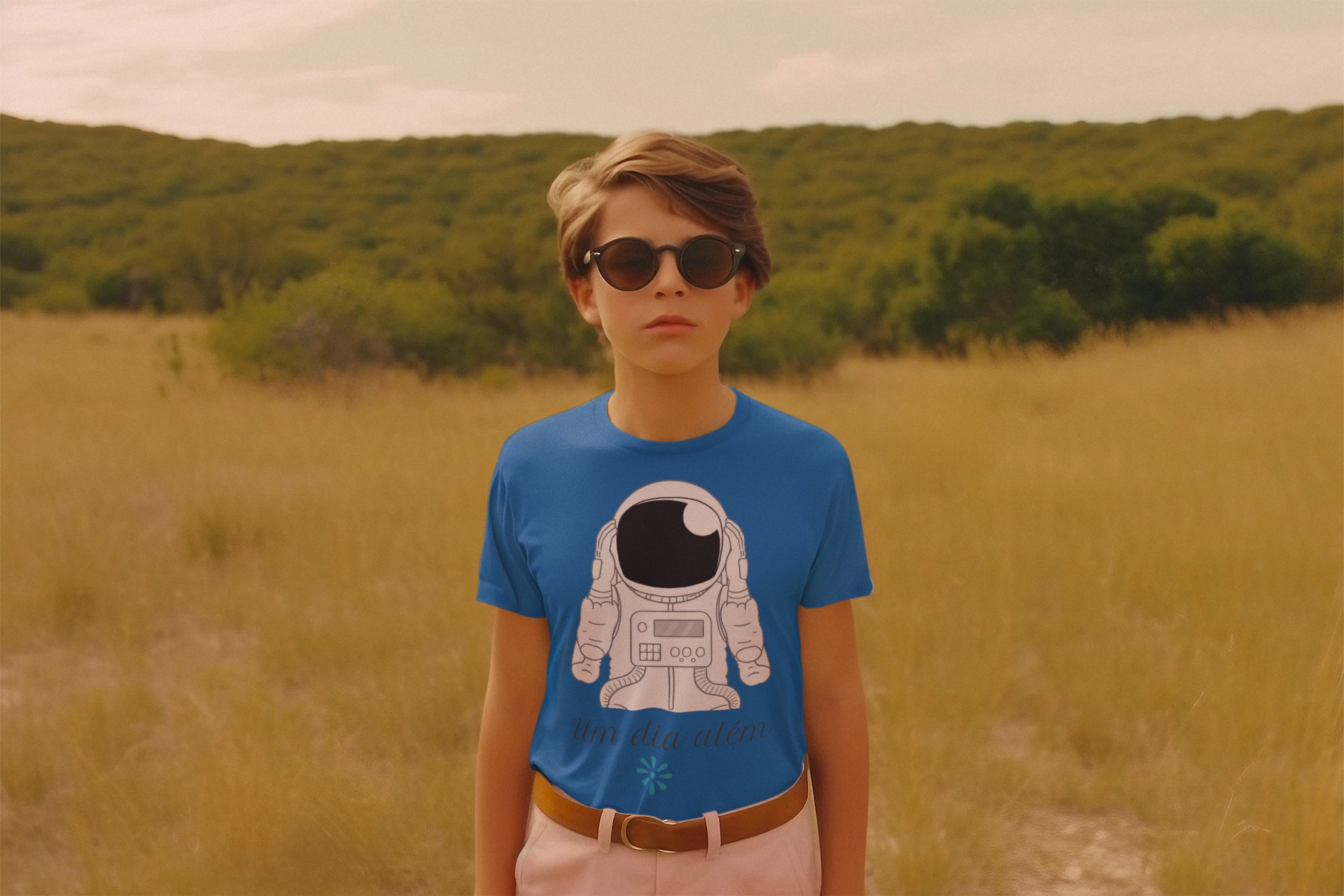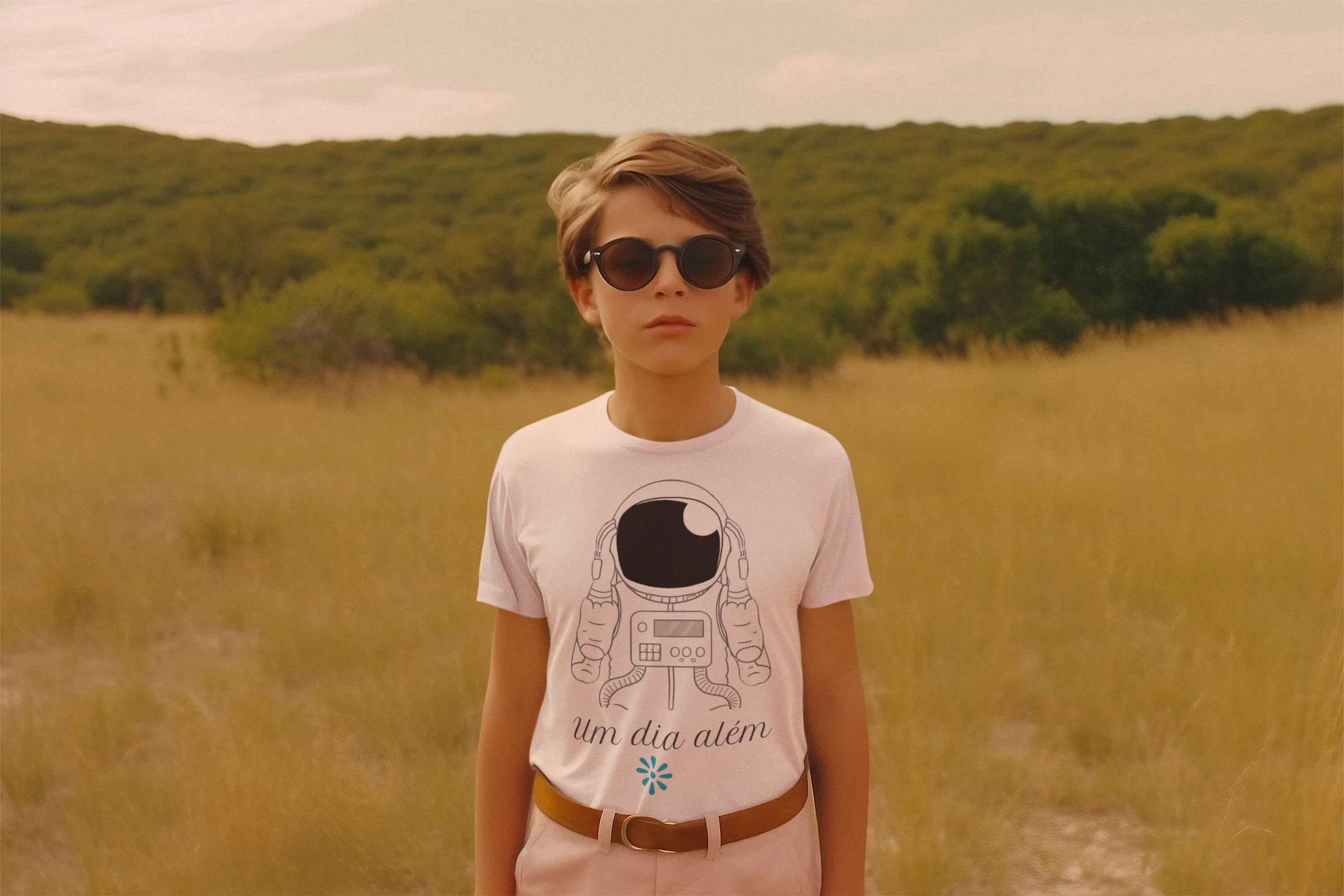 A coleção "Um dia além" traz a camiseta "astronauta" com uma temática do imaginário que conduz as crianças para a órbita dos sonhos, da fantasia, alinhados com a verdade, com o bem e com a beleza singela, própria do mundo infantil. Uma inspiração para que crianças e adultos sigam sempre tendo como alvo a beleza inata do ser humano e de sua existência.