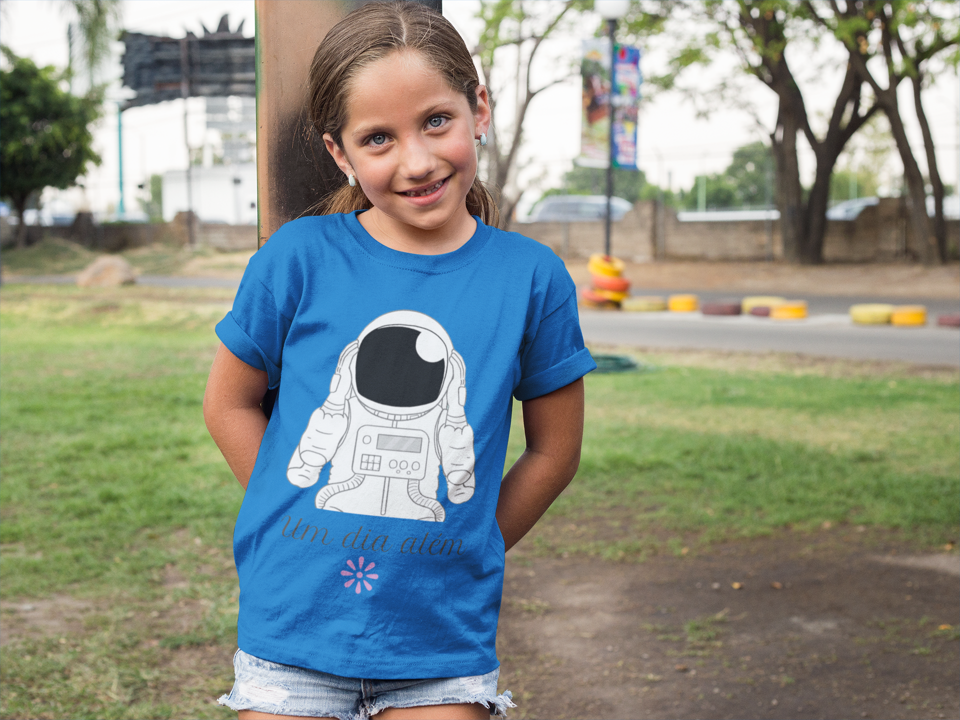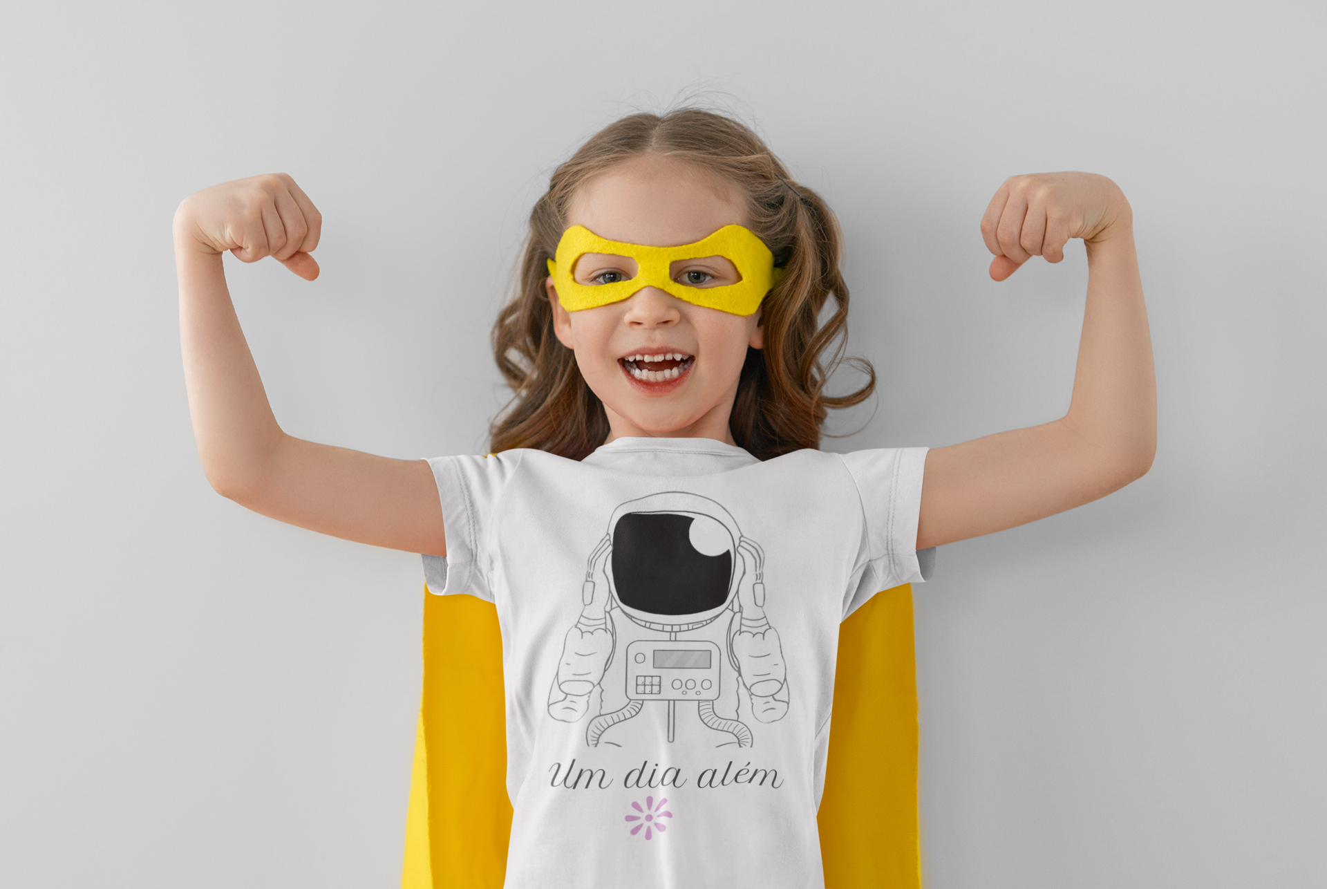 A coleção "Um dia além" traz a camiseta "astronauta" com uma temática do imaginário que conduz as crianças para a órbita dos sonhos, da fantasia, alinhados com a verdade, com o bem e com a beleza singela, própria do mundo infantil. Uma inspiração para que crianças e adultos sigam sempre tendo como alvo a beleza inata do ser humano e de sua existência.