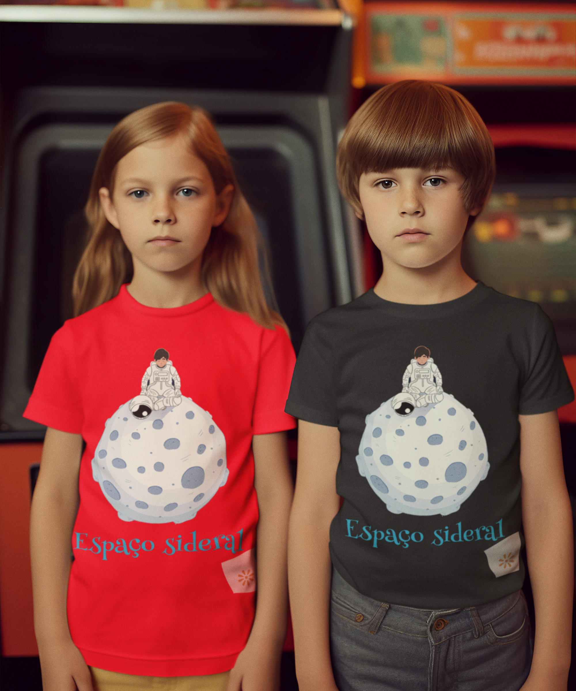 A coleção "Um dia além" traz a camiseta "espaço sideral" com uma temática do imaginário que conduz as crianças para a órbita dos sonhos, da fantasia, alinhados com a verdade, com o bem e com a beleza singela, própria do mundo infantil. Uma inspiração para que crianças e adultos sigam sempre tendo como alvo a beleza inata do ser humano e de sua existência.