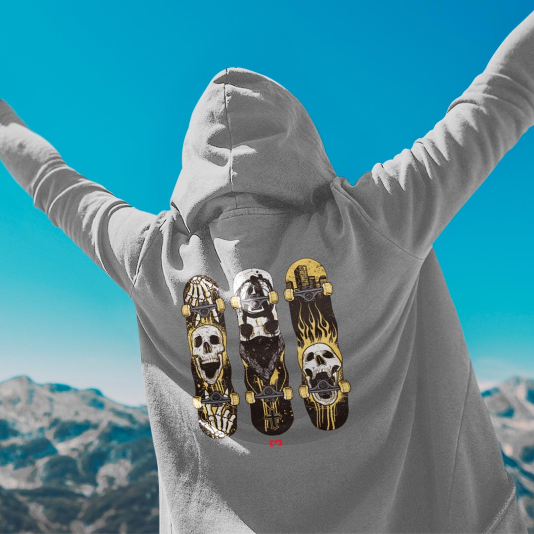 Confira nossa coleção de moletons com touca e zíper, apresentando estampa de caveiras em shapes de skate. Estes moletons são perfeitos para os amantes do estilo urbano e alternativo. Feitos com materiais de alta qualidade, garantem conforto e estilo. Adicione um toque de rebeldia ao seu guarda-roupa com essas peças únicas!