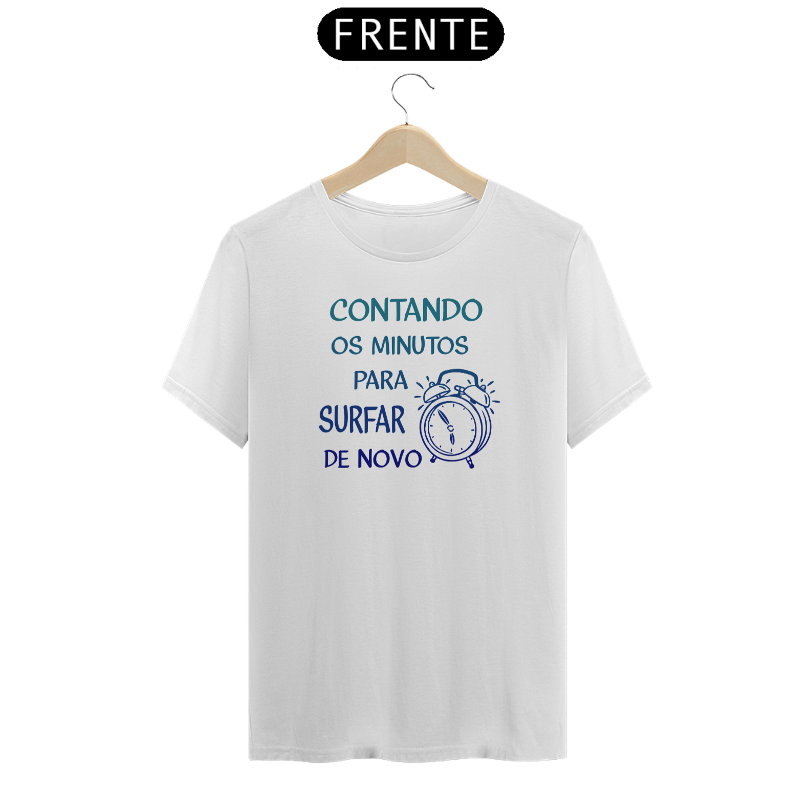 Coleção Frases de Surf. Camisetas divertidas e motivacionais divulgando a alegria e o prazer que é surfar. 'Não ver a hora' de ir para a água é um desabafo de quem ama estar no mar se divertindo e sentindo a vibe do surf. Bom é quando estamos no mar!