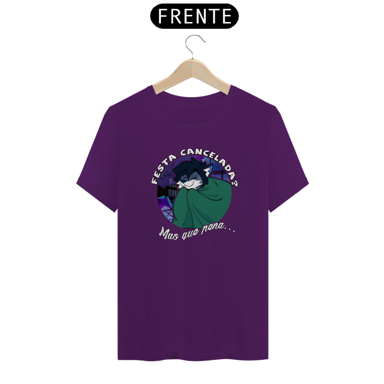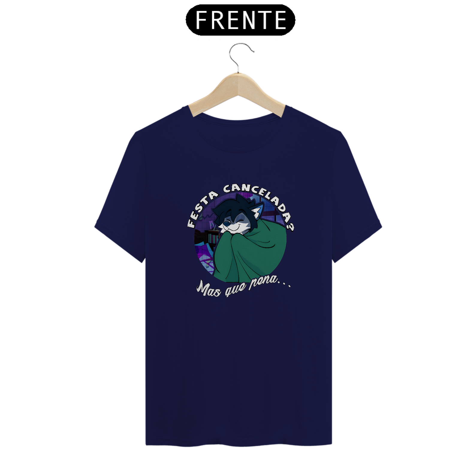 Camiseta 100% algodão com estampa “Festa Cancelada — Mas que pena…”: design fofo e irônico, perfeito para quem prefere ficar em casa lendo e maratonando.