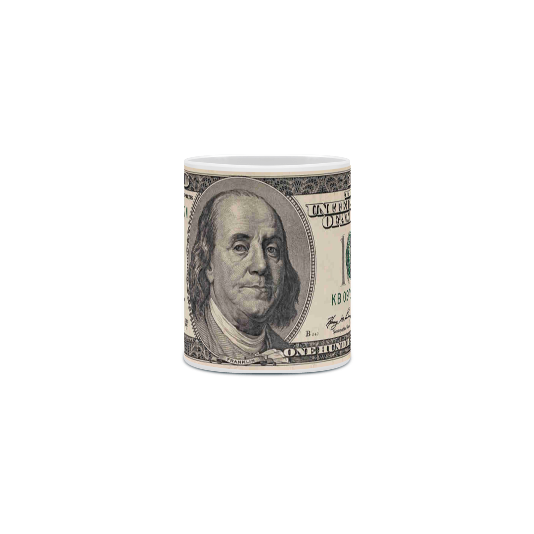 Adicione um toque de riqueza e criatividade à sua rotina de café com nossa Caneca Estampada Nota de 1 Dólares.
