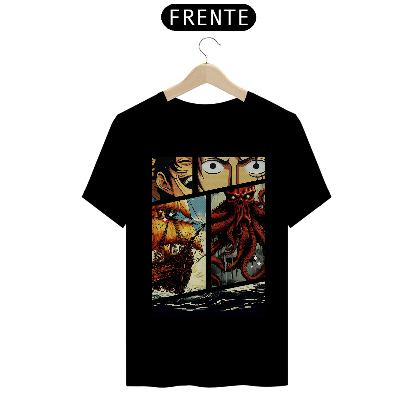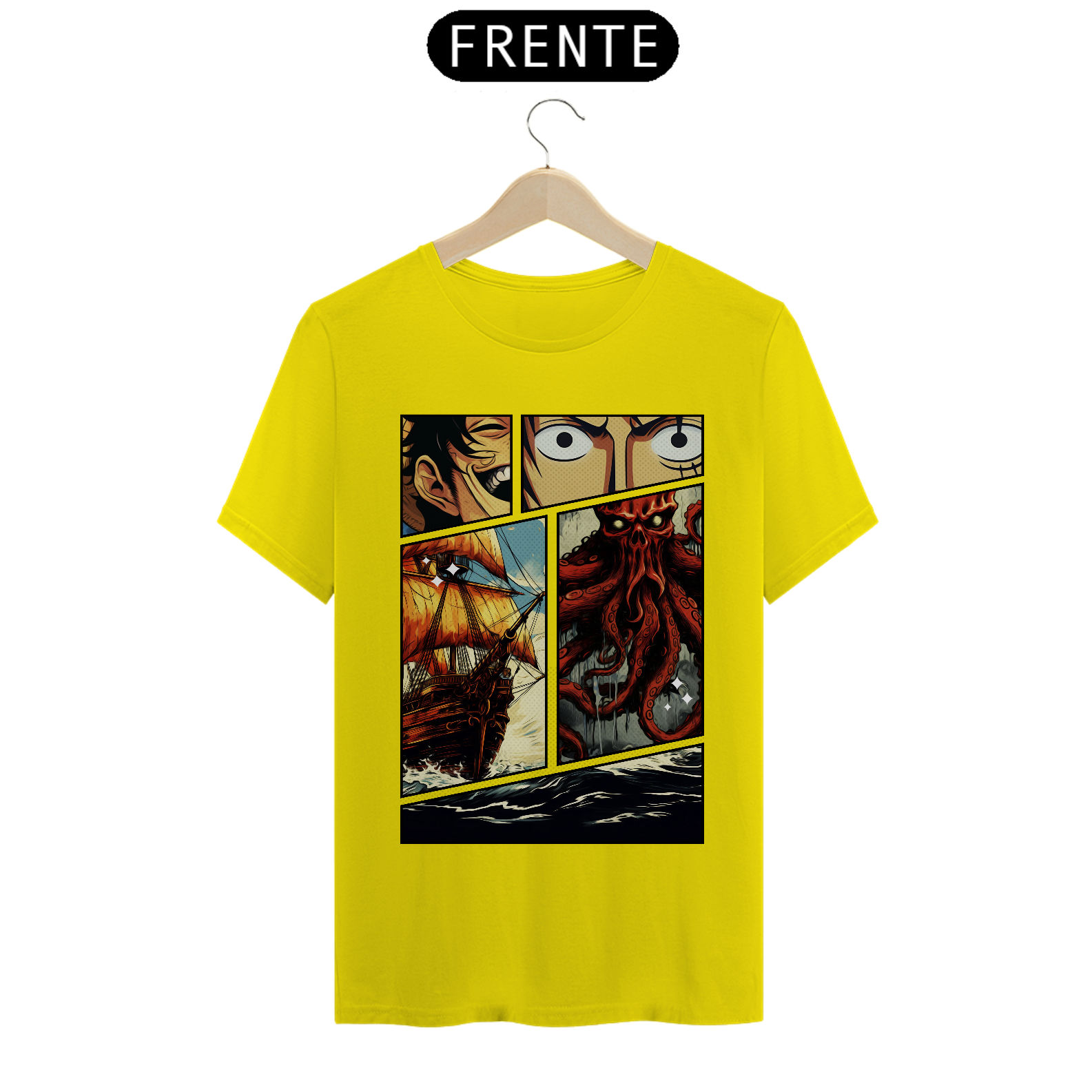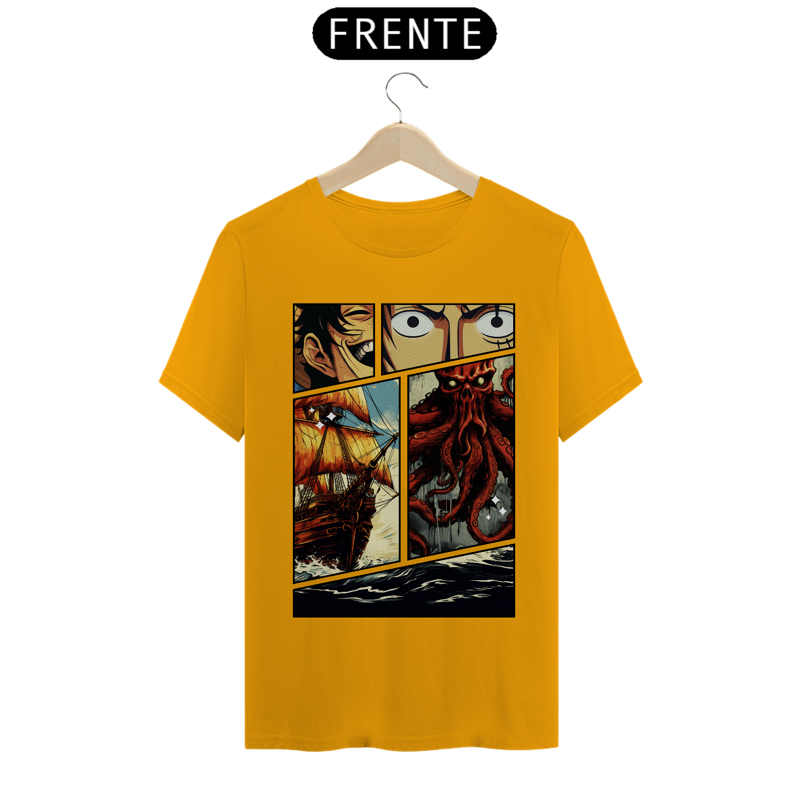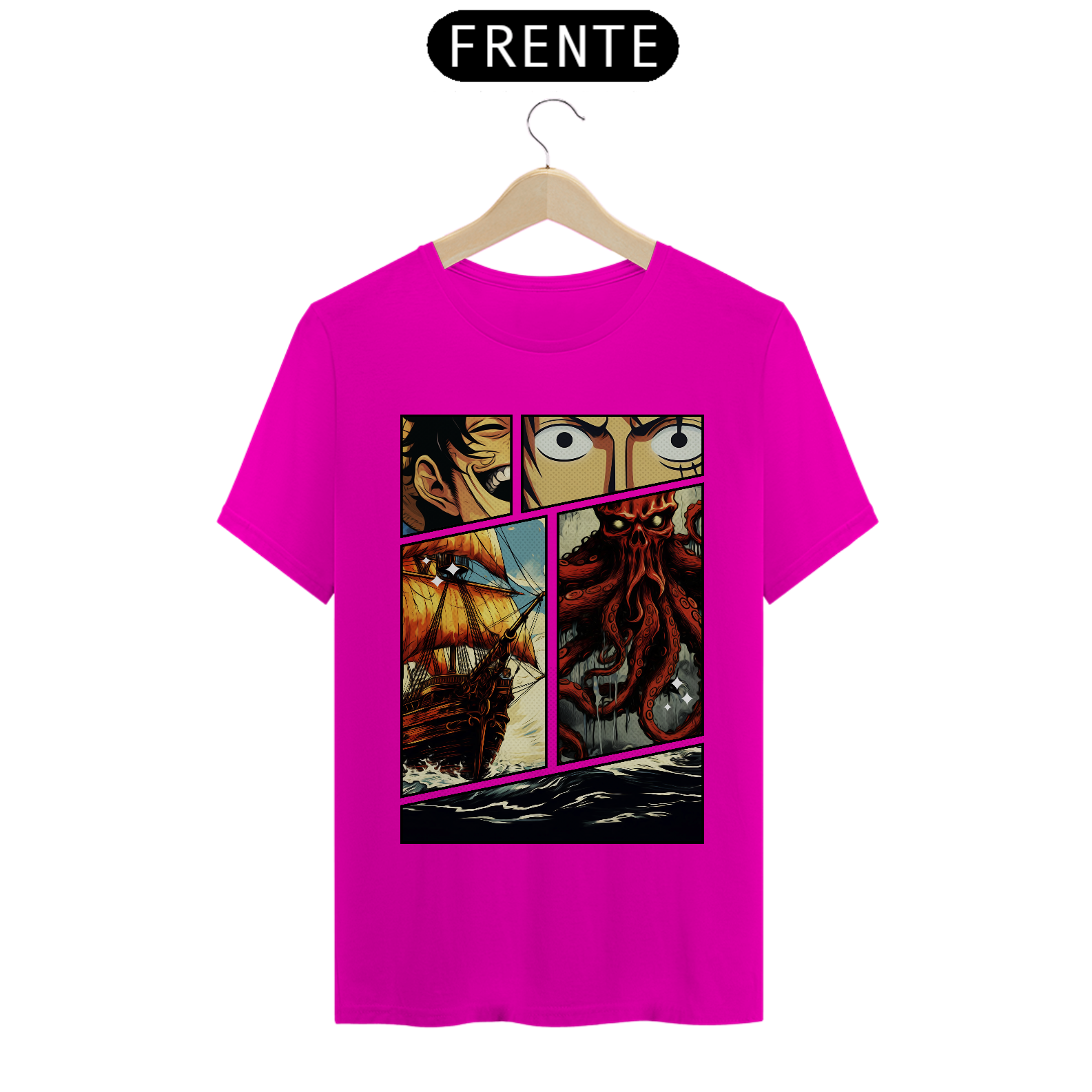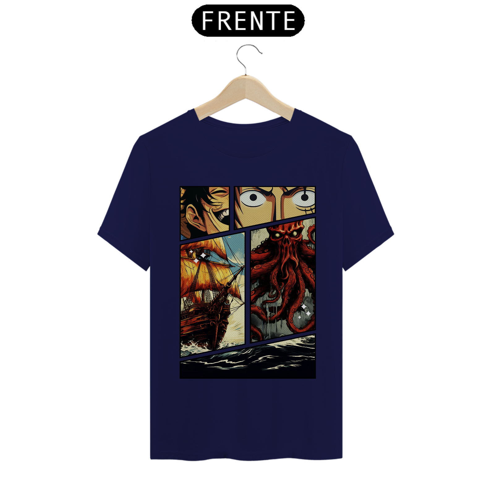 Cores do produto: Como cada tela de computador ou celular tem seu próprio jeito de mostrar cores, então a cor da sua camiseta e da estampa pode ser um pouco diferente do que você viu online.
