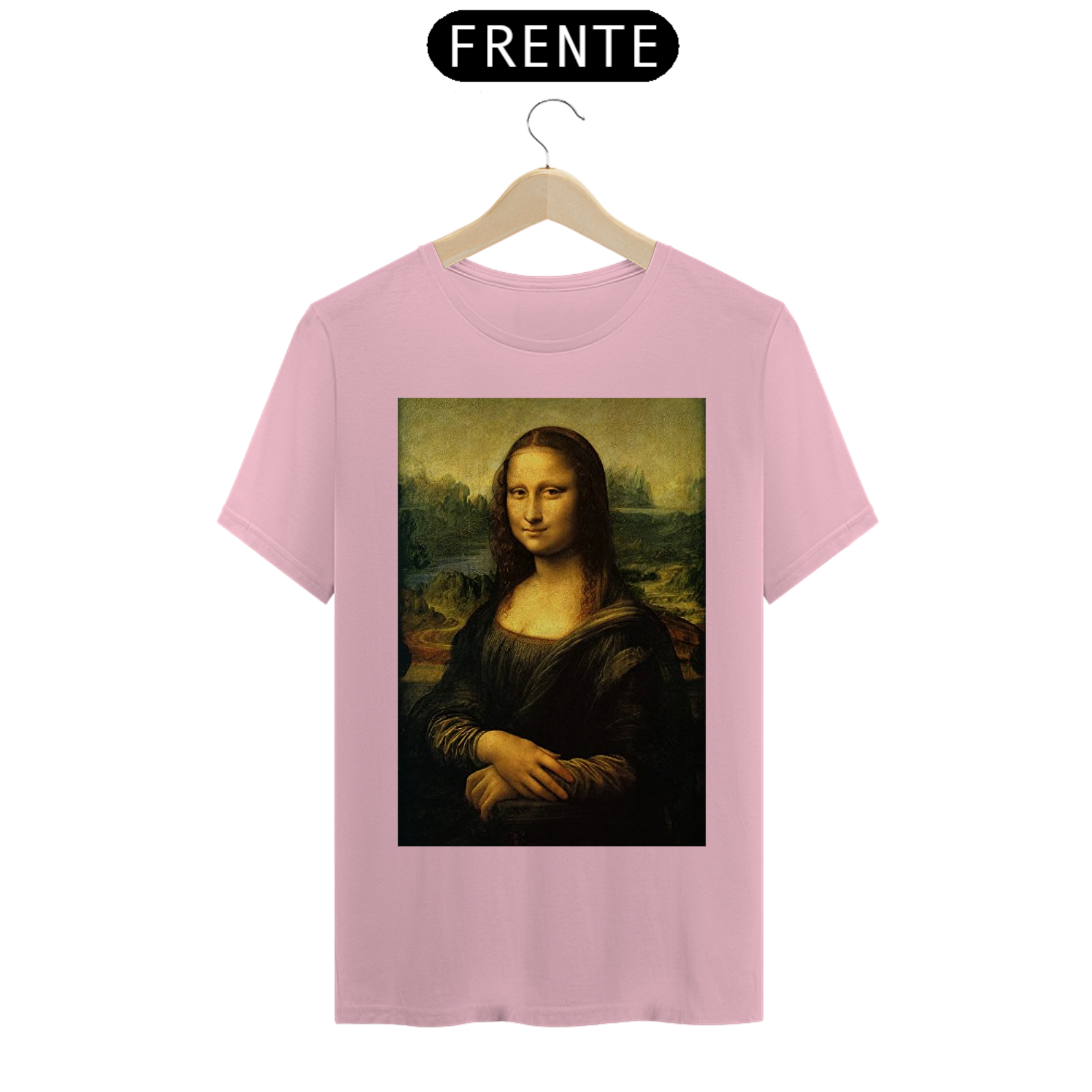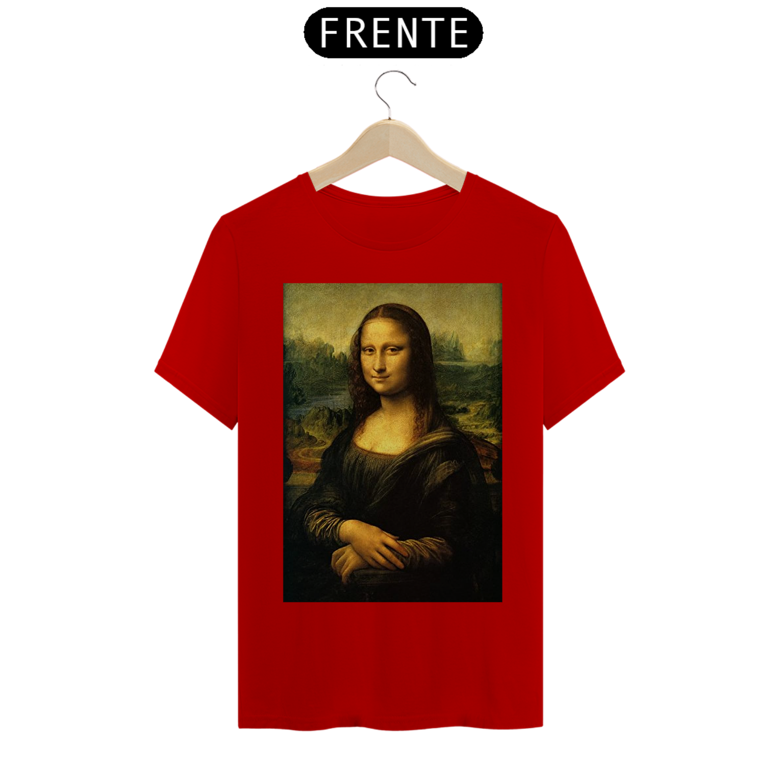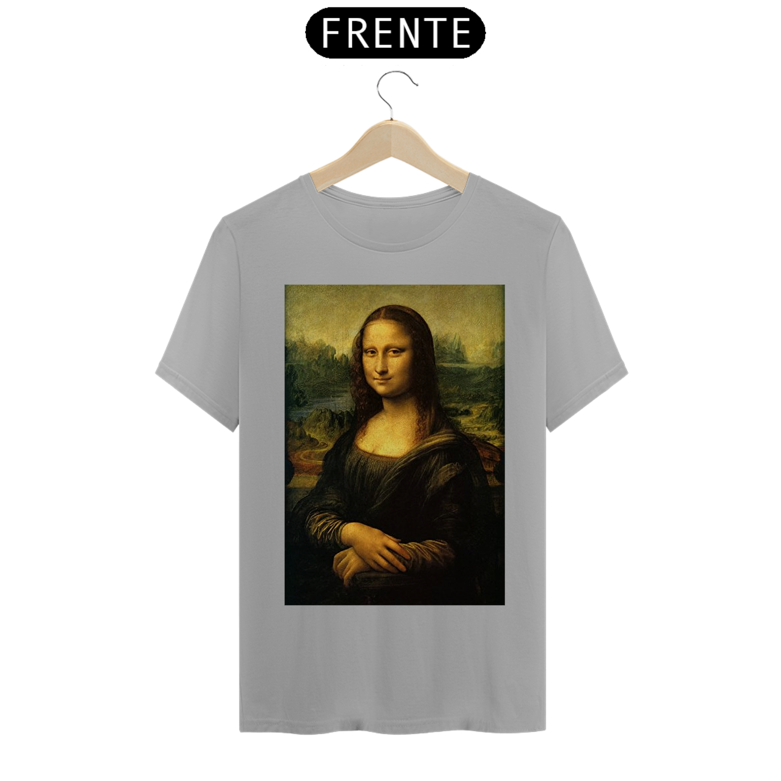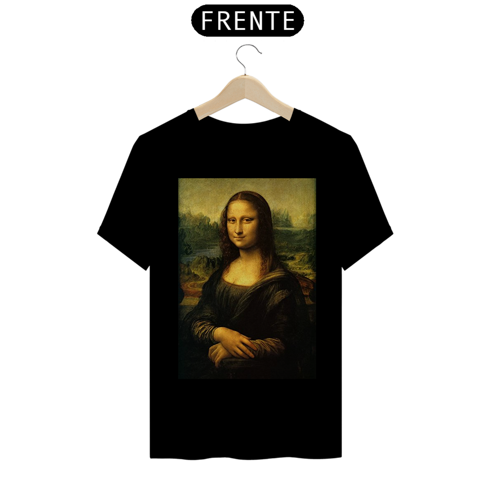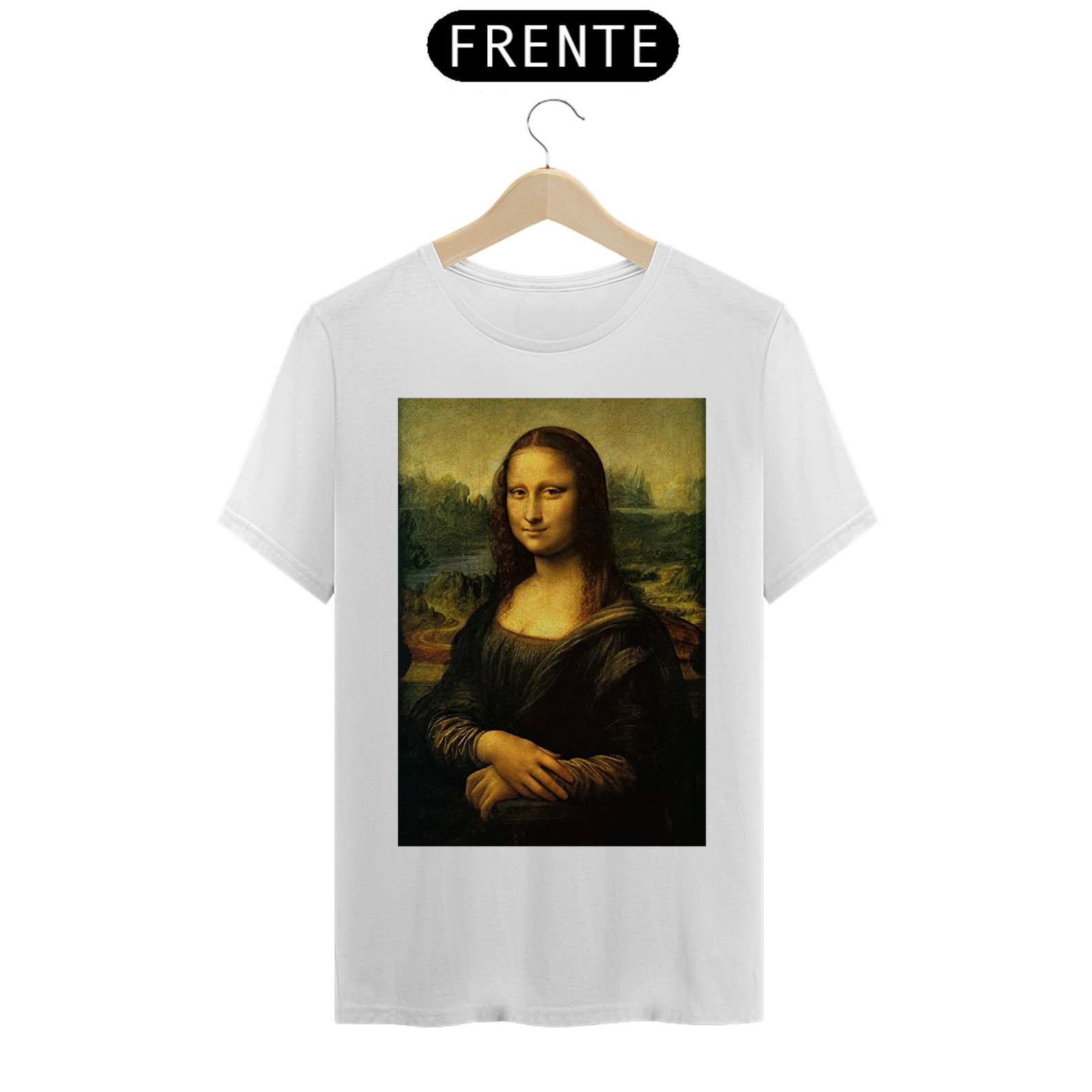 Adicione uma pitada de arte icônica ao seu estilo com nossa Camiseta Estampada da Mona Lisa. Esta peça elegante captura a enigmática Mona Lisa de Da Vinci em detalhes vívidos!