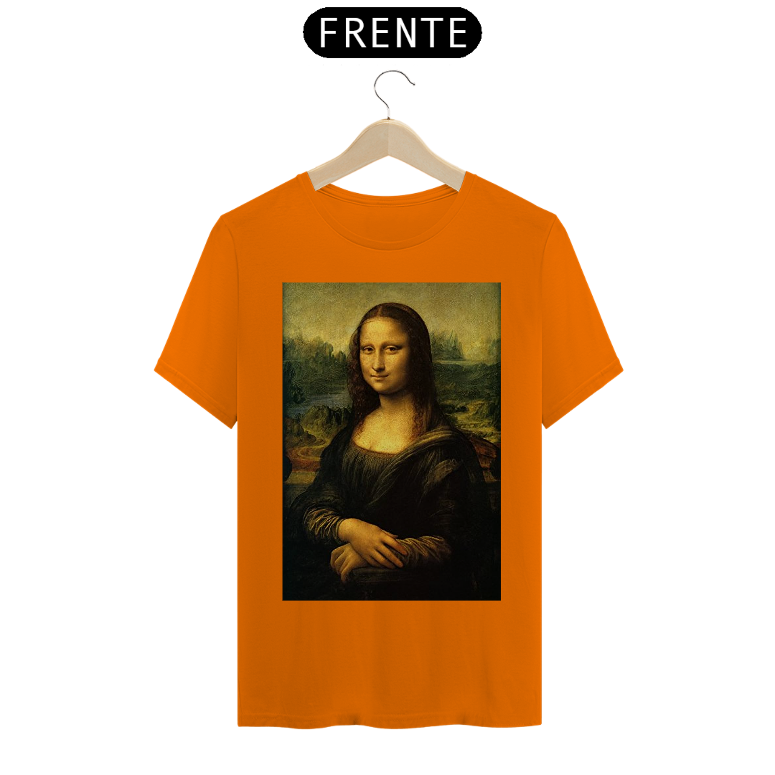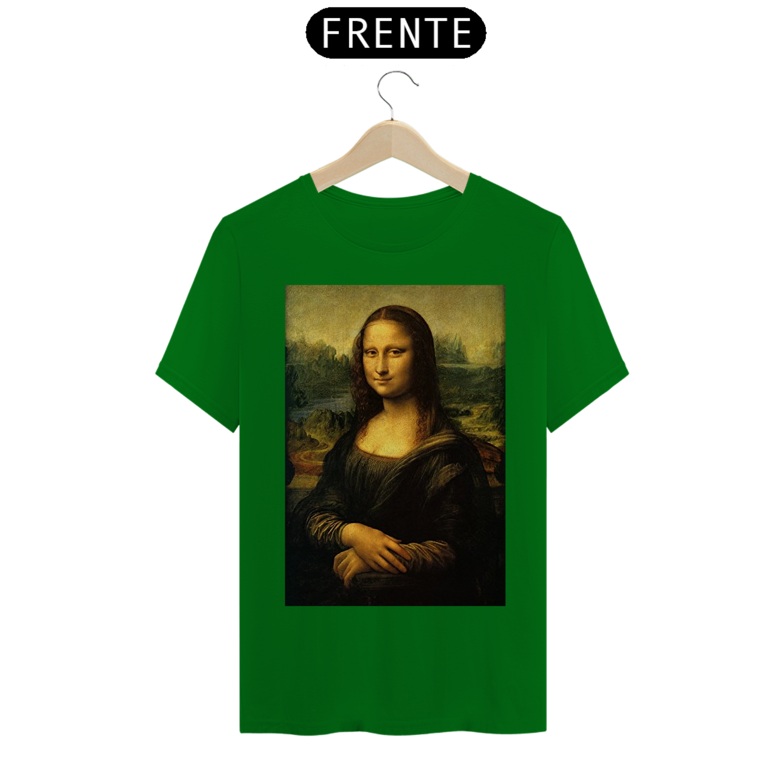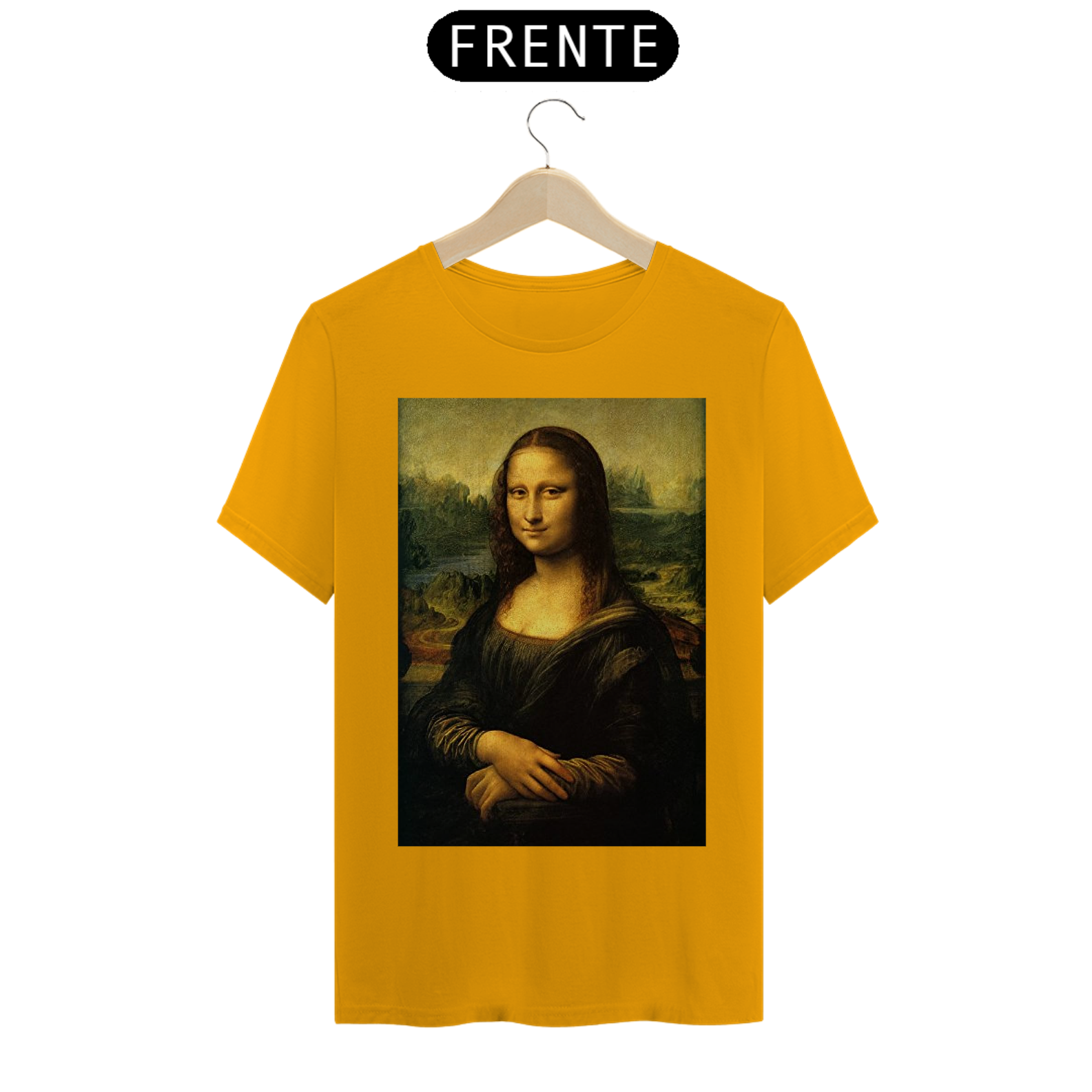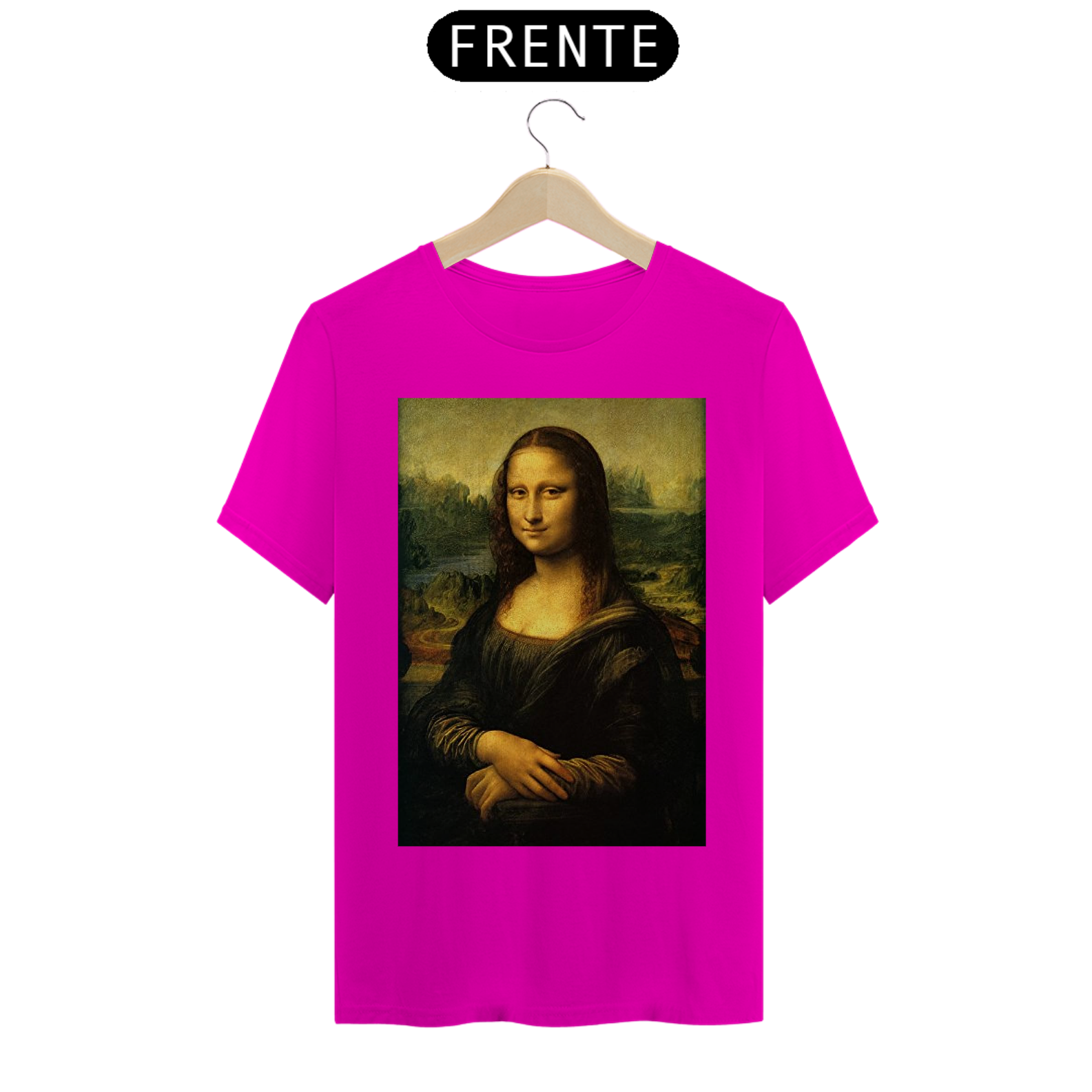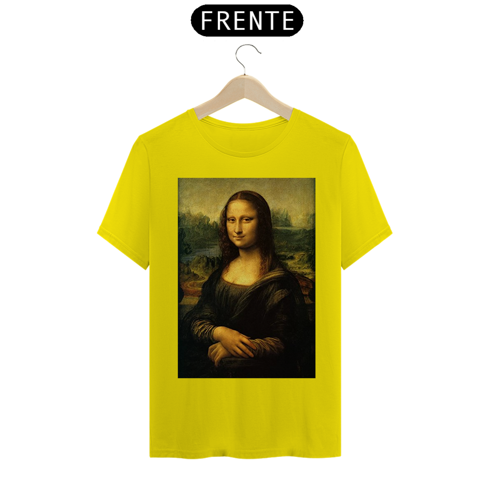 Adicione uma pitada de arte icônica ao seu estilo com nossa Camiseta Estampada da Mona Lisa. Esta peça elegante captura a enigmática Mona Lisa de Da Vinci em detalhes vívidos!