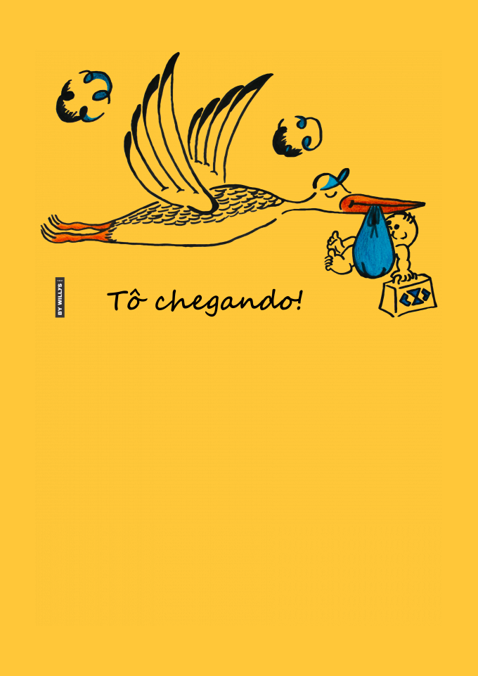 Estampa criativa universitária “Tô Chegando!”. Nesta ilustração trabalhei para o lado mais humorístico onde temos a figura de uma cegonha que vai entregar um administrador “recém-nascido”, chegando com conhecimento atualizado e fresquinho para aplicar na empresa. Também pode representar uma criança que nasceu e vai administrar os negócios da própria família no futuro. Use a imaginação. Use uma estampa universitária BY WILLYS T-Shirt.