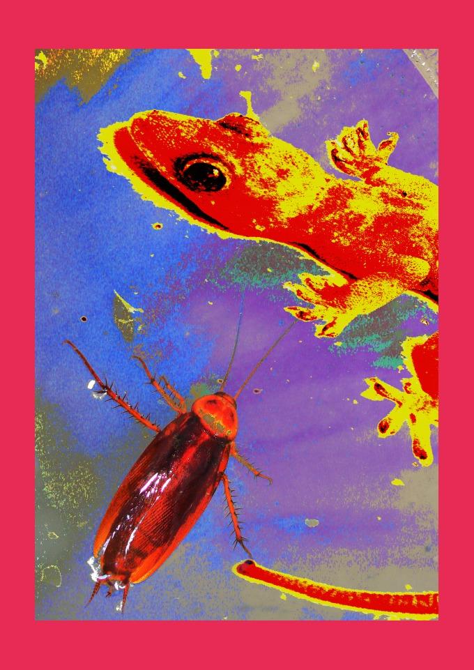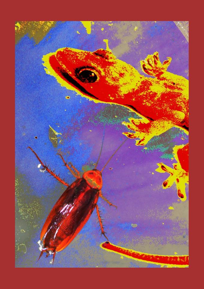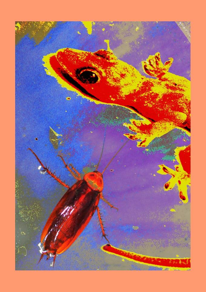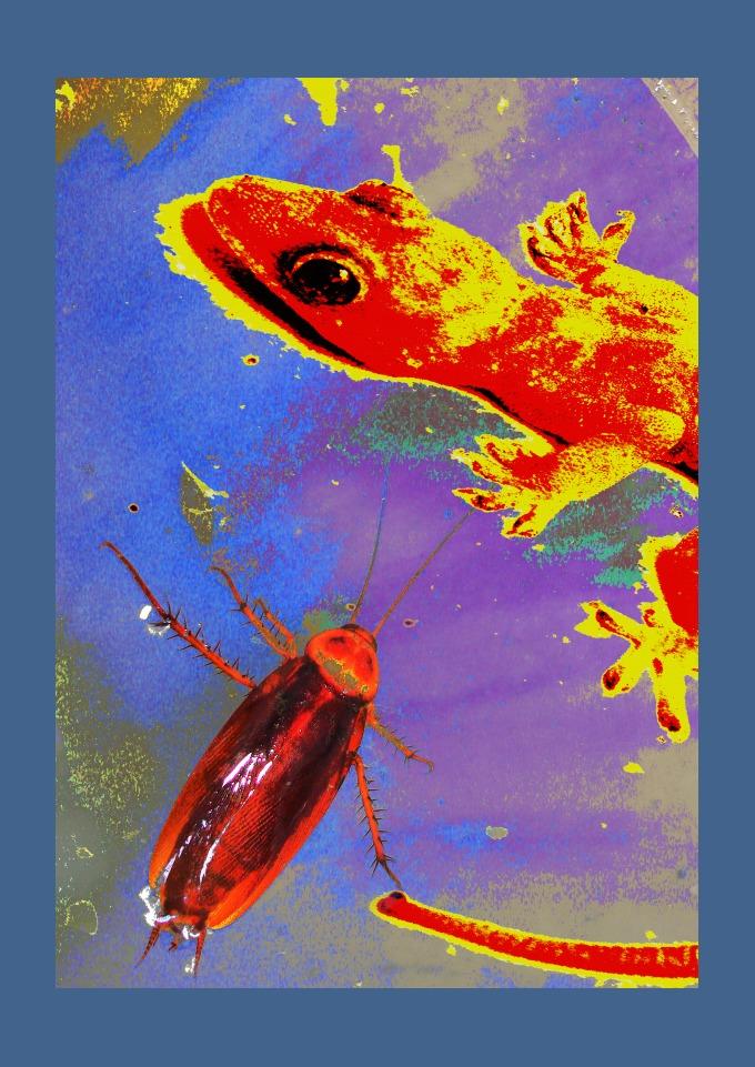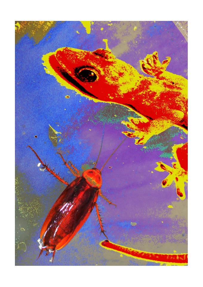 Esta estampa foi criada a partir de uma fotografia e trabalhada digitalmente. A lagartixa era de estimação, nome "Filó". Filó perambulava pelas paredes. do Laboratório.