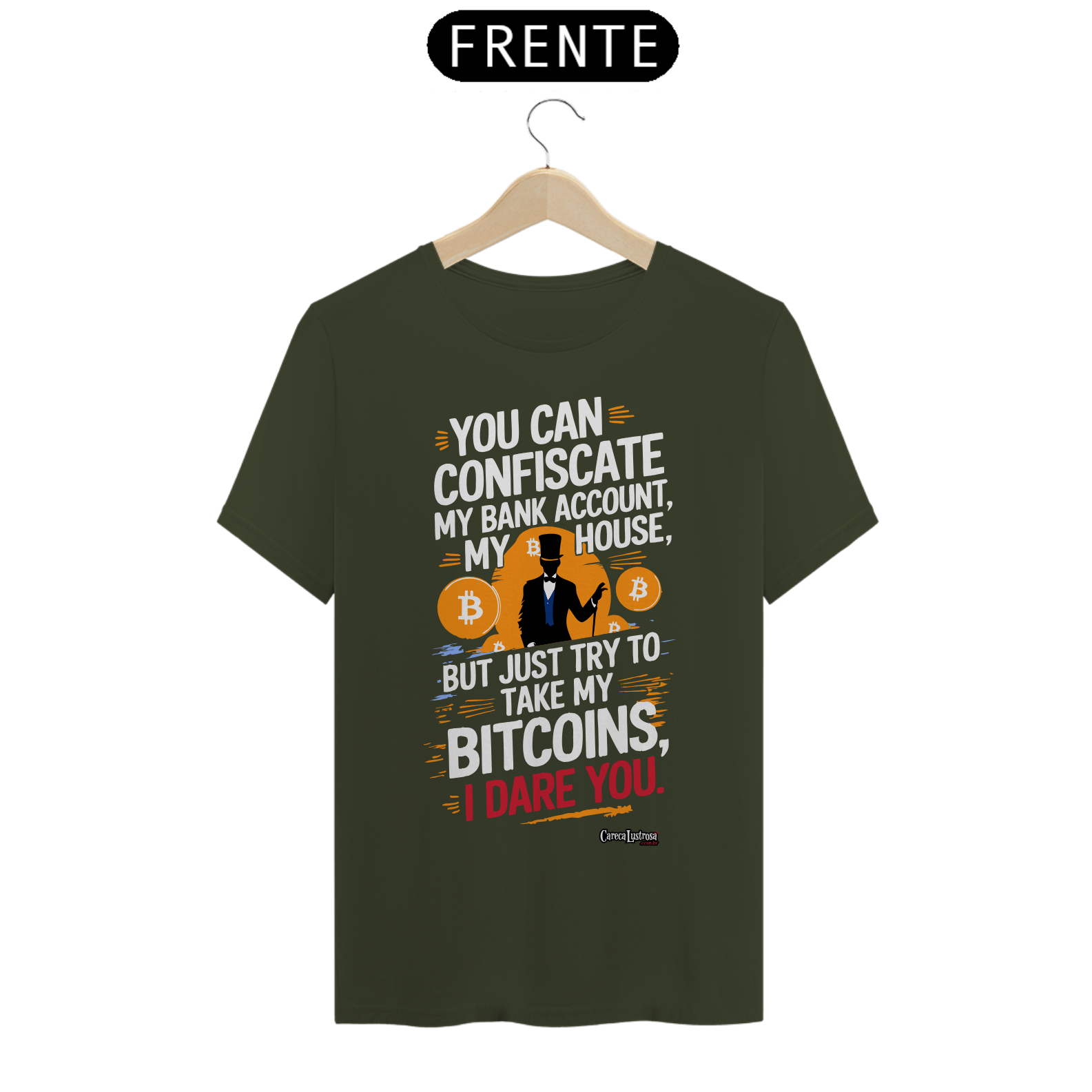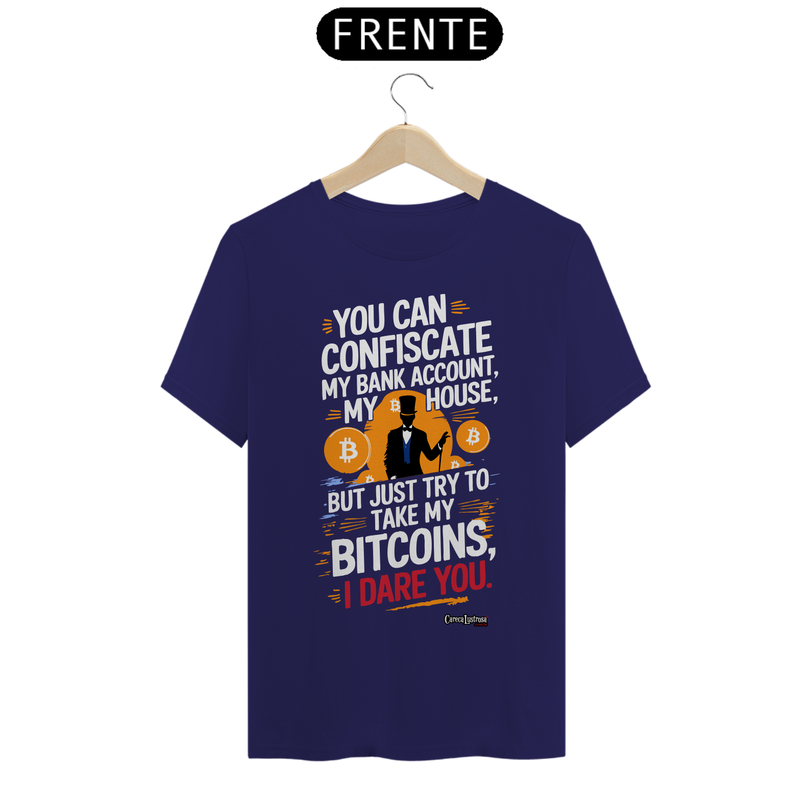 Defenda a liberdade financeira com estilo! A camiseta foi inspirada no grande Daniel Fraga em um design marcante. Perfeita para quem acredita na revolução do Bitcoin e quer expressar resistência de forma ousada e moderna.