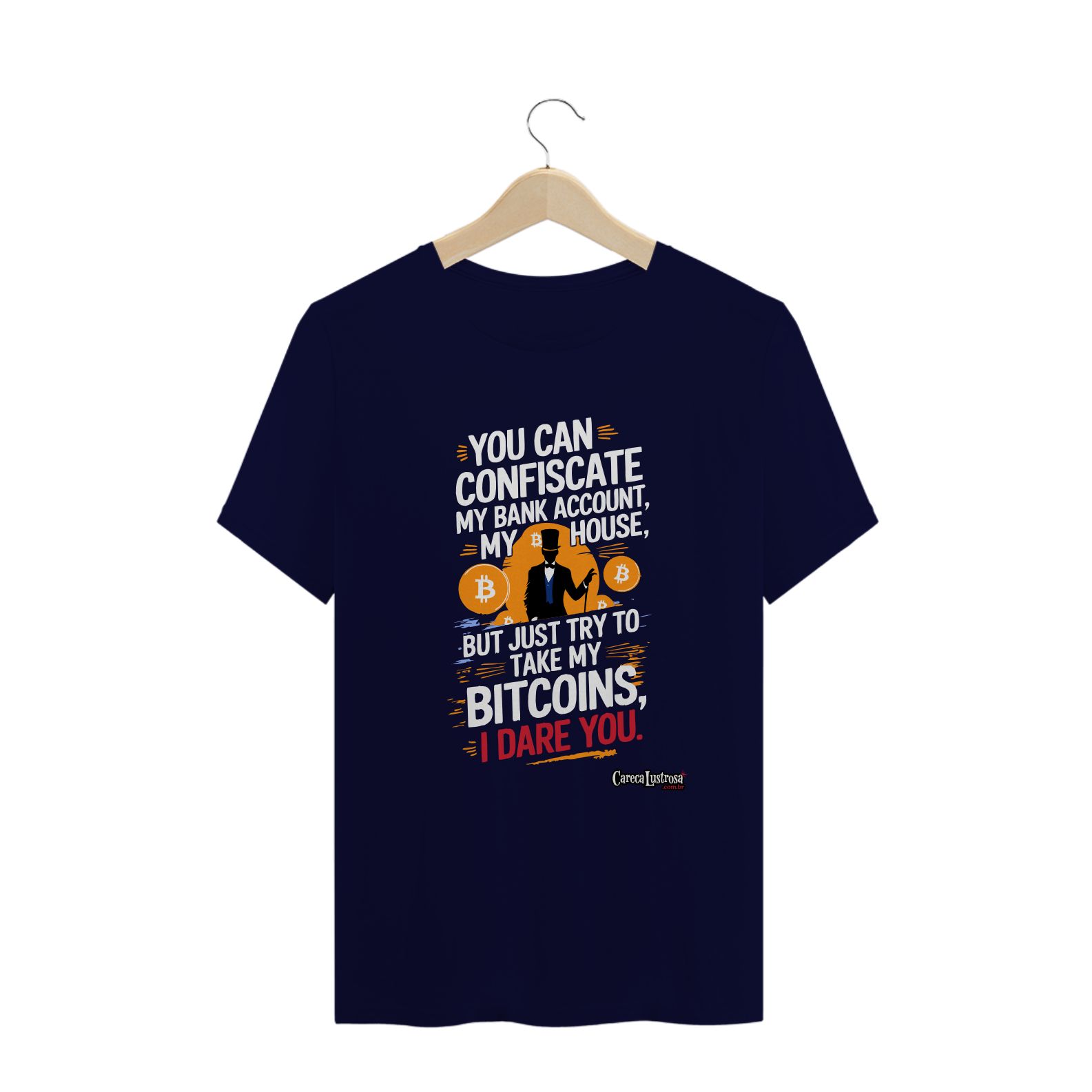 Defenda a liberdade financeira com estilo! A camiseta foi inspirada no grande Daniel Fraga em um design marcante. Perfeita para quem acredita na revolução do Bitcoin e quer expressar resistência de forma ousada e moderna.