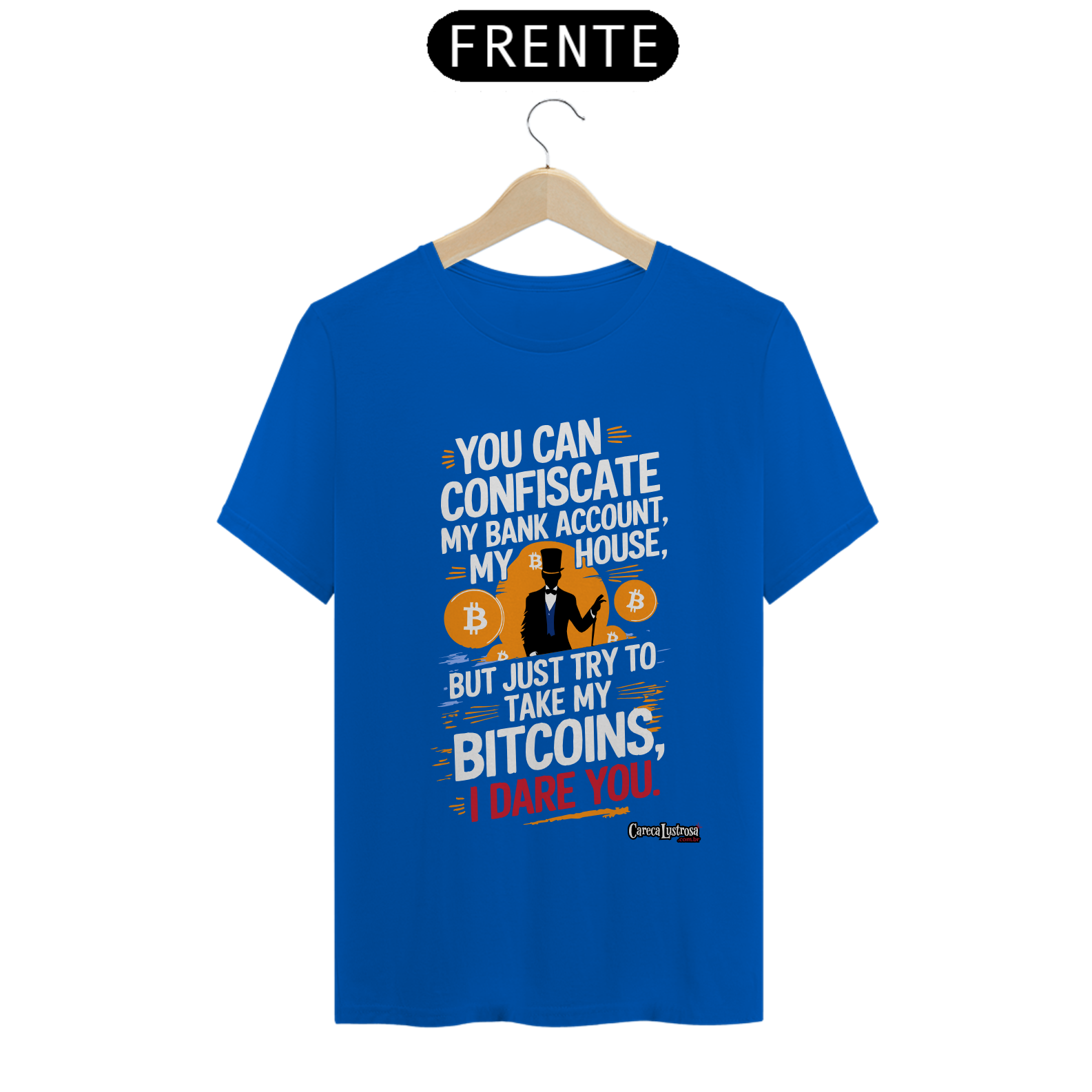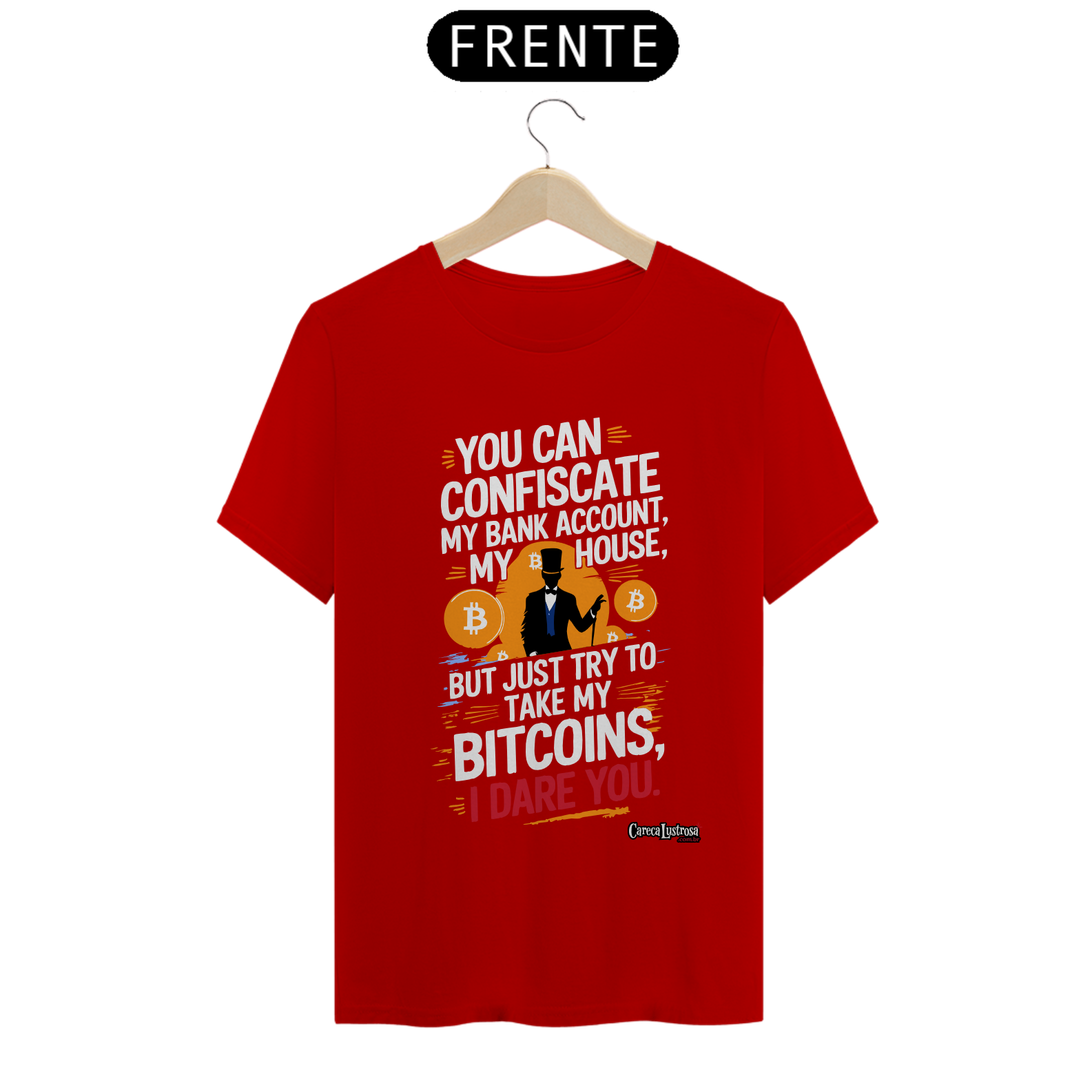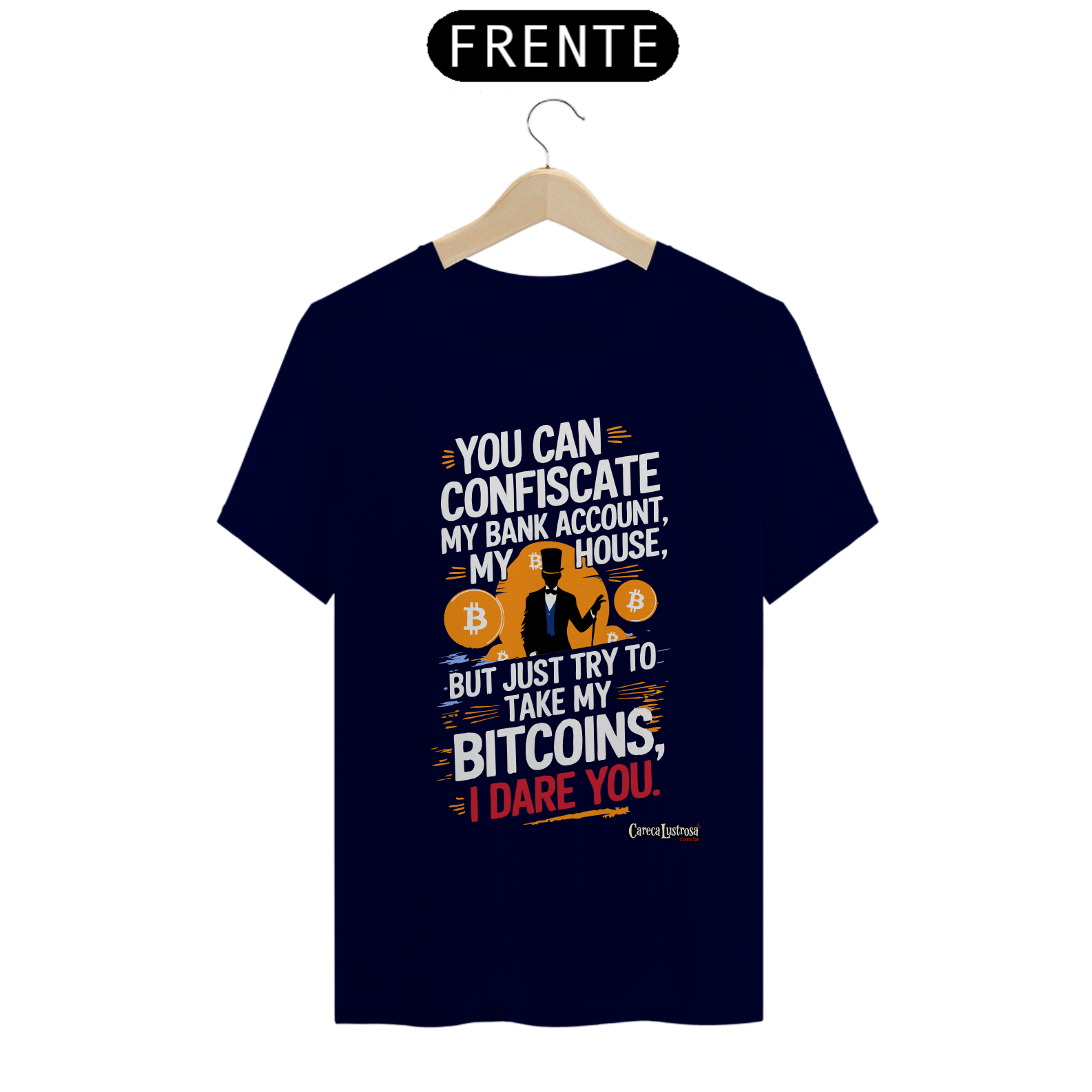 Defenda a liberdade financeira com estilo! A camiseta foi inspirada no grande Daniel Fraga em um design marcante. Perfeita para quem acredita na revolução do Bitcoin e quer expressar resistência de forma ousada e moderna.