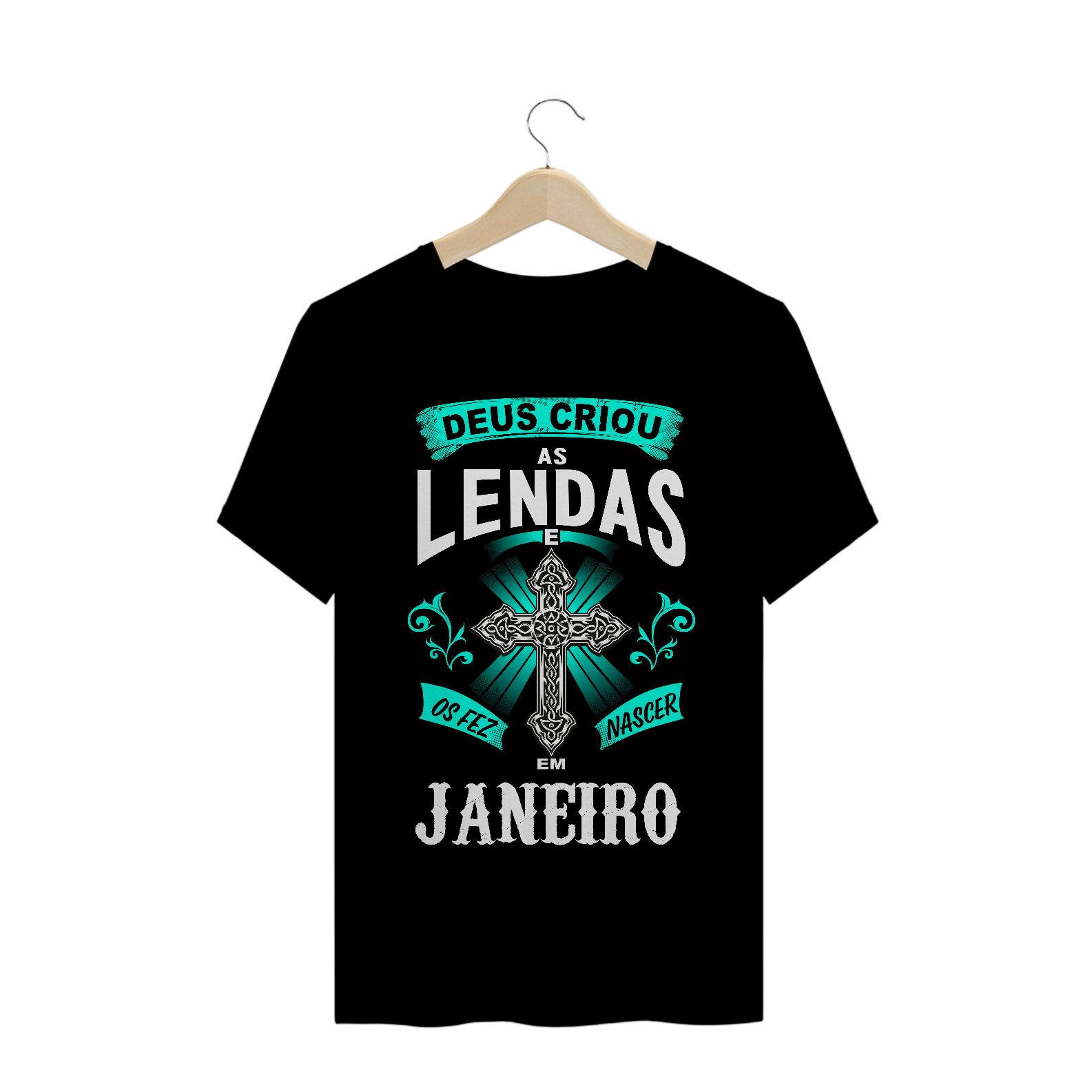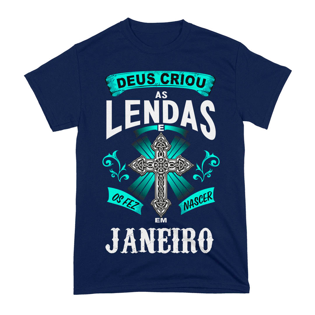 Camiseta Lendas. Deus criou as lendas e os fez nascer em janeiro.