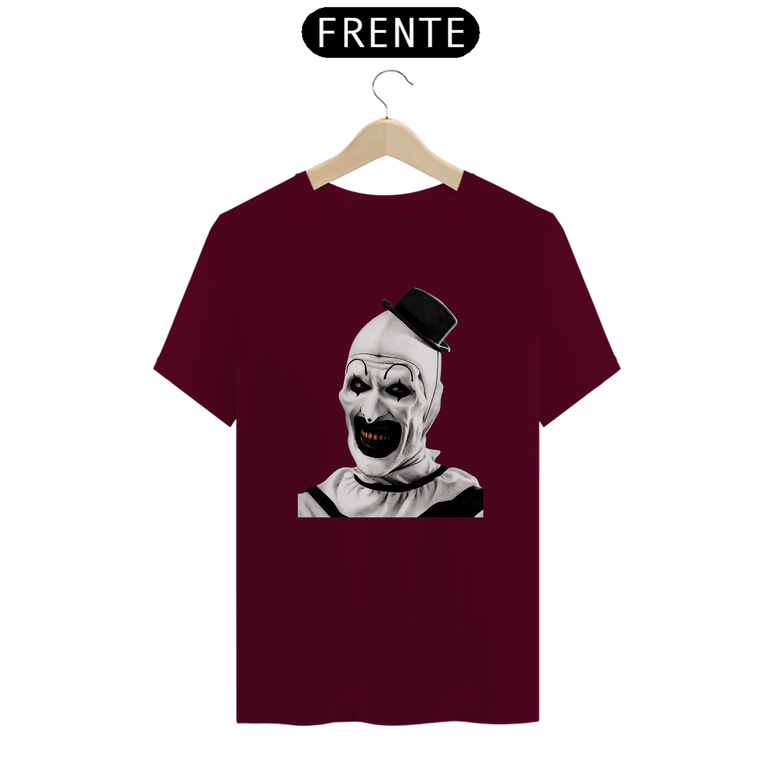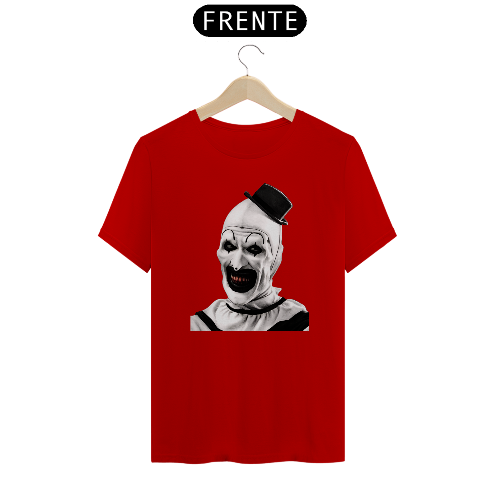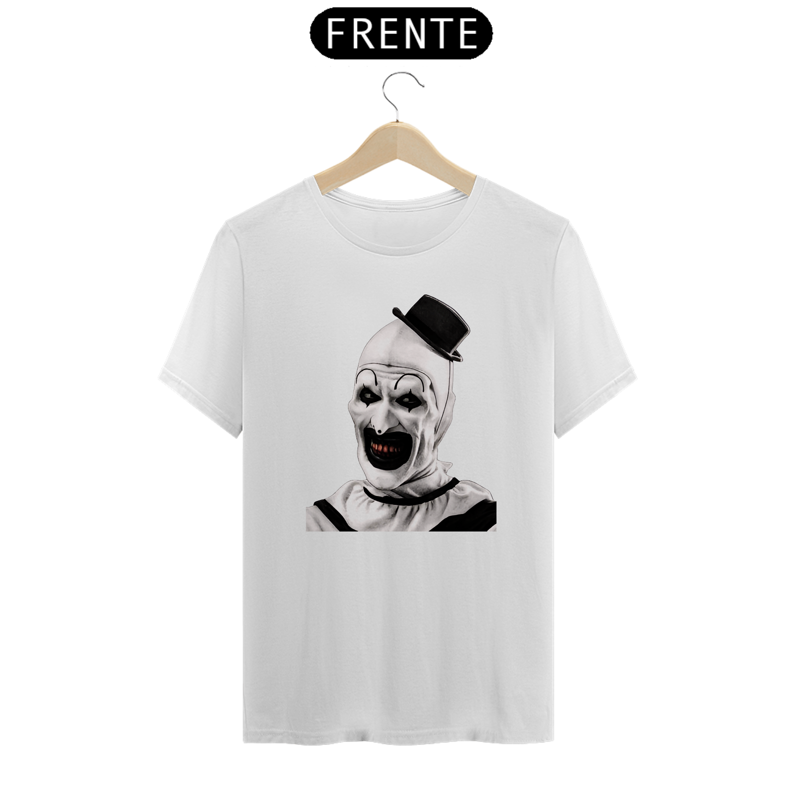 Com um design impactante que retrata a essência sombria e intrigante de Art, você se destacará com estilo e conforto. Não perca a oportunidade de adicionar esta peça única ao seu guarda-roupa e demonstre sua paixão por filmes de terror e personagens memoráveis!