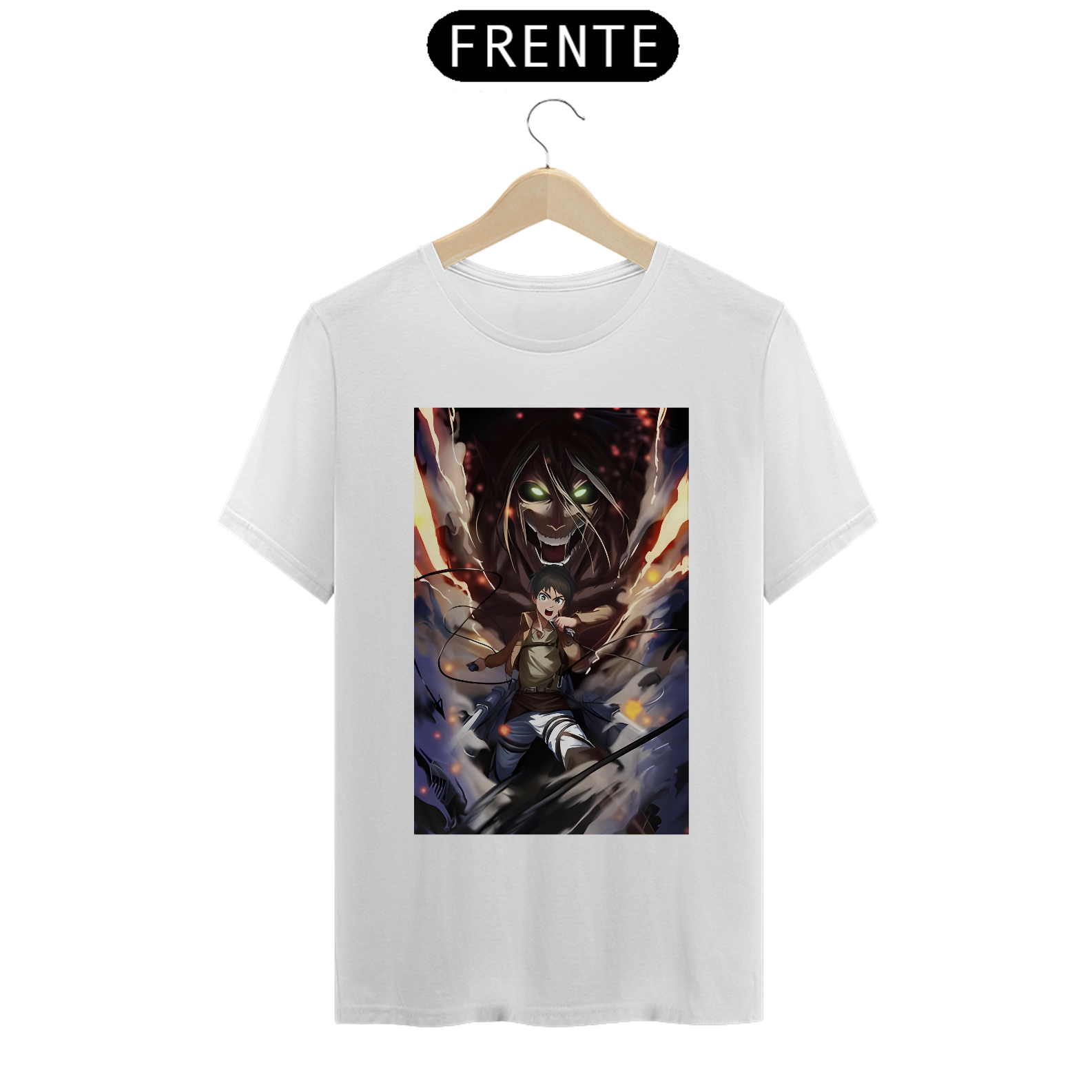 A Camisa Eren Yeager! Uma peça incrível e cheia de atitude para os fãs de Attack on Titan! Com seu design inspirado no lendário protagonista, ela é perfeita para quem busca expressar sua determinação e coragem. A estampa vibrante e detalhes gráficos garantem um visual intenso e cheio de personalidade. Uma camisa que é pura força e estilo, para os verdadeiros fãs do Titã!