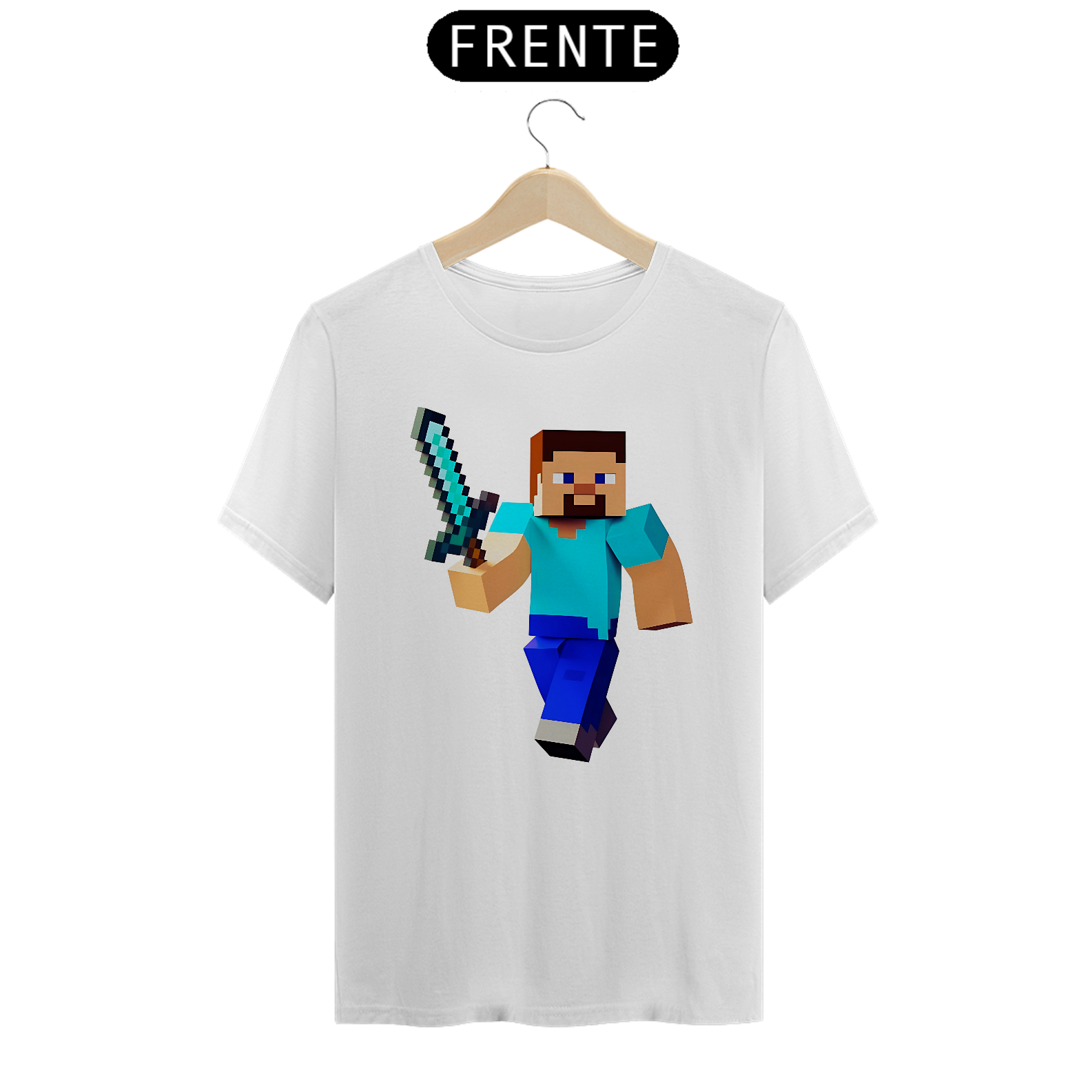 A Camisa Steve! Uma peça incrível e cheia de aventura para os fãs de Minecraft! Com seu design inspirado no icônico personagem Steve, ela é perfeita para quem busca expressar sua paixão pelo mundo dos blocos. A estampa simples e detalhes gráficos garantem um visual autêntico e cheio de personalidade. Uma camisa que é pura criatividade e estilo, para os verdadeiros fãs do jogo!