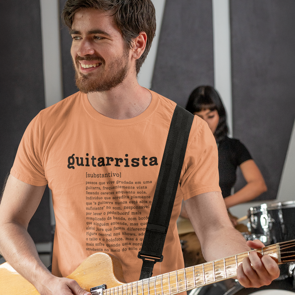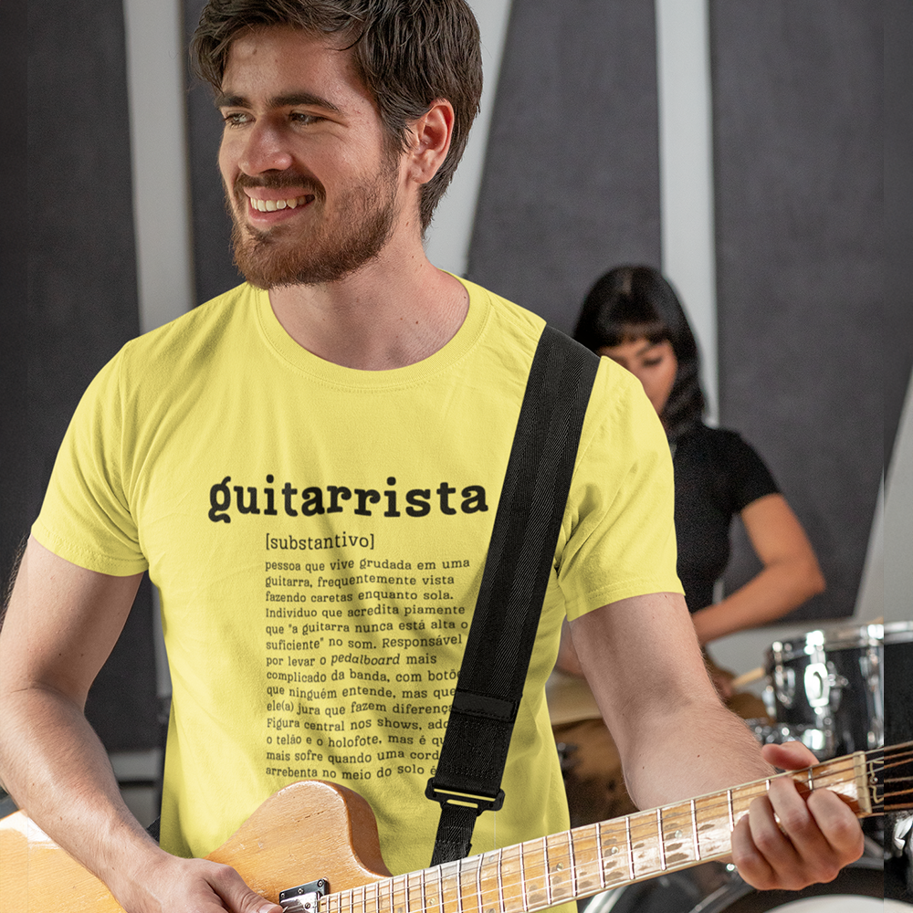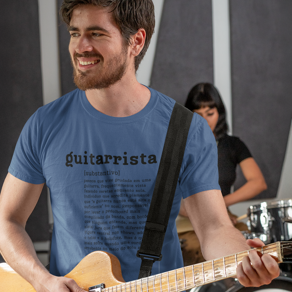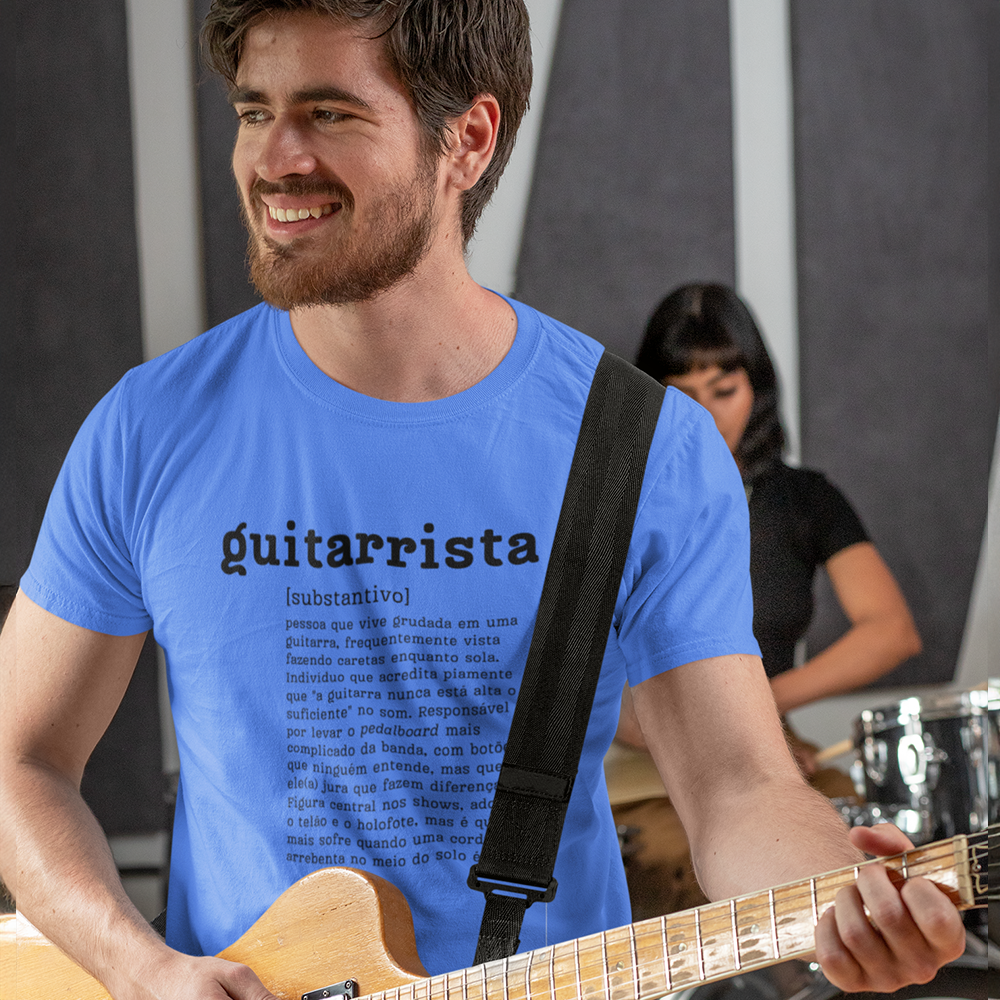 Seja um guitarrista de atitude ou um fã apaixonado por música, essa camiseta é a escolha perfeita para expressar sua personalidade com estilo e bom humor. A arte única traz uma definição irreverente e criativa de "guitarrista", que vai despertar sorrisos e se destacar em qualquer lugar.