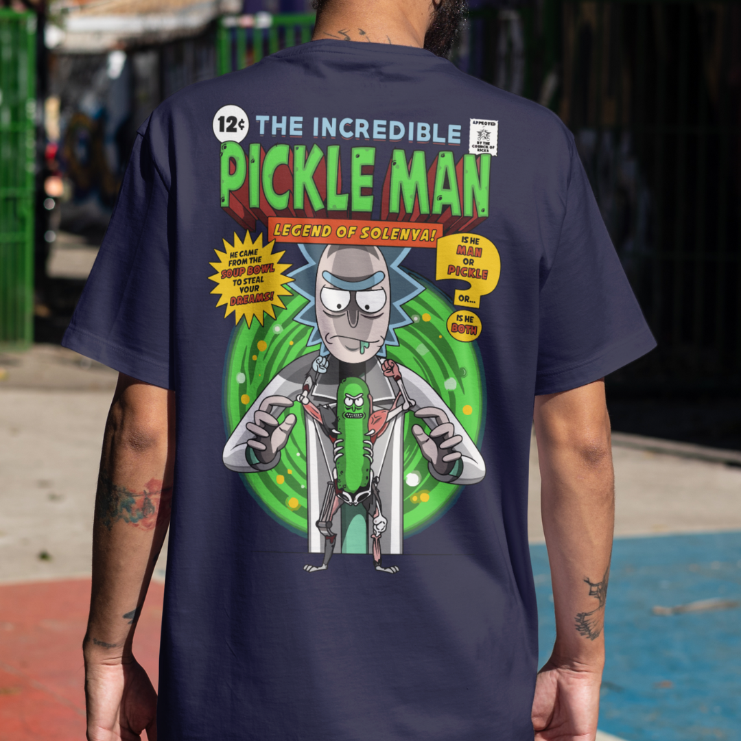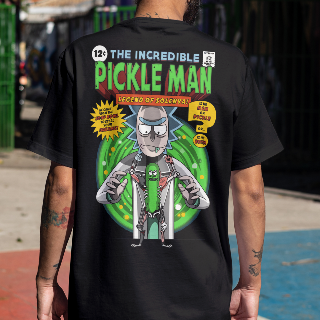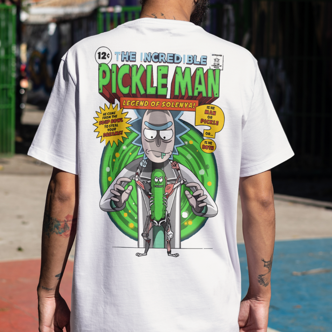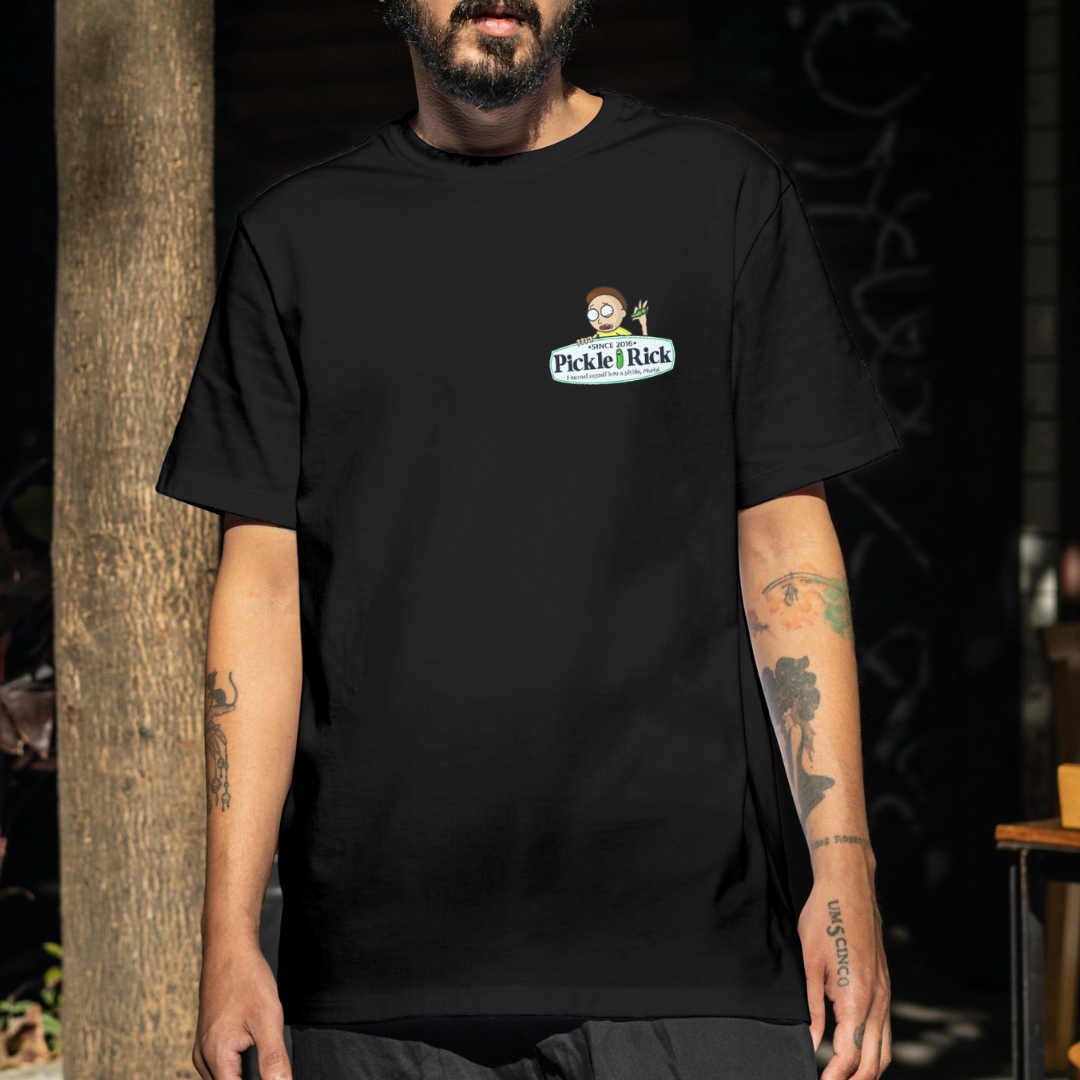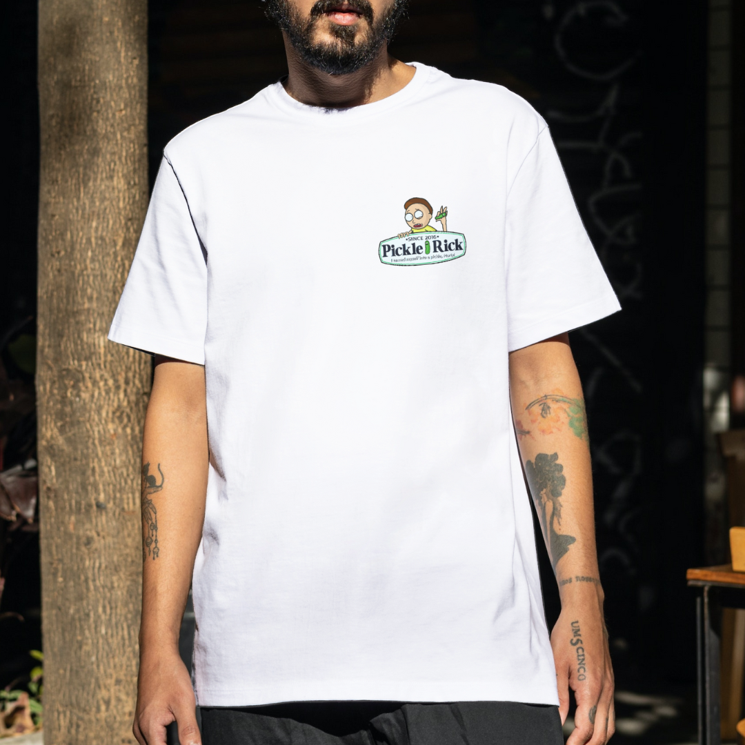 Entre no mundo interdimensionaL com a camiseta Pickle Rick da Chroma! Inspirada na transformação mais inusitada de Rick and Morty, esta peça é um mergulho no universo. Mostre seu lado "pickle" com esta camiseta única!