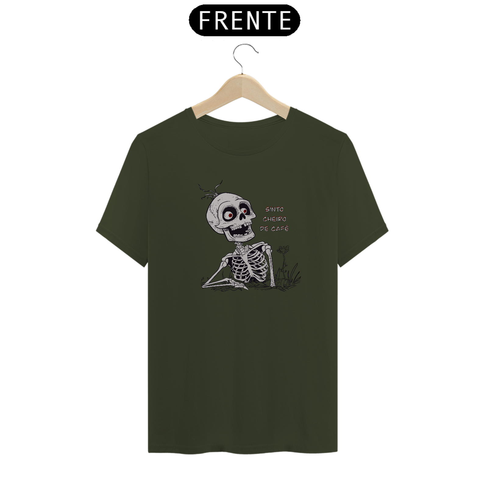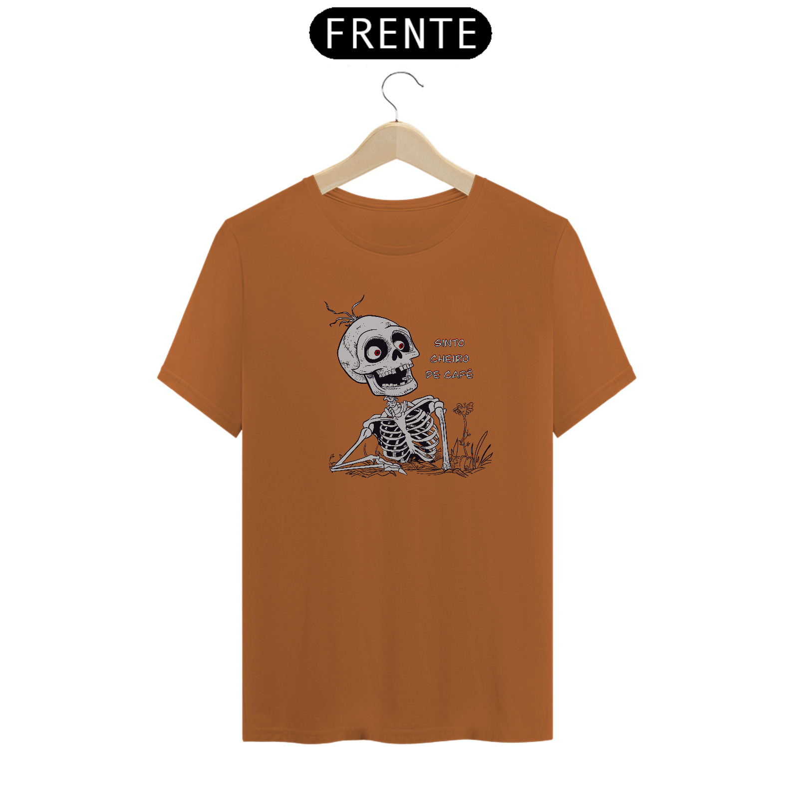 Quando até as caveiras se levantam ao aroma irresistível do café, você sabe que é coisa séria! A Camiseta "Sinto Cheiro de Café" traz uma arte marcante e cheia de humor, com uma caveira emergindo da terra, atraída pelo cheiro mágico do café – porque, vamos combinar, só a cafeína nos faz ressuscitar.