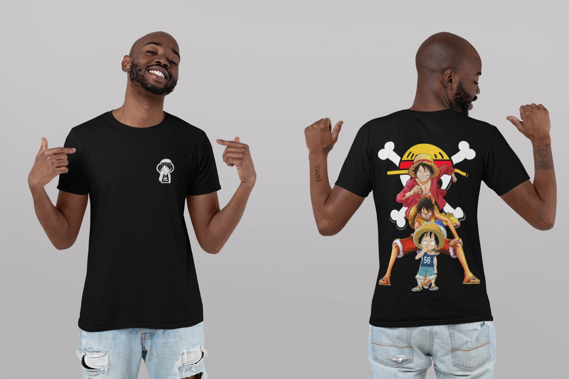 • Estampa de Qualidade Superior: A estampa do Luffy na camiseta é feita com tecnologia de impressão de alta qualidade, garantindo cores vibrantes e detalhes nítidos que permanecerão vívidos mesmo após várias lavagens.