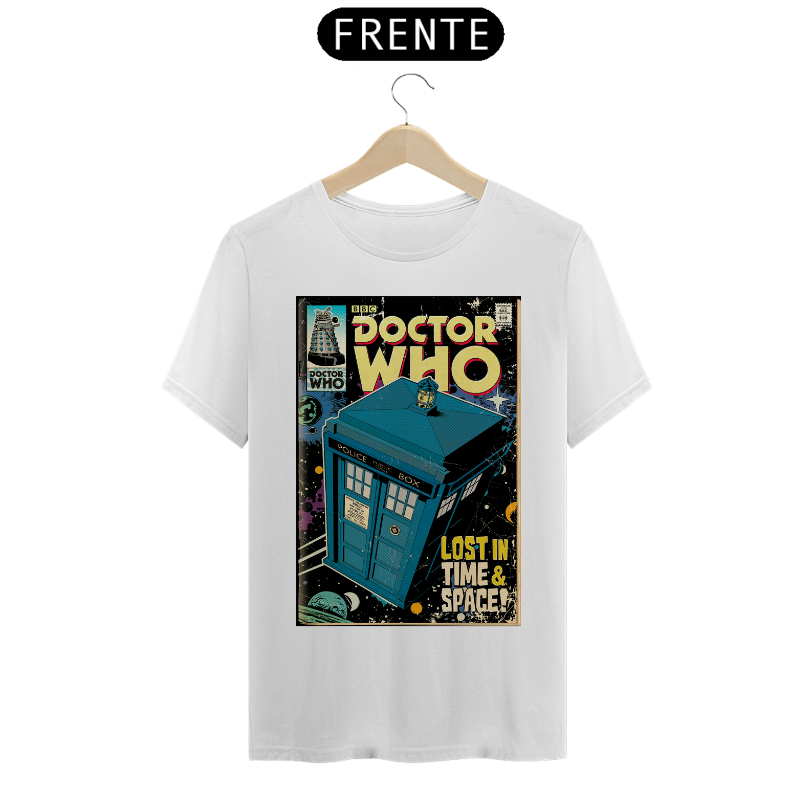 Viaje pelo tempo e espaço com estilo! Esta camiseta é a escolha perfeita para carregar a magia de Doctor Who no dia a dia!
