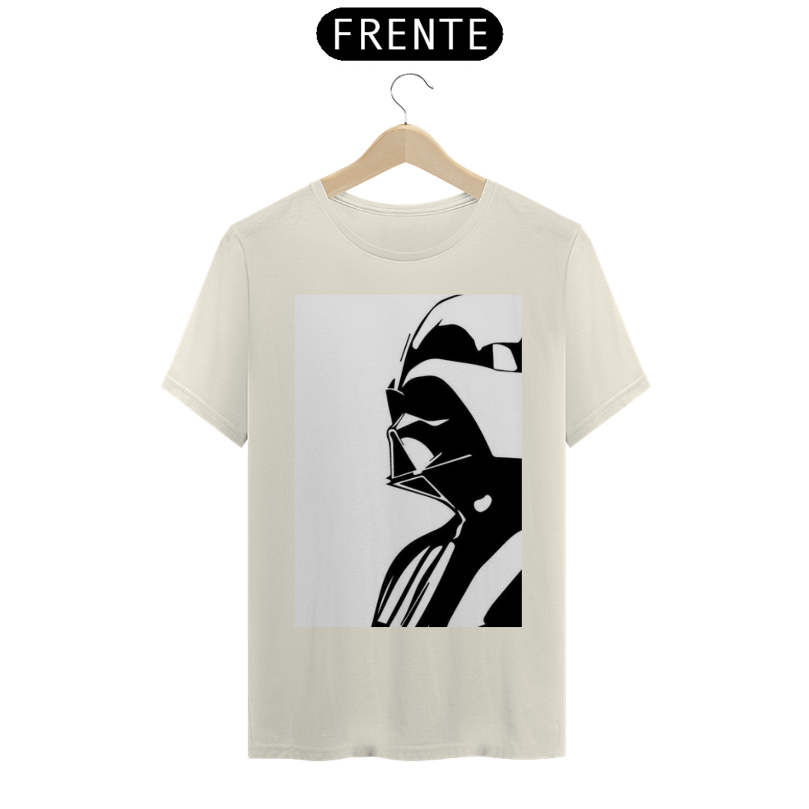• Primeira Estampa: A silhueta imponente de Darth Vader sobre fundo branco, representando a força e o poder do lado sombrio.