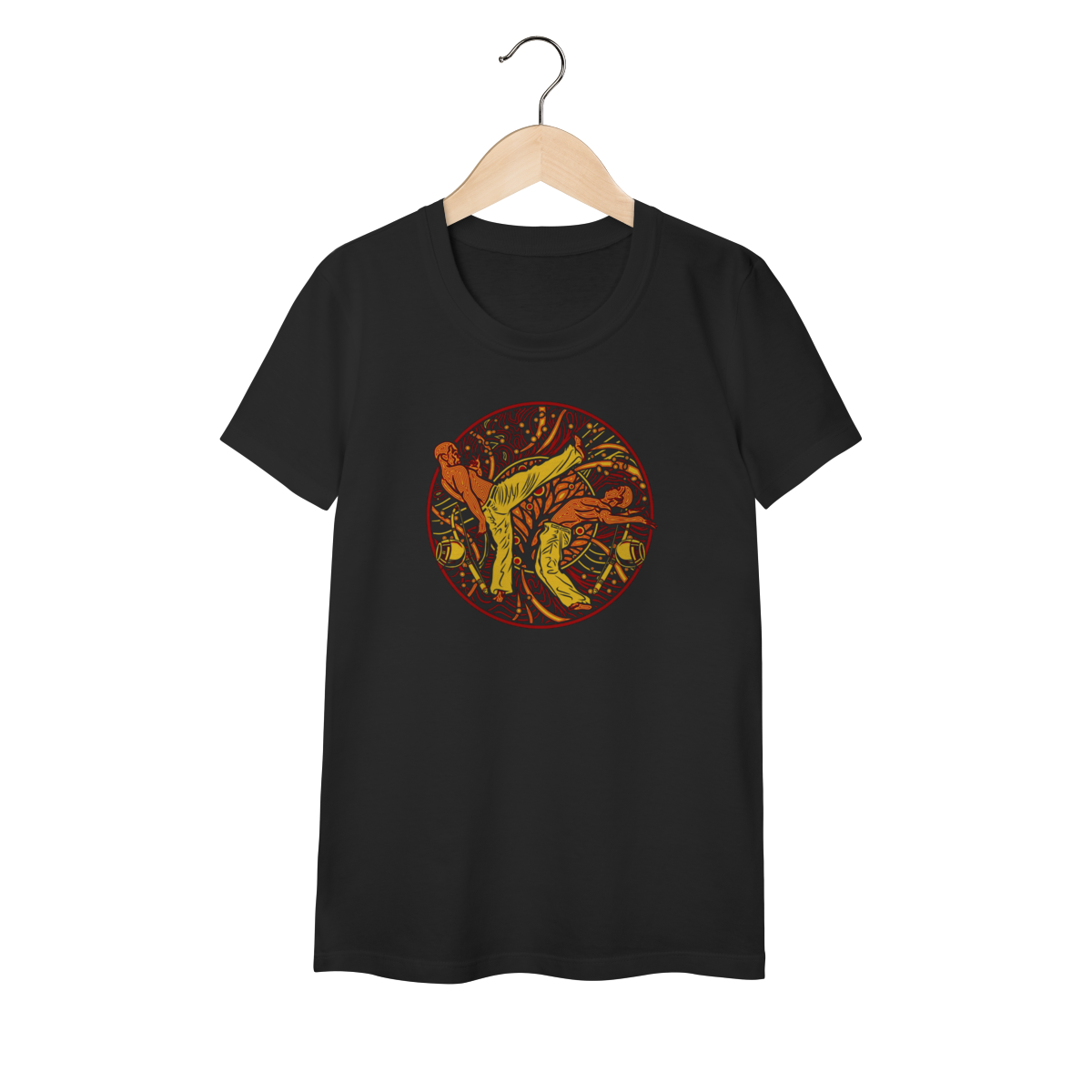 Esta estampa foi criada para o Projeto Alegria Colorida, que leva a capoeira e a ancestralidade às periferias de São José dos Campos (SP). Ao adquirir este produto, você contribui diretamente para o financiamento dessa iniciativa.