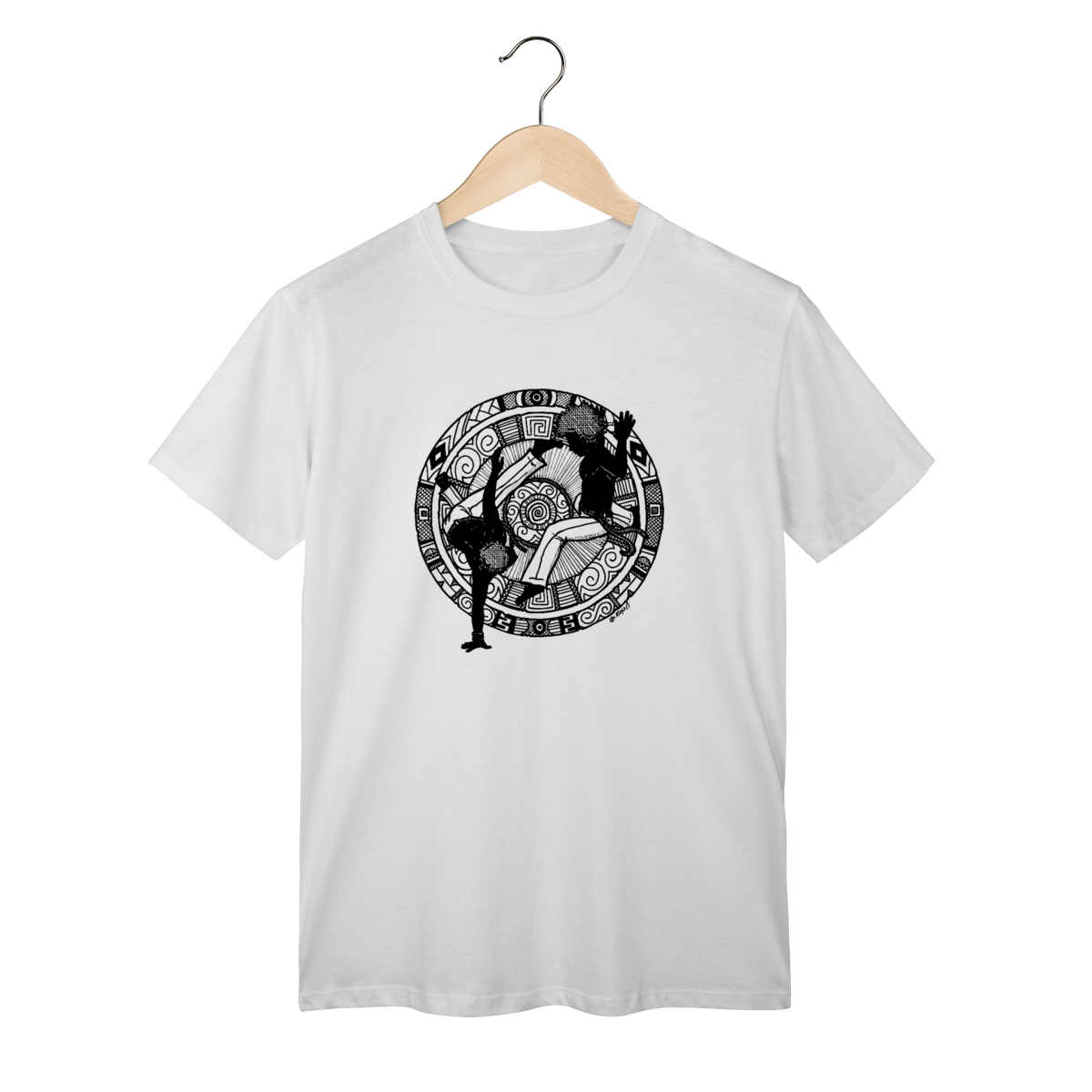 Esta estampa foi criada para o Projeto Alegria Colorida, que leva a capoeira e a ancestralidade às periferias de São José dos Campos (SP). Ao adquirir este produto, você contribui diretamente para o financiamento dessa iniciativa.