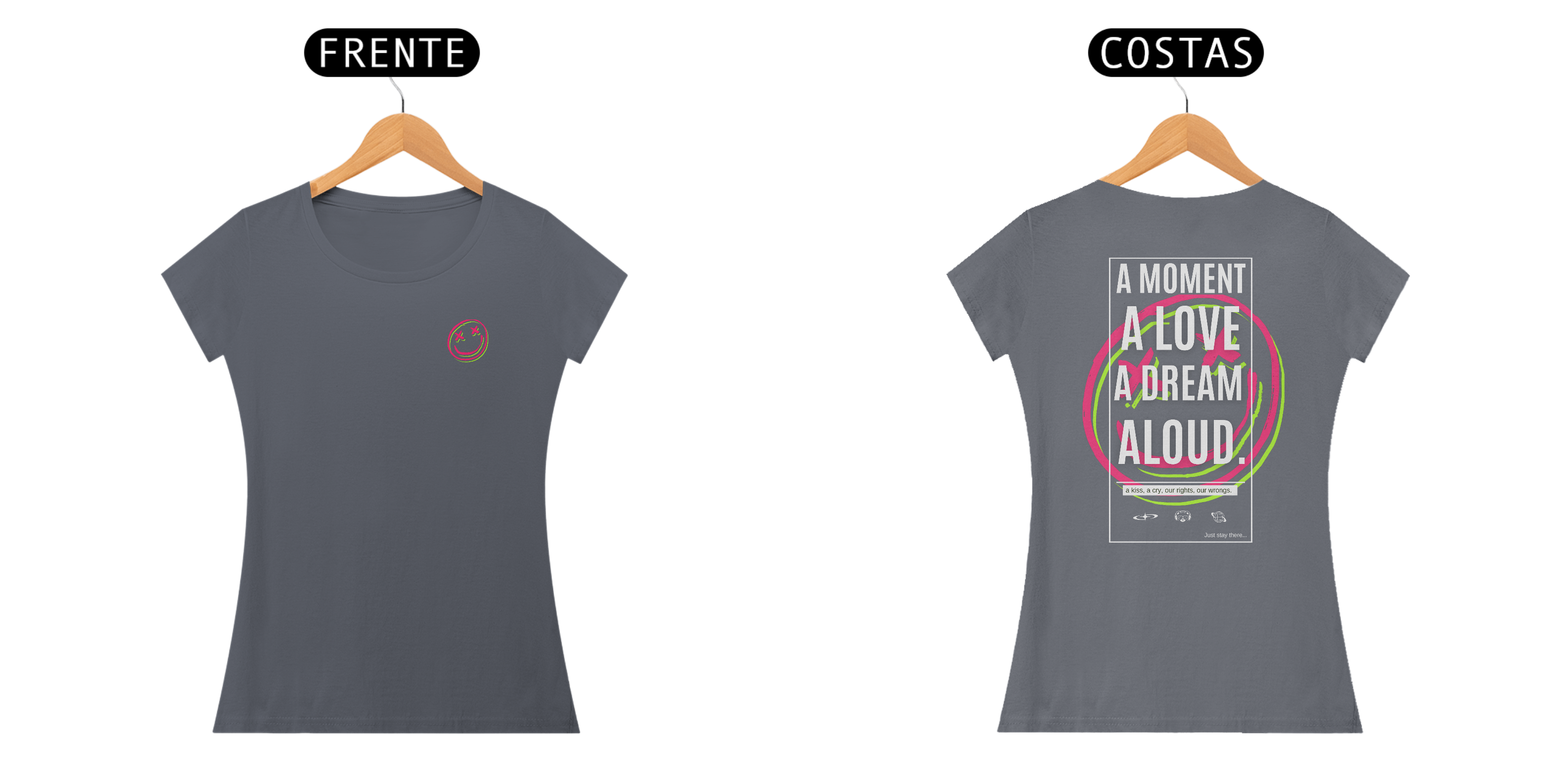 Cores do produto: Como cada tela de computador ou celular tem seu próprio jeito de mostrar cores, então a cor da sua camiseta e da estampa pode ser um pouco diferente do que você viu online.