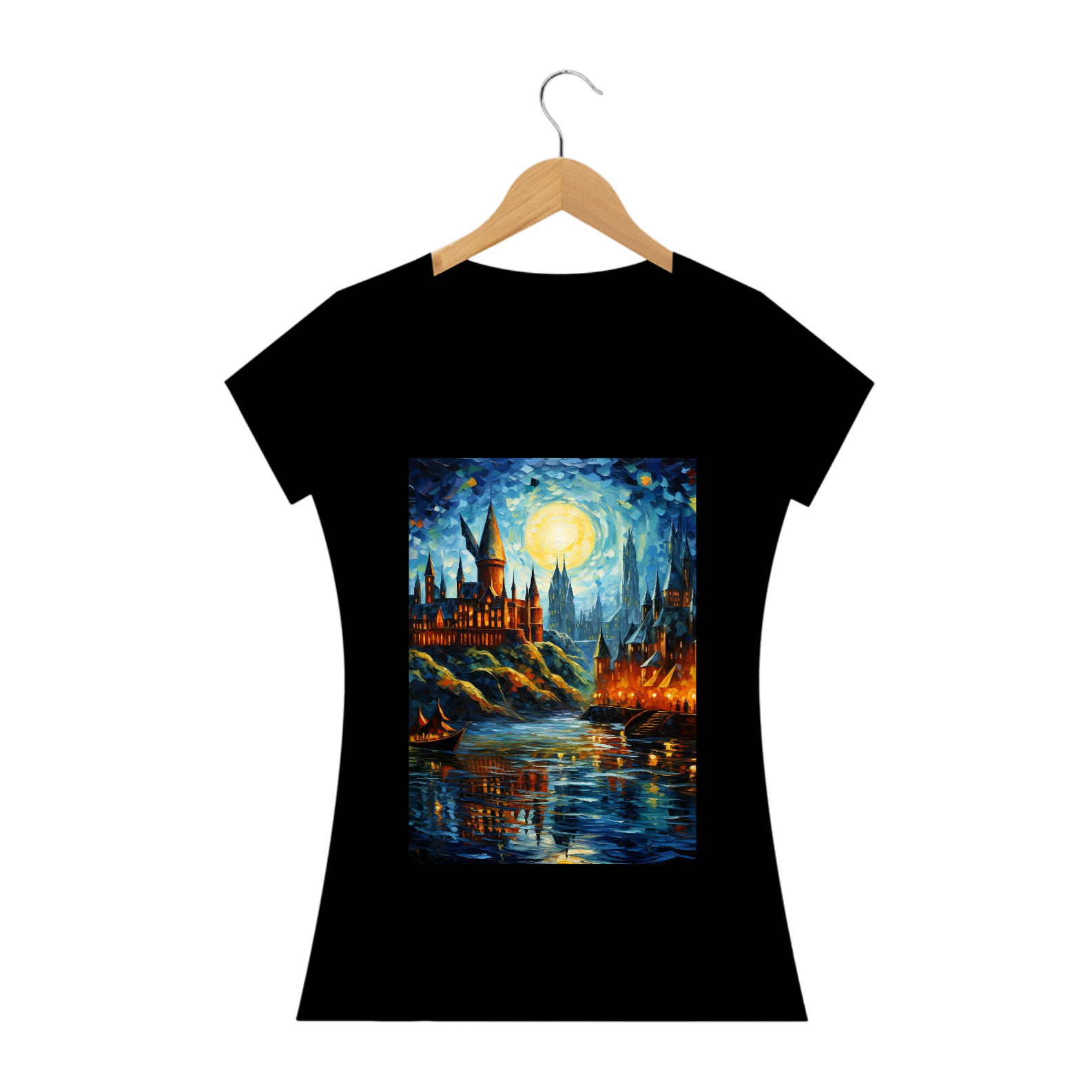 Explore a fusão encantadora entre o mundo mágico de Hogwarts e a vibrante paleta de cores inspirada em Van Gogh com a "Camiseta Mágica de Hogwarts no Mundo de Van Gogh". Esta peça única combina elementos icônicos da escola de magia mais famosa do mundo com pinceladas vivas e expressivas que ecoam a arte do renomado pintor. As torres de Hogwarts emergem sob um céu estrelado, mesclando-se perfeitamente com os redemoinhos característicos de Van Gogh. Vista-se com esta camiseta para transmitir sua paixão tanto pela magia quanto pela arte, mergulhando em um universo que une duas formas de expressão tão extraordinárias. Seja notado pela moda que transcende os limites dos mundos mágico e artístico.