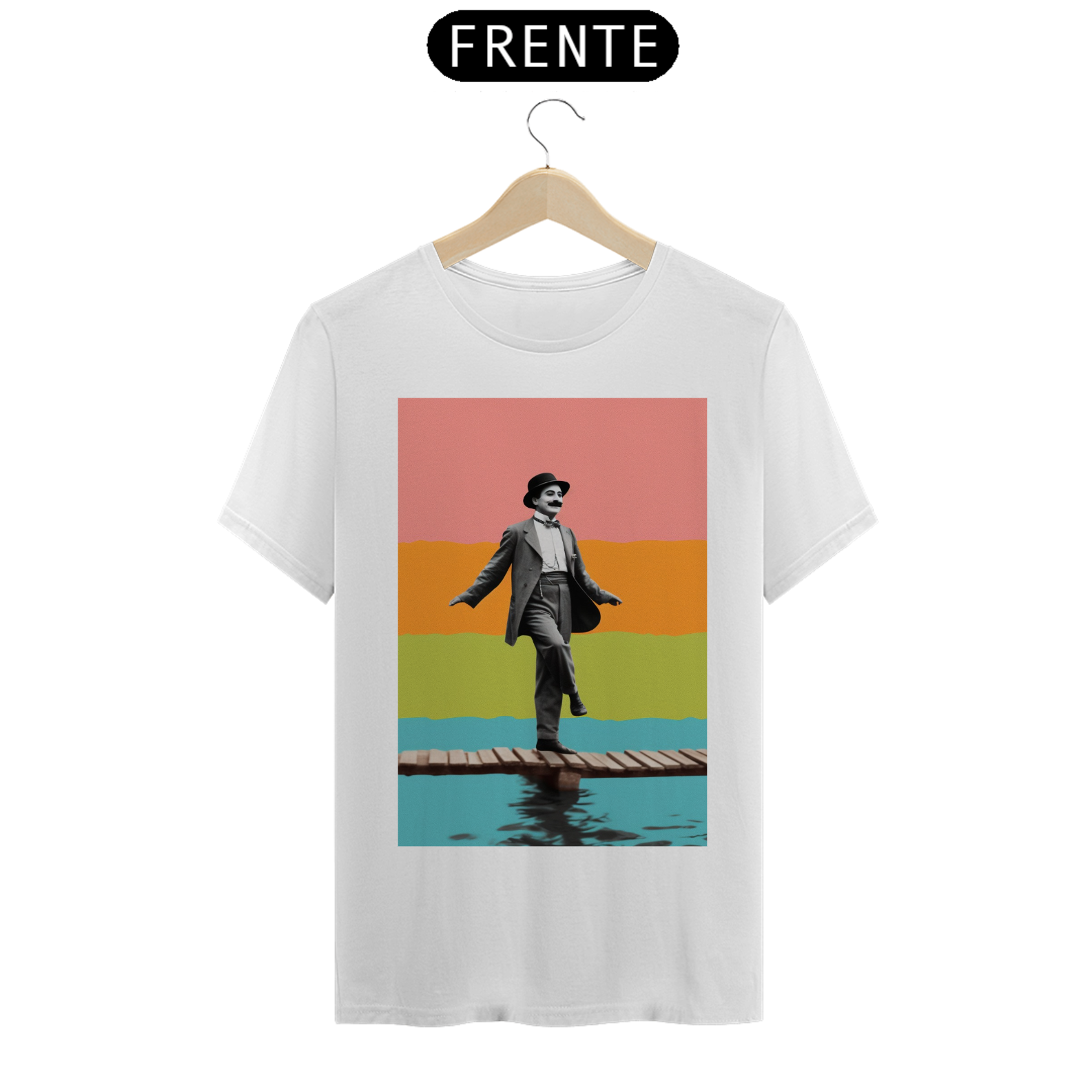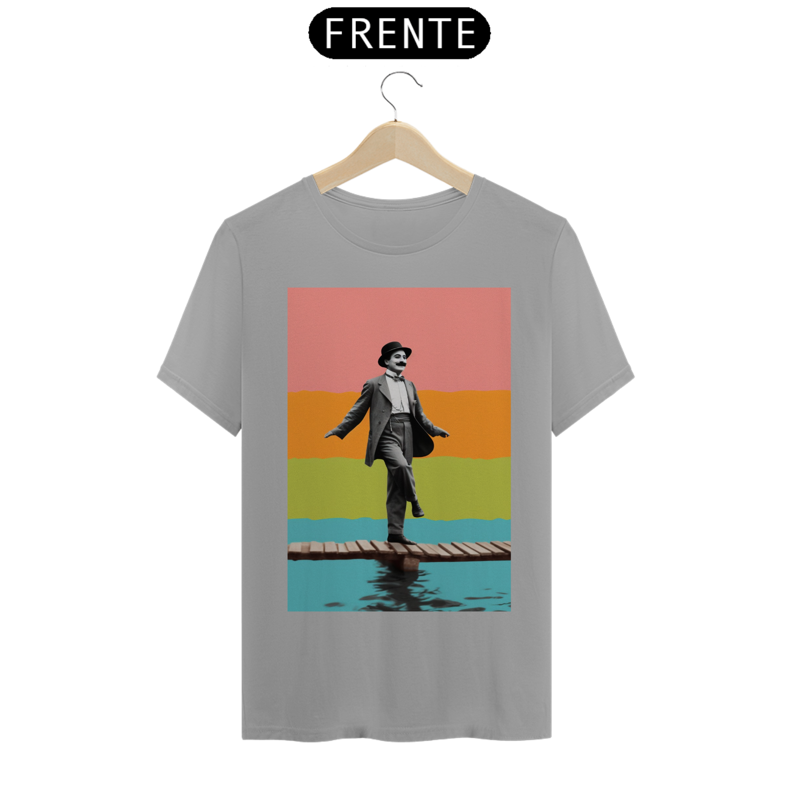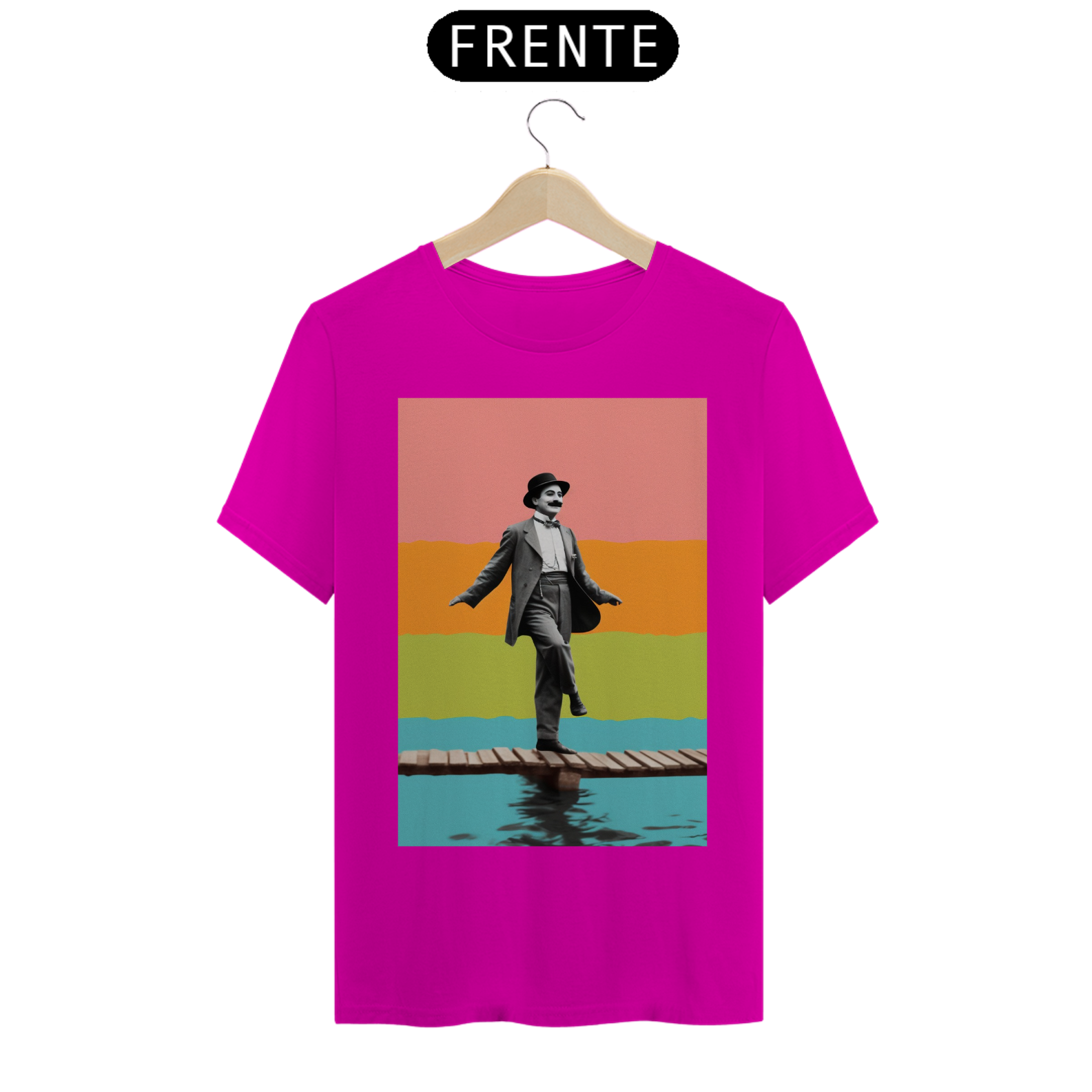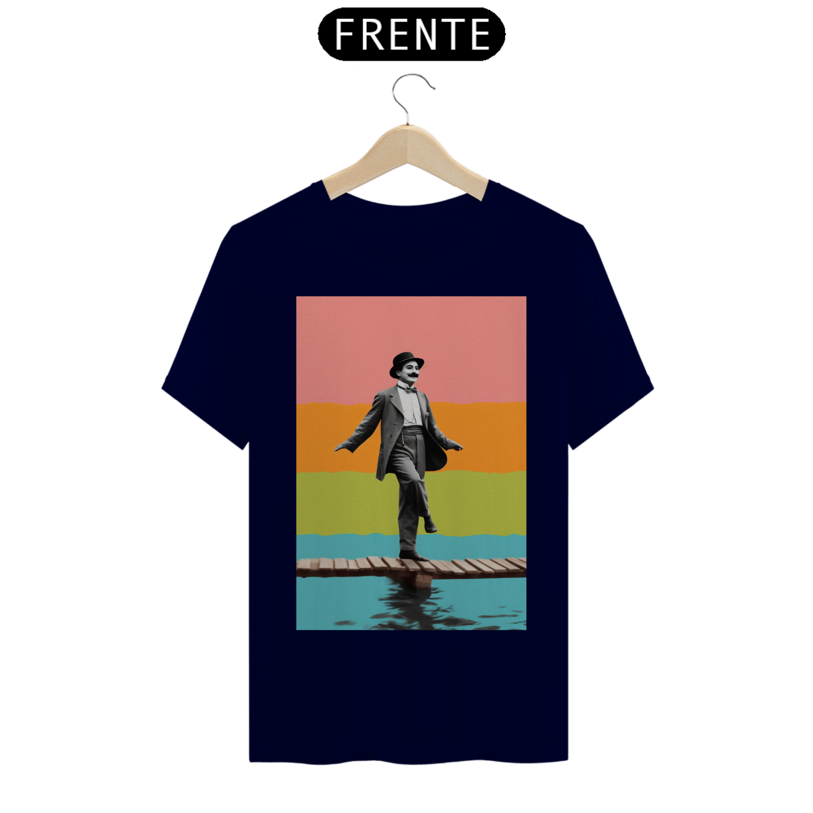 Celebre o gênio do riso com a camiseta "Chaplin na Sinfonia do Silêncio". Inspirada no legado inesquecível de Charlie Chaplin, esta peça de vestuário captura a essência do humor e da graça atemporais. Sob um fundo que ecoa o glamour do cinema clássico, a figura emblemática de Chaplin é retratada em sua expressão icônica, perpetuando a magia do silêncio que encantou o mundo. Vista esta camiseta para homenagear o mestre do cinema mudo e carregue consigo um toque de elegante vintage. "Chaplin na Sinfonia do Silêncio" é mais do que uma camiseta; é uma reverência ao legado de um artista que transformou o silêncio em uma linguagem universal de comédia.
