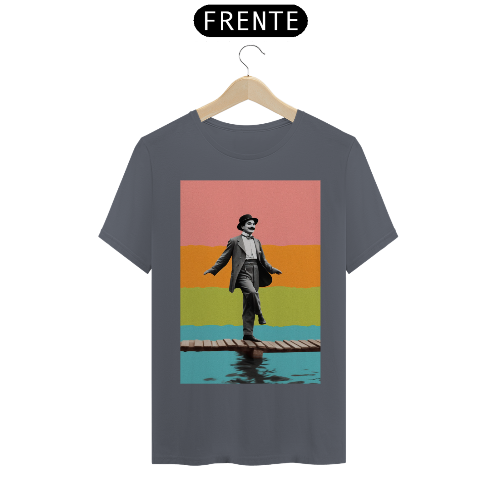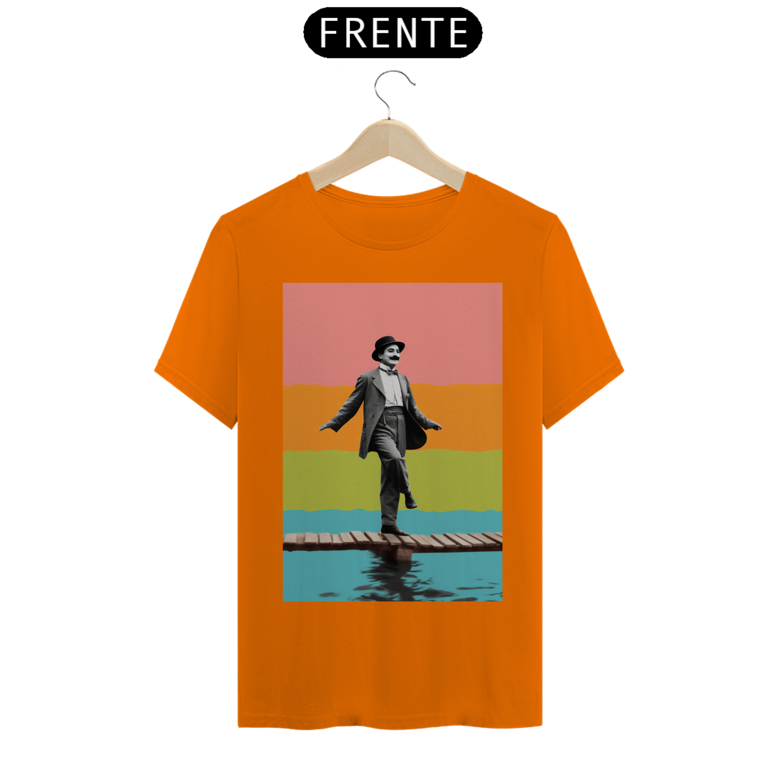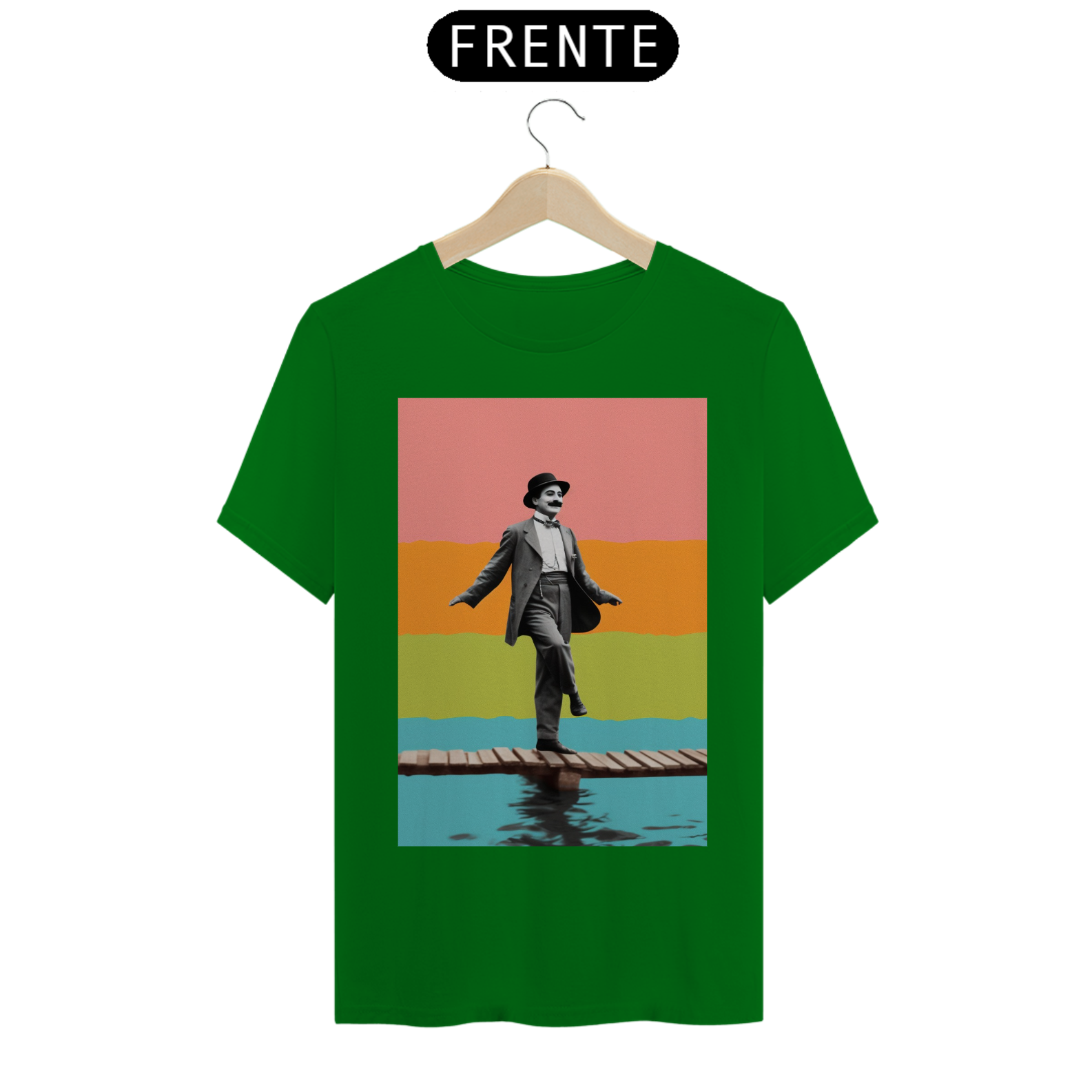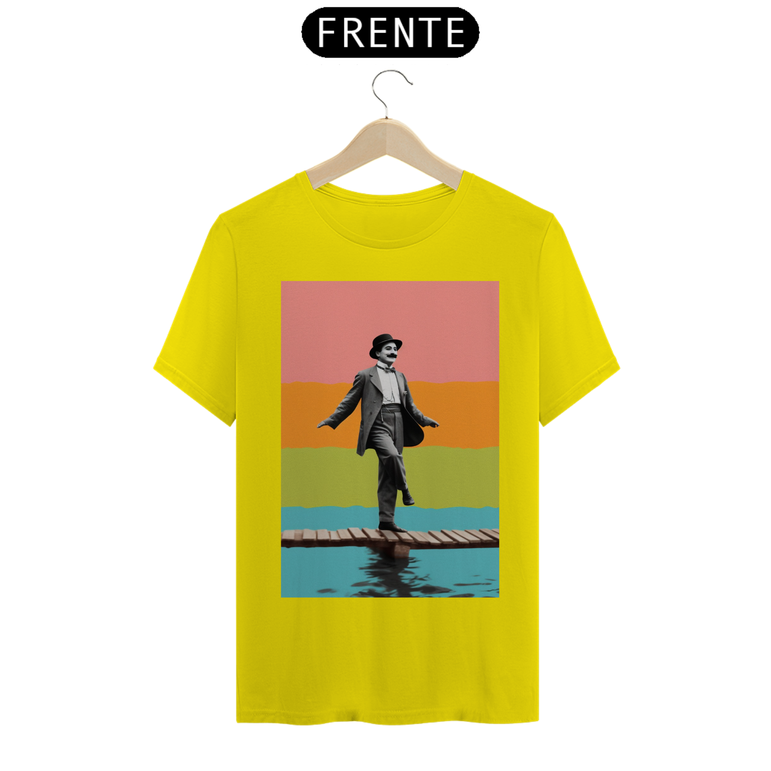 Celebre o gênio do riso com a camiseta "Chaplin na Sinfonia do Silêncio". Inspirada no legado inesquecível de Charlie Chaplin, esta peça de vestuário captura a essência do humor e da graça atemporais. Sob um fundo que ecoa o glamour do cinema clássico, a figura emblemática de Chaplin é retratada em sua expressão icônica, perpetuando a magia do silêncio que encantou o mundo. Vista esta camiseta para homenagear o mestre do cinema mudo e carregue consigo um toque de elegante vintage. "Chaplin na Sinfonia do Silêncio" é mais do que uma camiseta; é uma reverência ao legado de um artista que transformou o silêncio em uma linguagem universal de comédia.