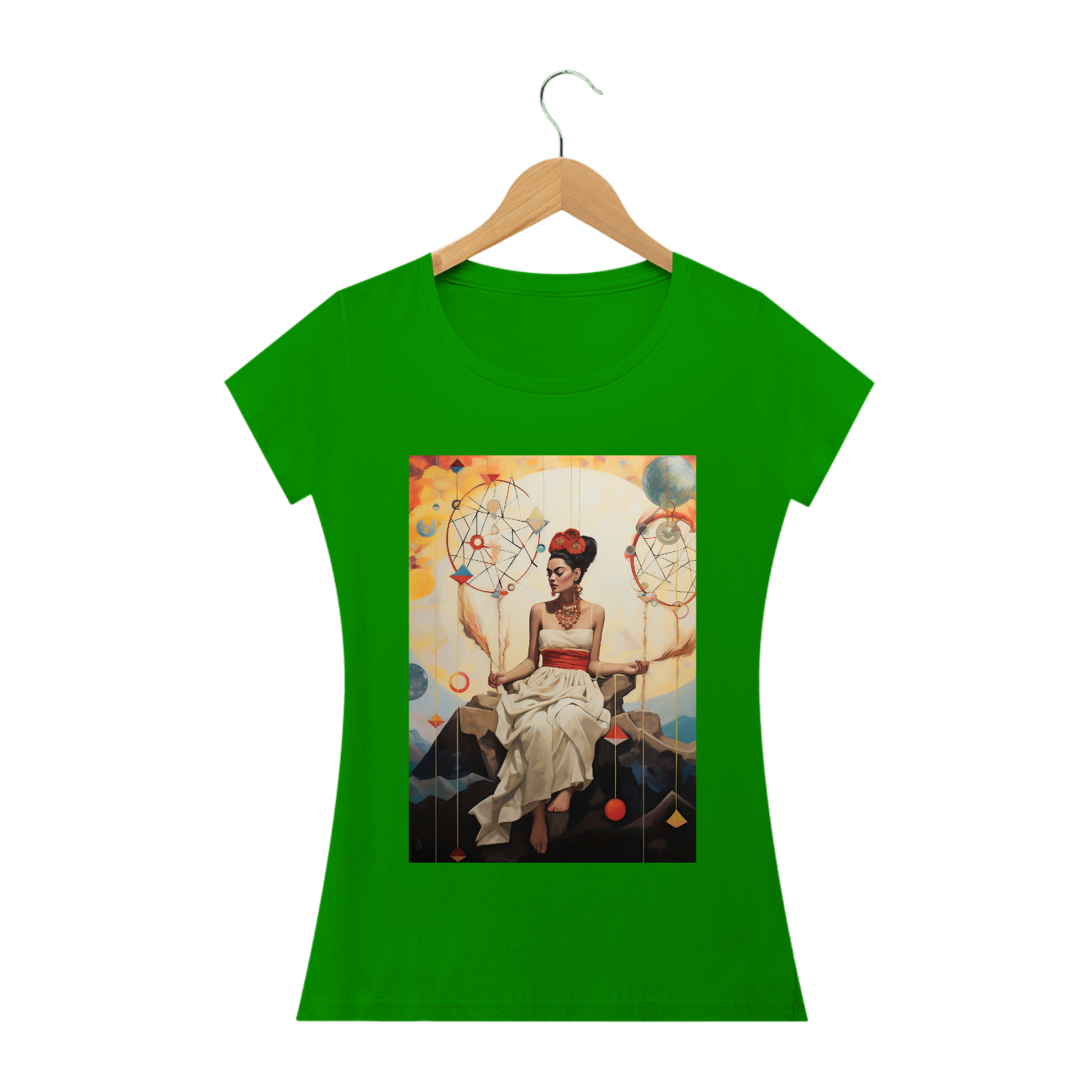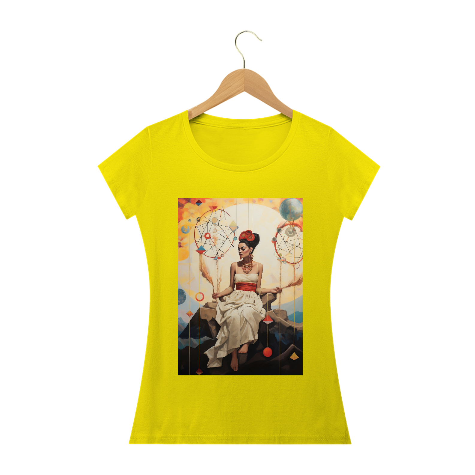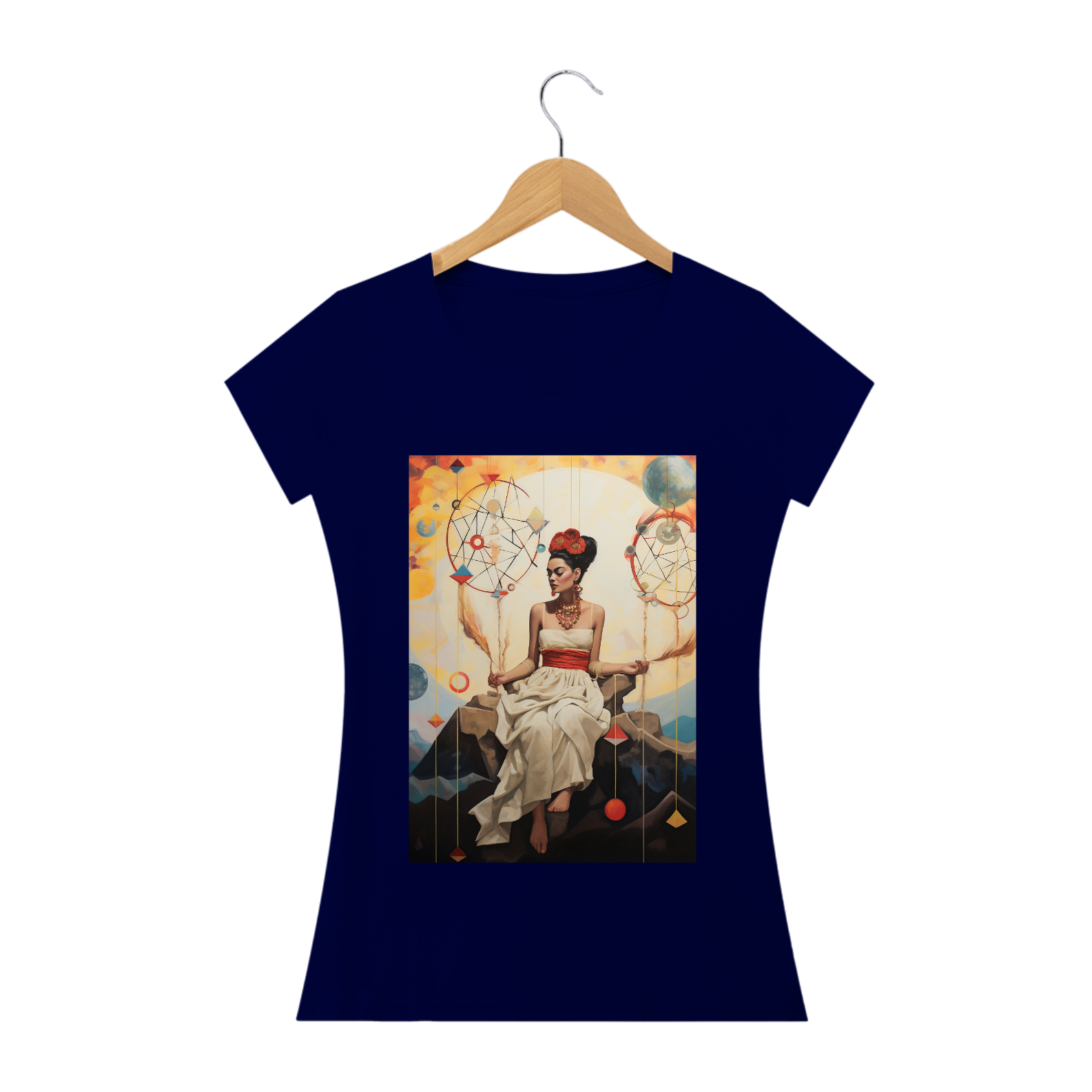 A "Camiseta Frida Sonhos" é uma obra de arte vestível que homenageia a icônica artista Frida Kahlo e sua habilidade única de transformar sonhos em realidade através de sua arte vibrante e expressiva. Esta camiseta é uma reflexão da imaginação, da criatividade e da força interior que nos impulsiona a perseguir nossos sonhos mais profundos.